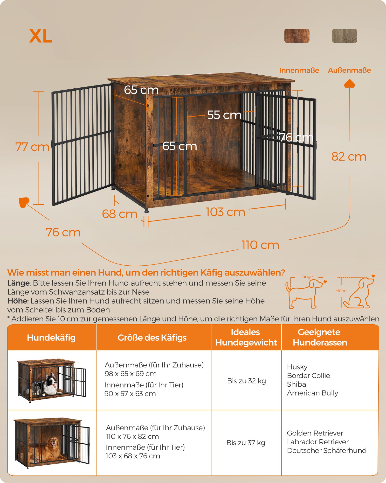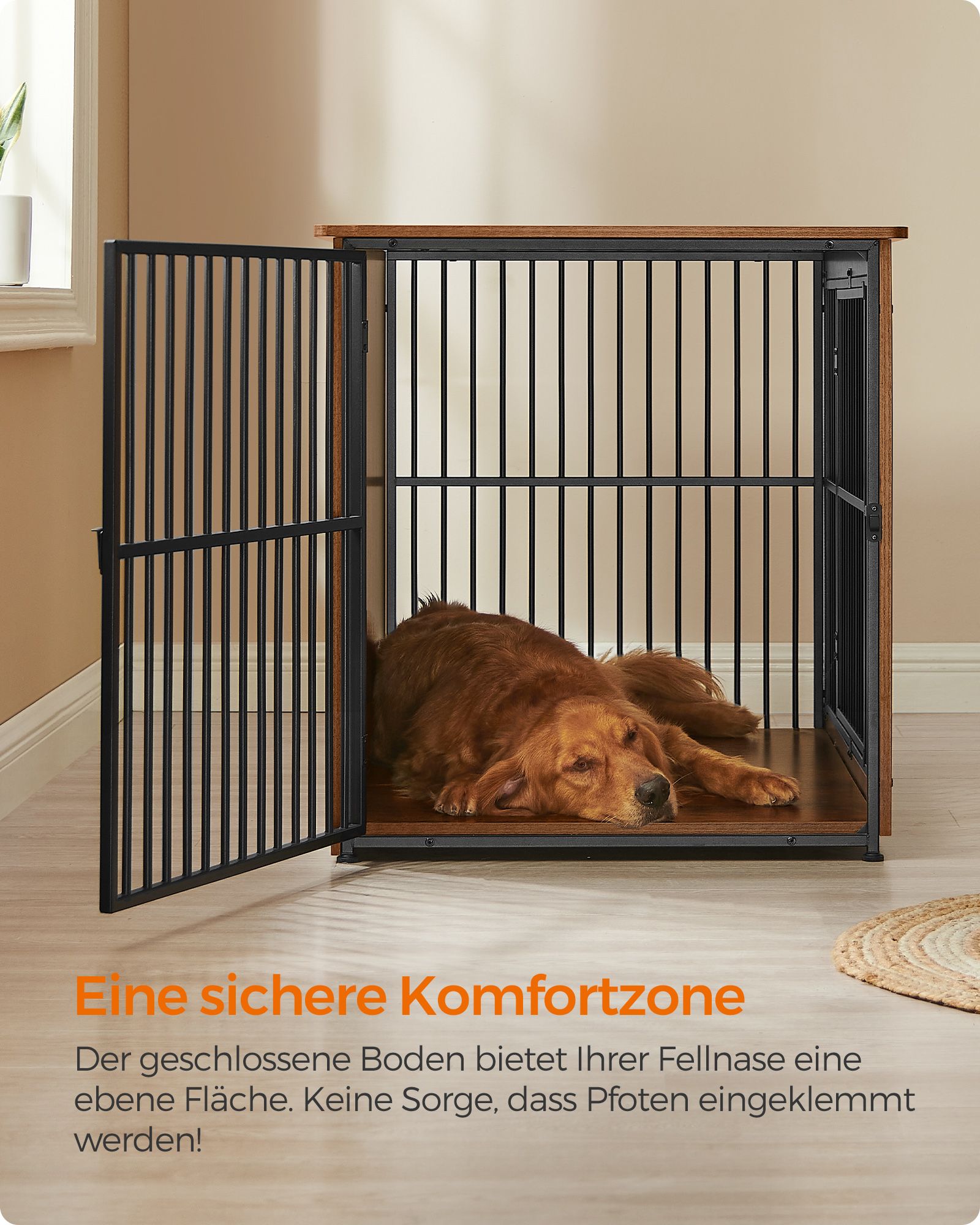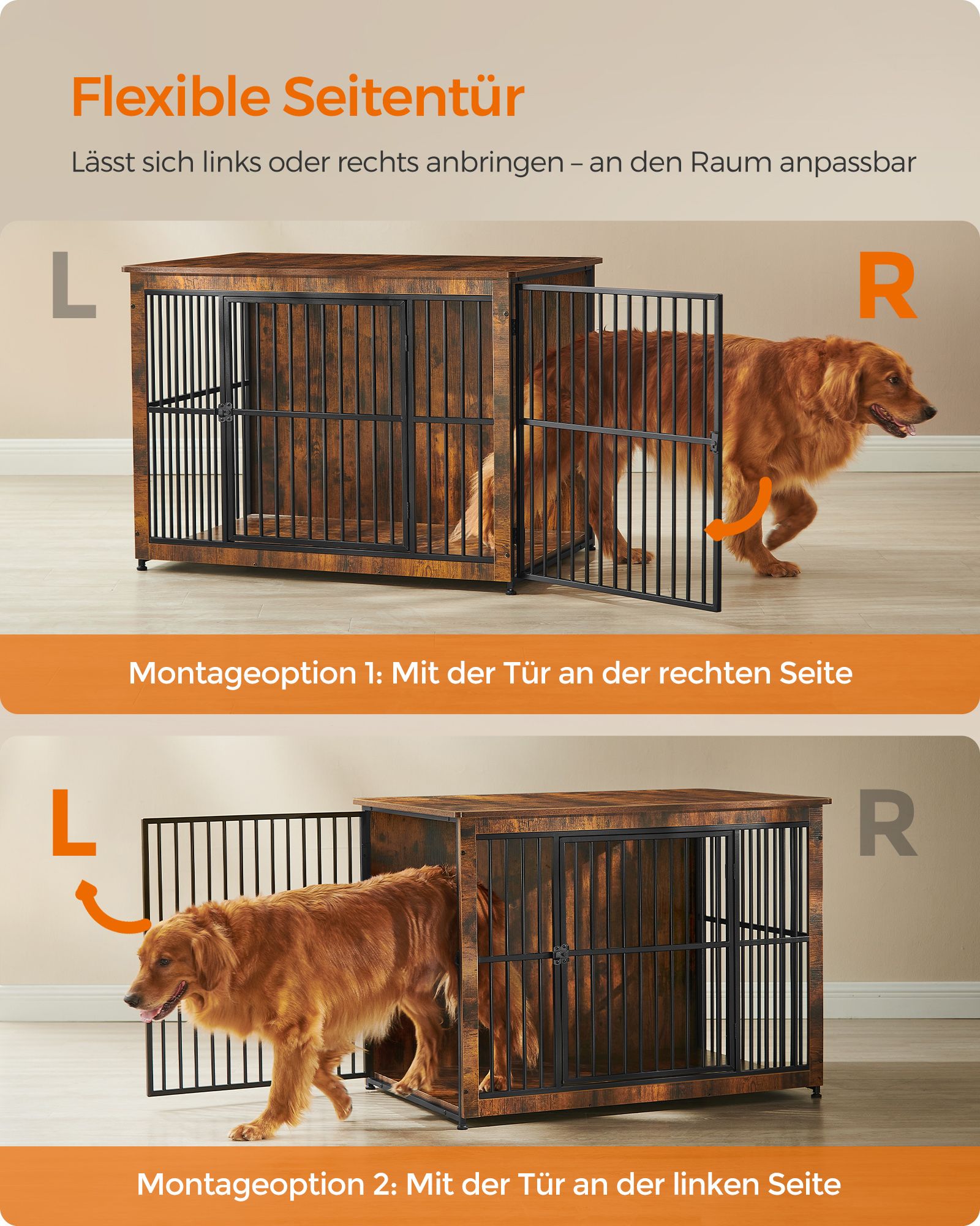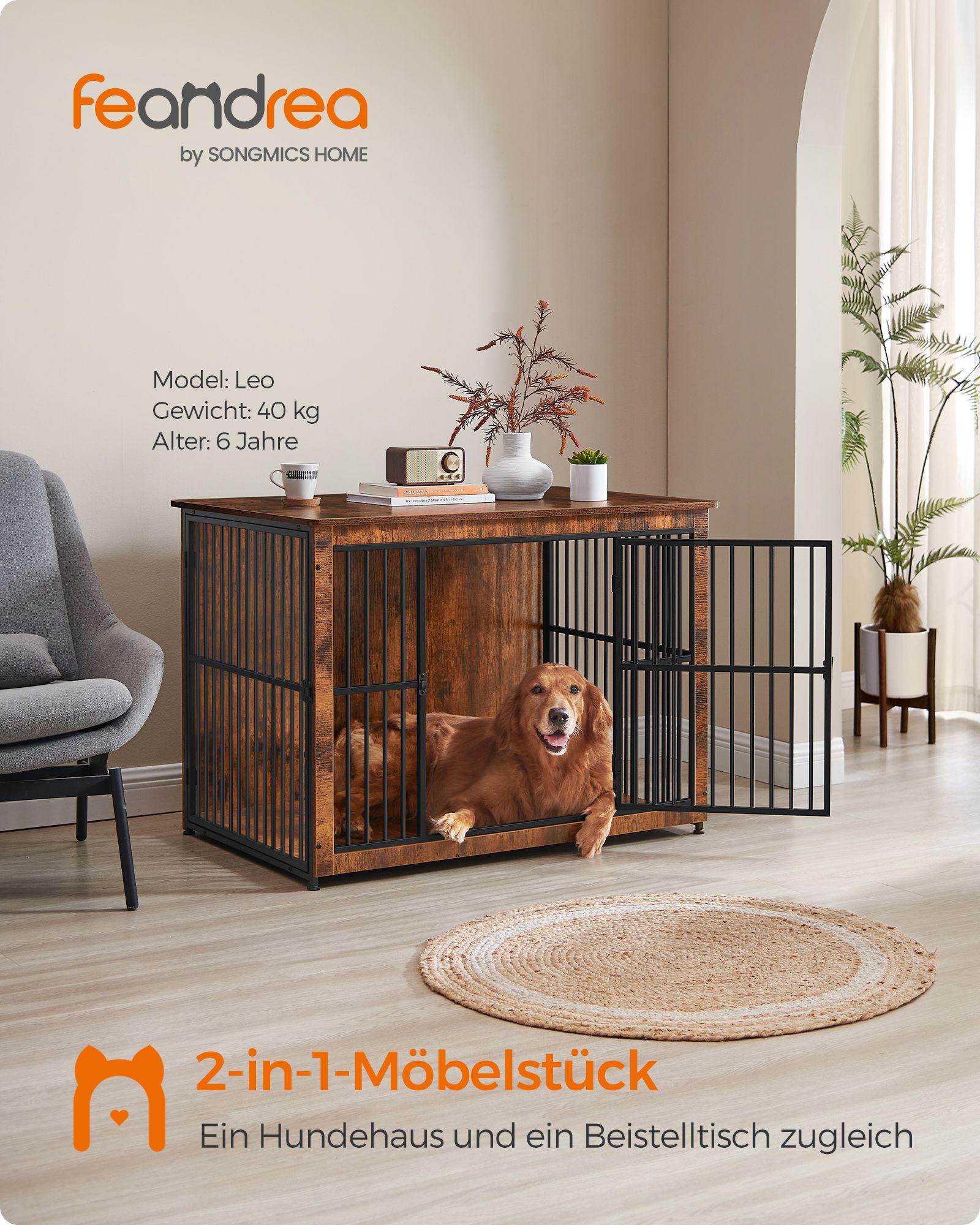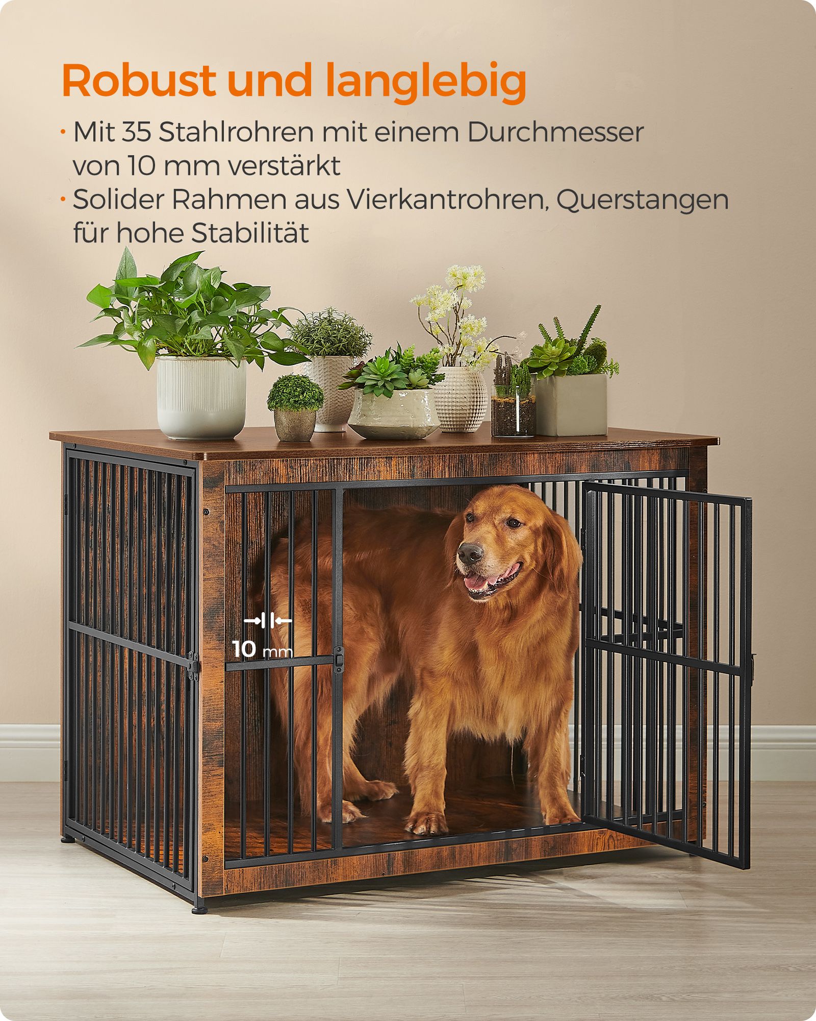 Feandrea hundebur, sidebord, hundekasse, moderne hundehus til indend?rs brug til hunde op til 37 kg, h?j belastbarhed, lukket bund, hundehus med 2 d?re, vintagebrun PFC024X01