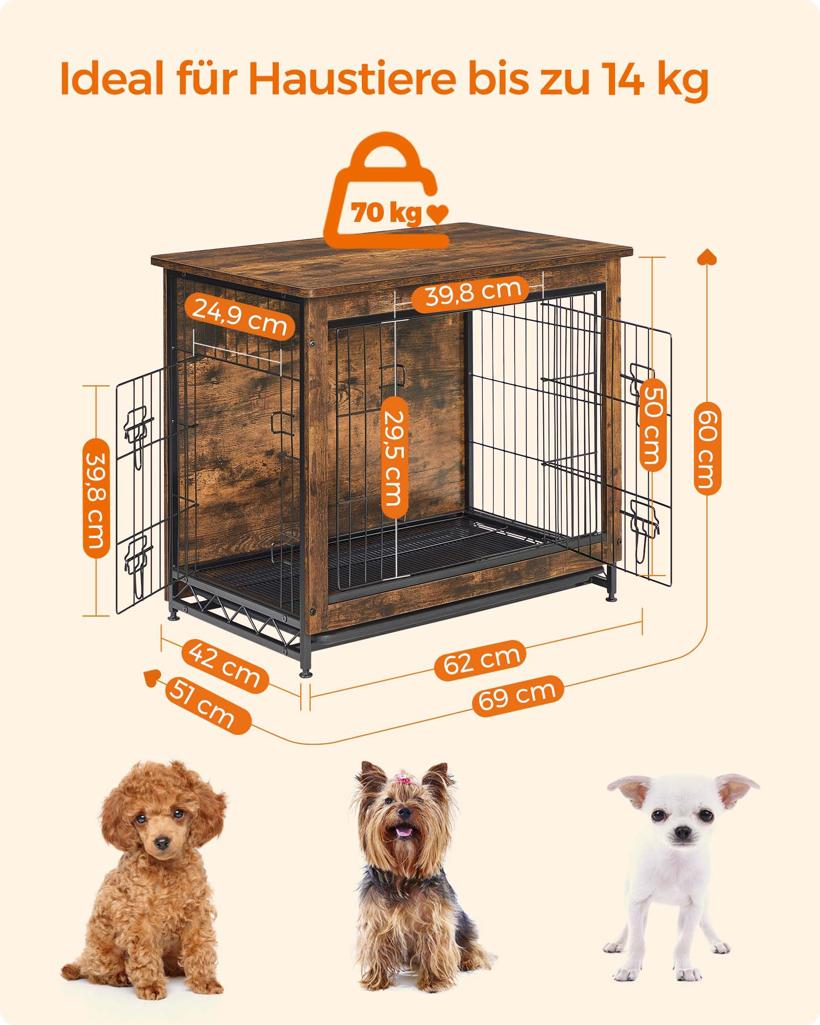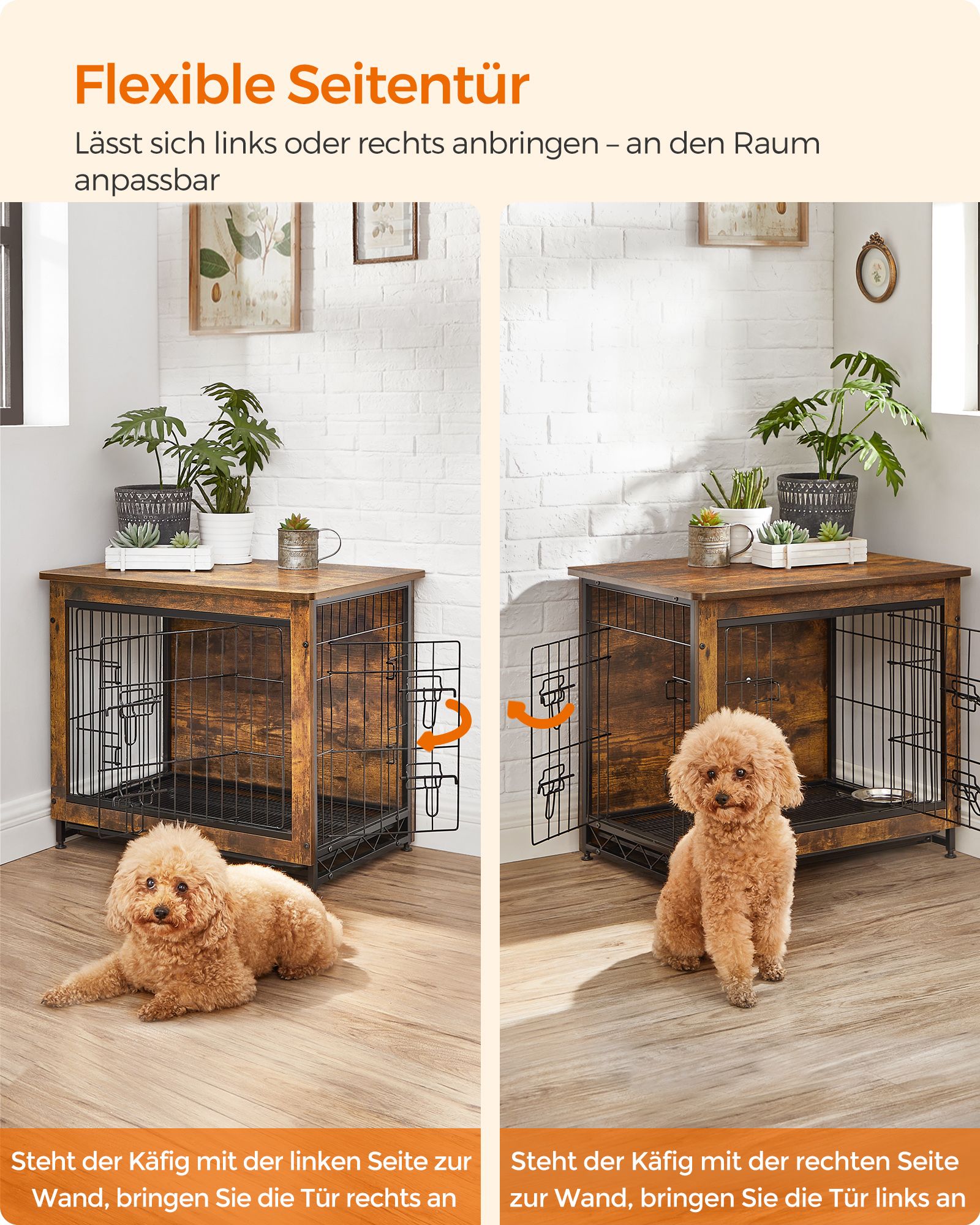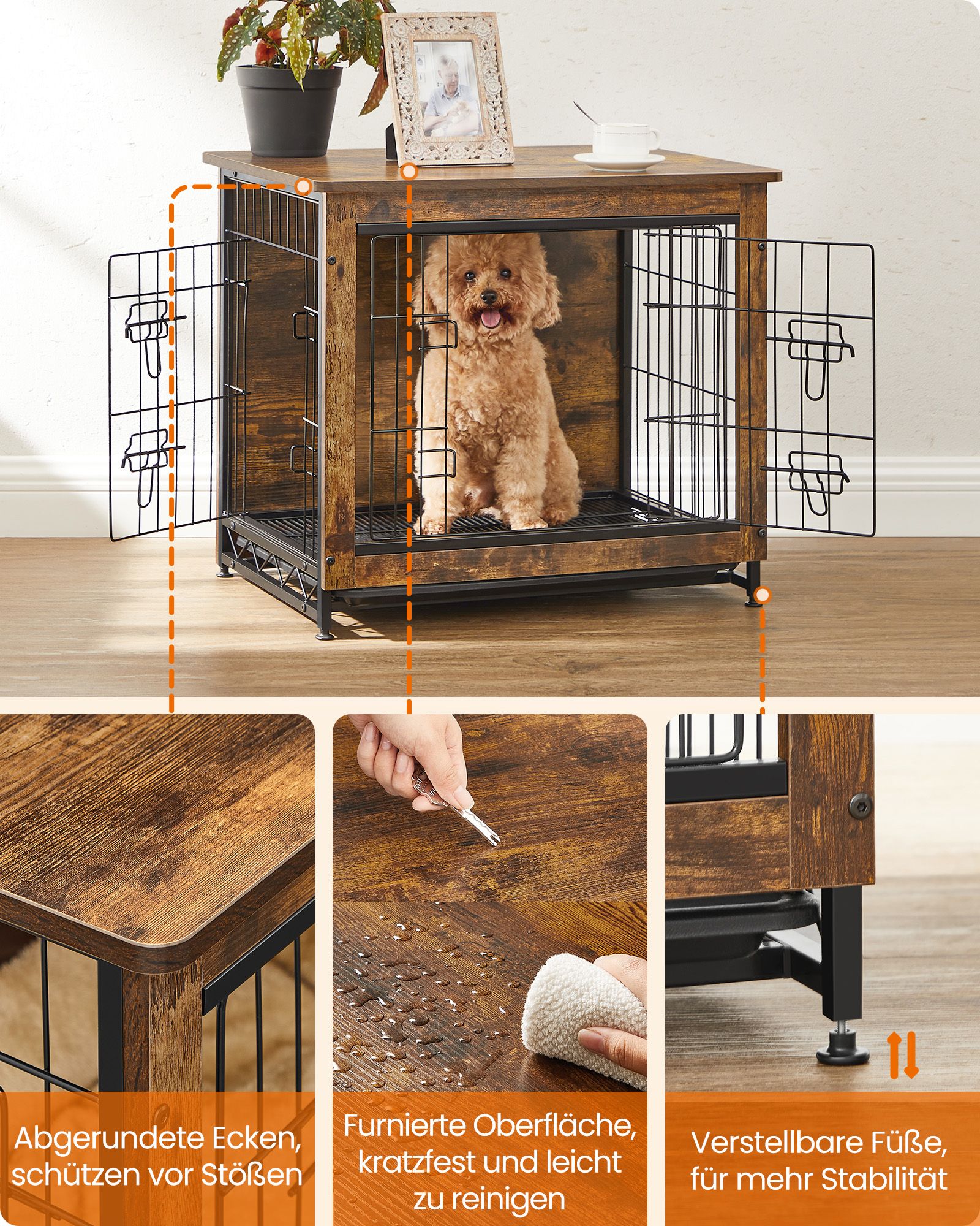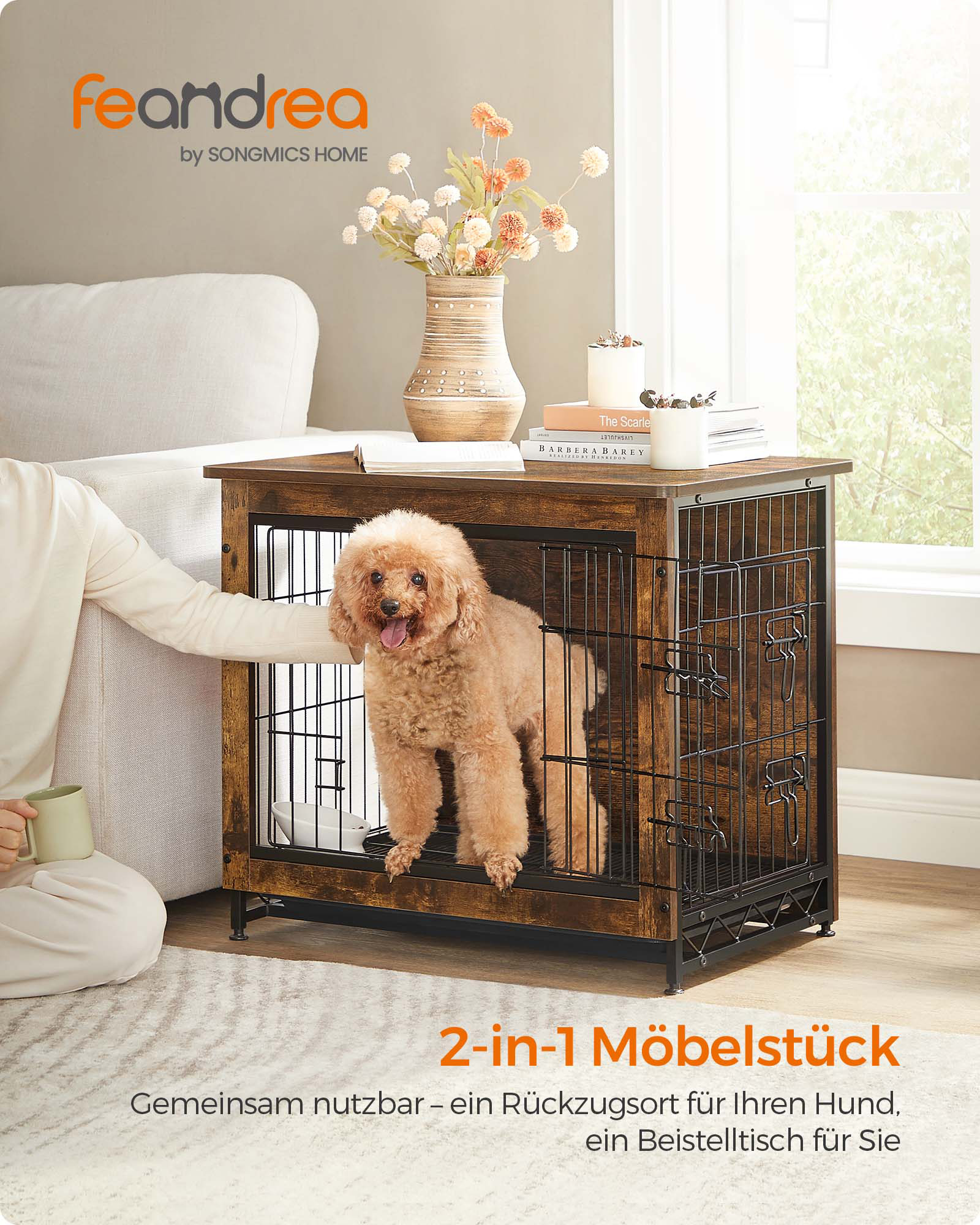 Feandrea hundebur, sidebord, hundekasse, moderne hundehus til indend?rs brug til hunde op til 42 kg, h?j belastbarhed, hundehus til hjemmet, udtagelig bakke, 2 d?re, vintagebrun PFC003X01