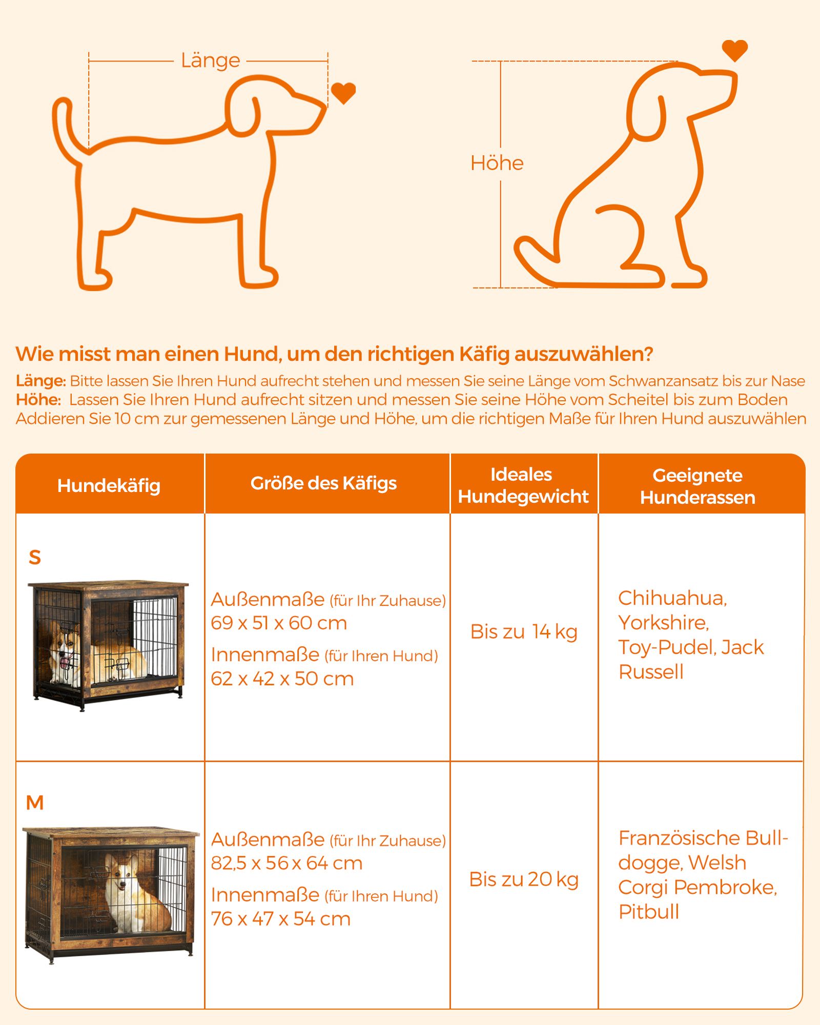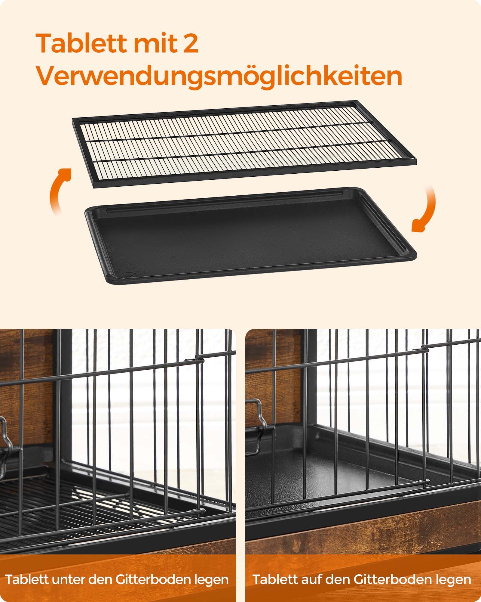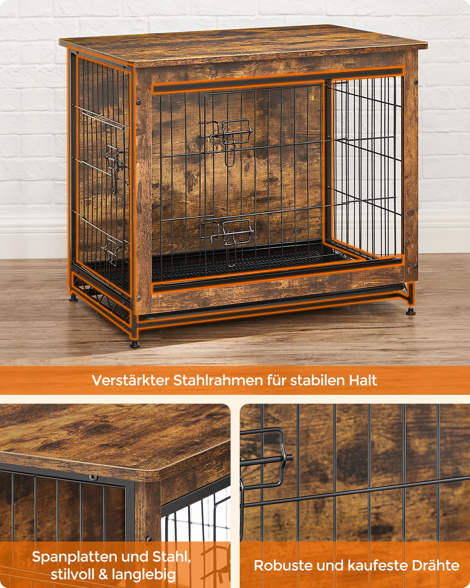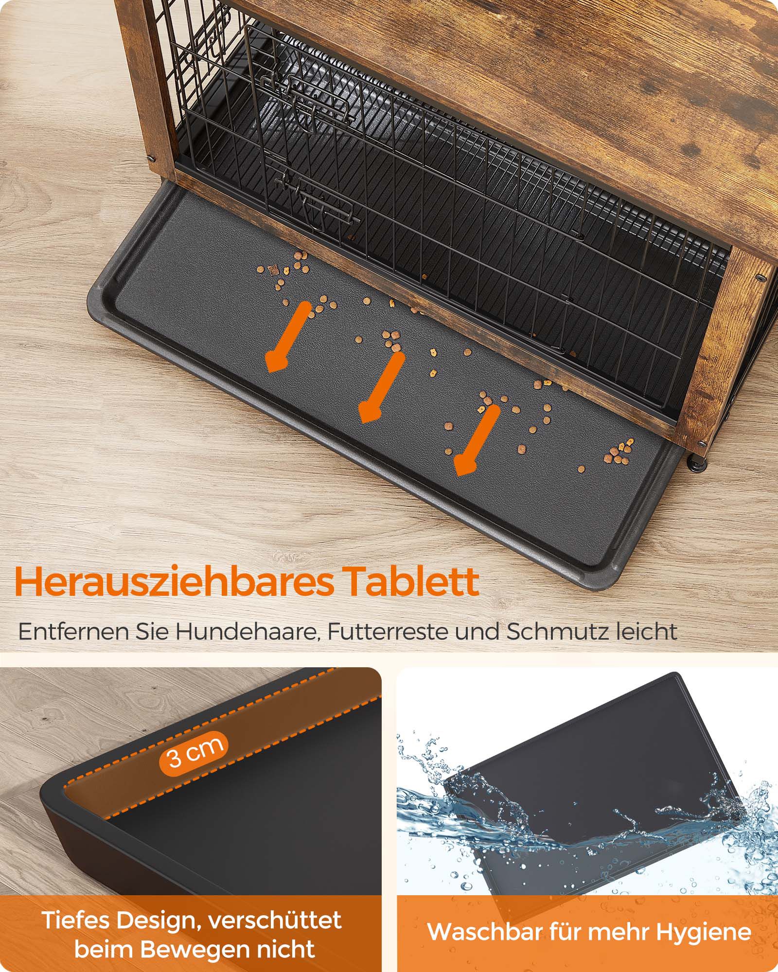 Feandrea hundebur, sidebord, hundekasse, moderne hundehus til indend?rs brug til hunde op til 42 kg, h?j belastbarhed, hundehus til hjemmet, udtagelig bakke, 2 d?re, vintagebrun PFC003X01