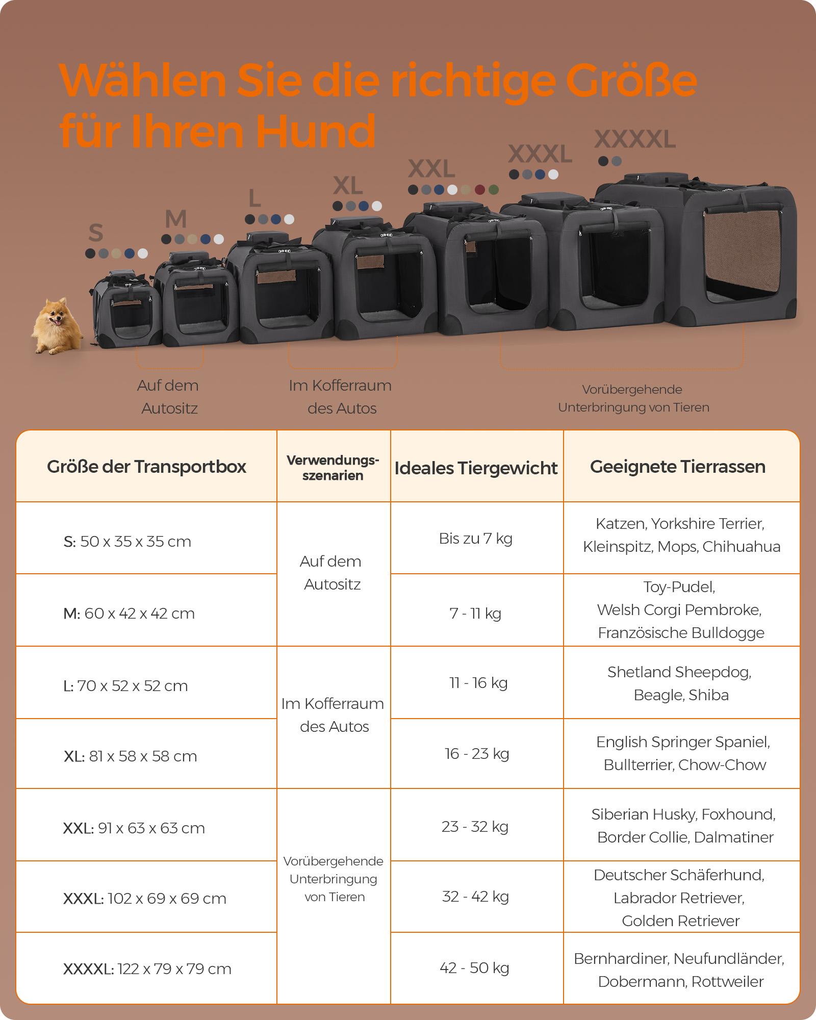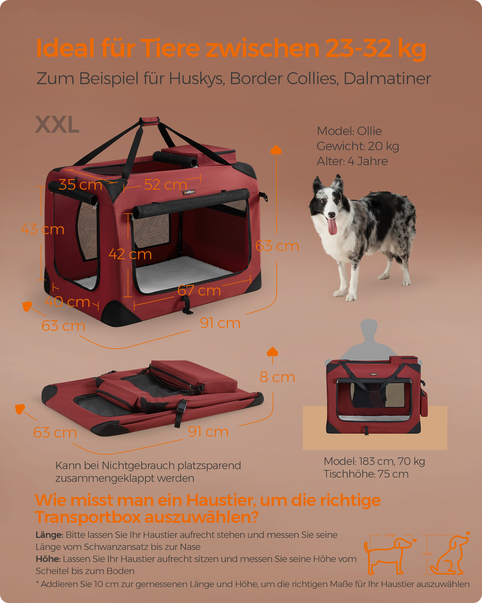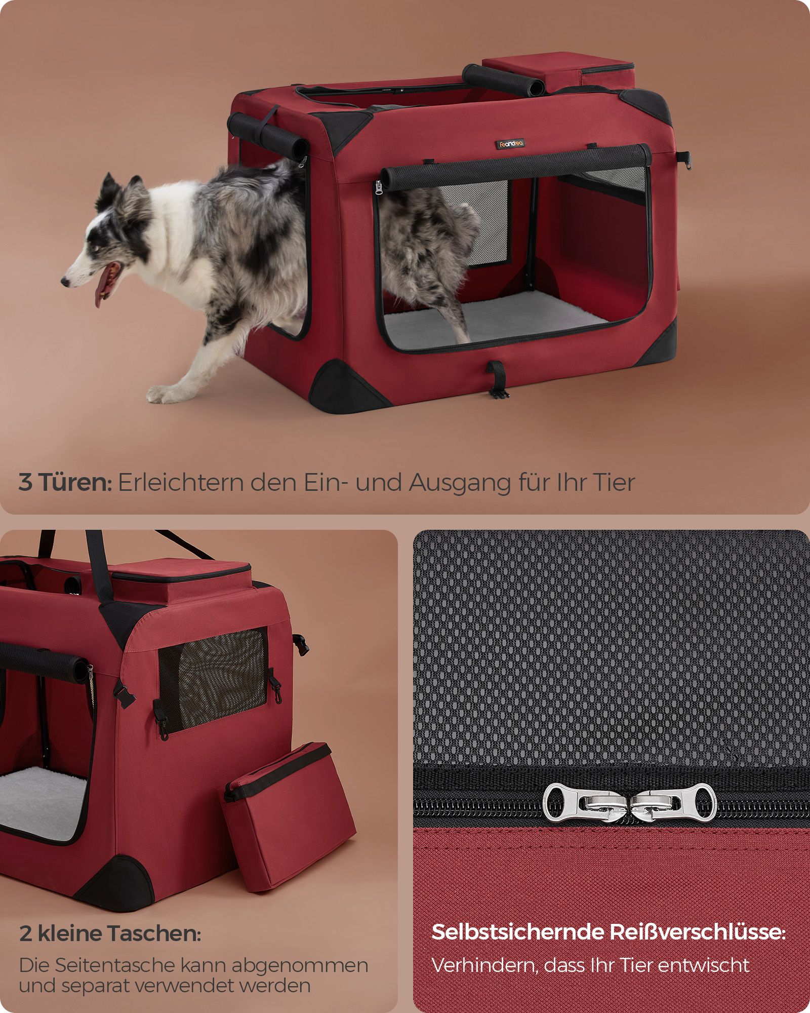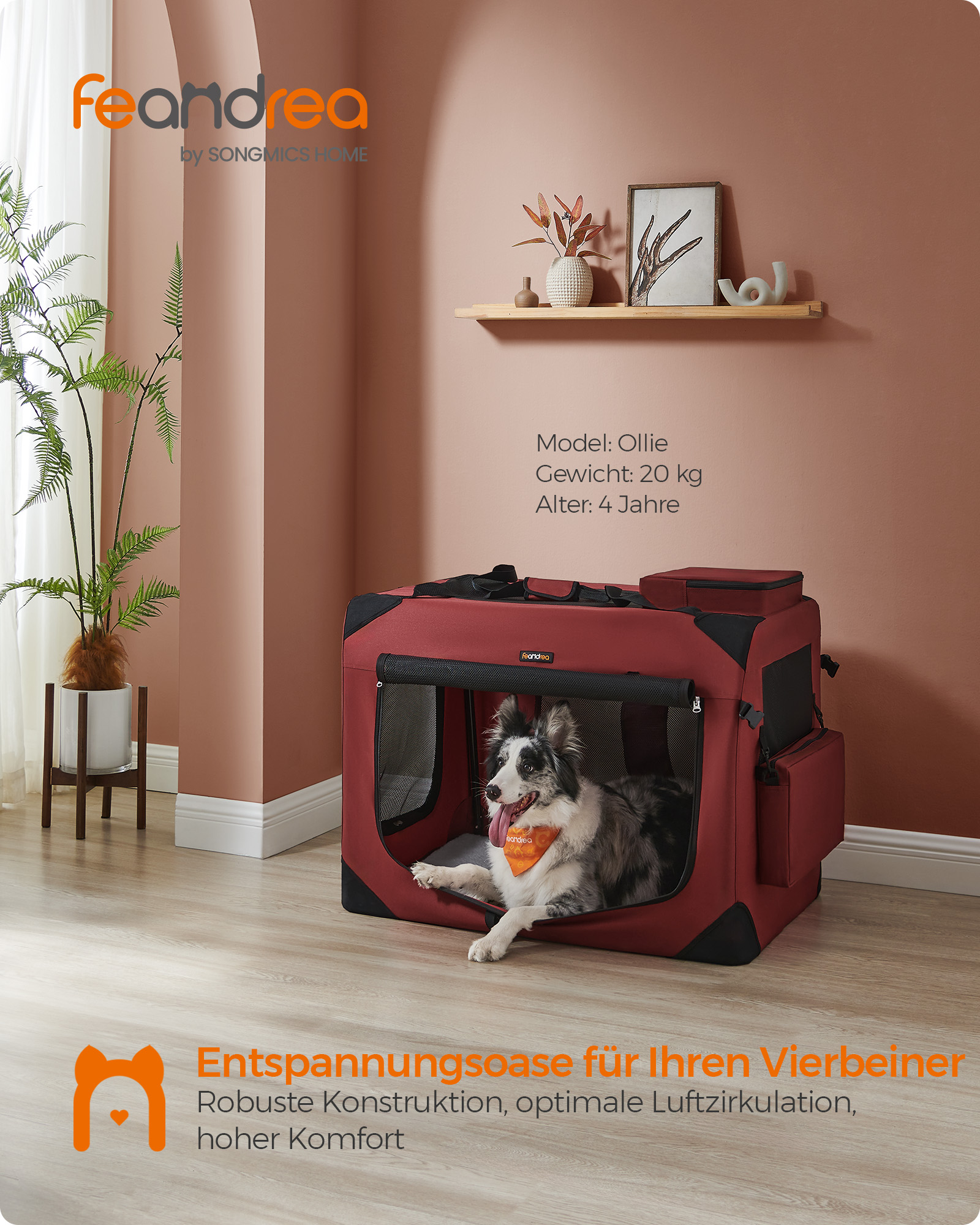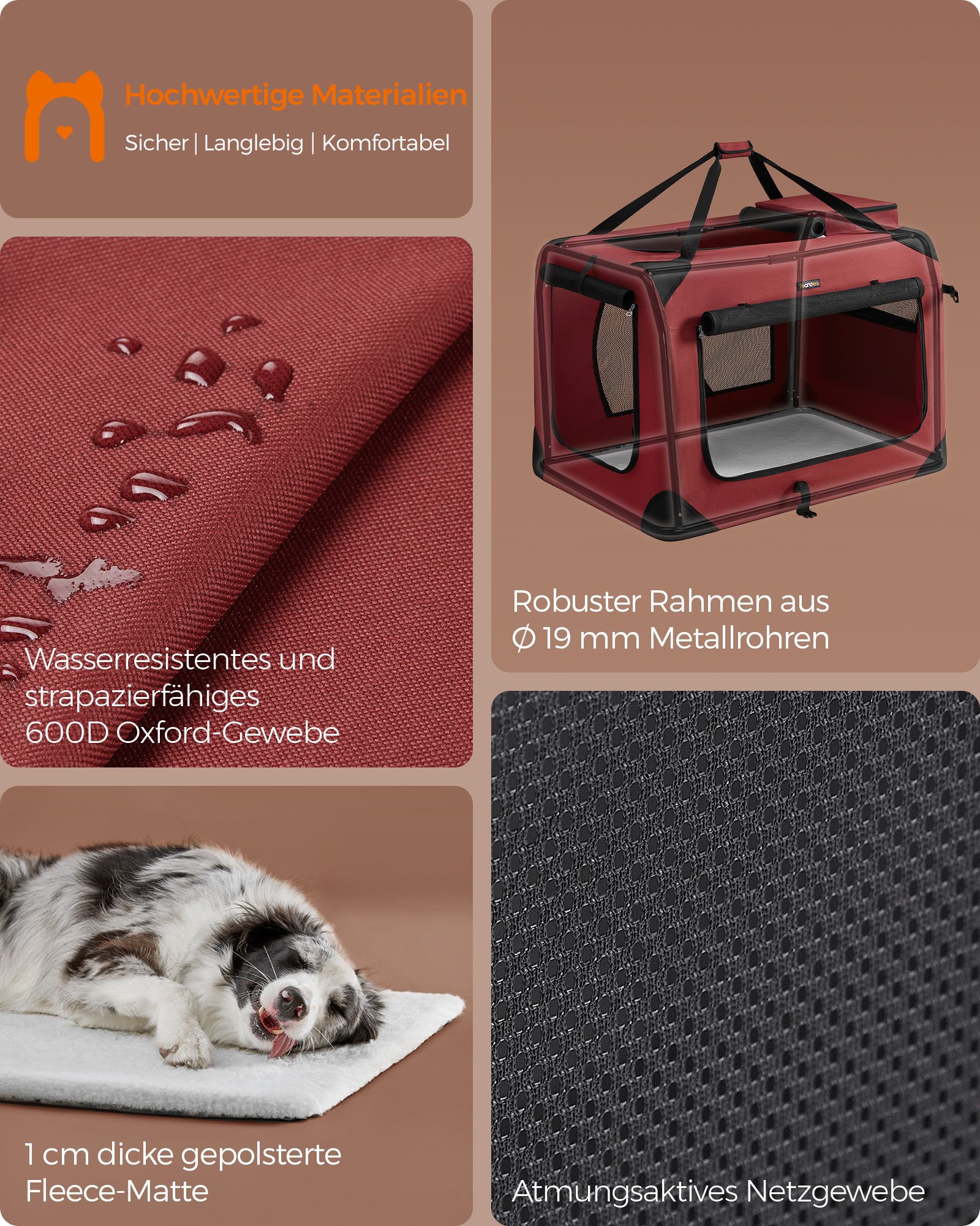 Feandrea hundeboks, transportboks til bil, hundetransportboks, foldbar katteboks af Oxford-stof, 60 x 40 x 40 cm, st?rrelse M, bl? PDC60Z
