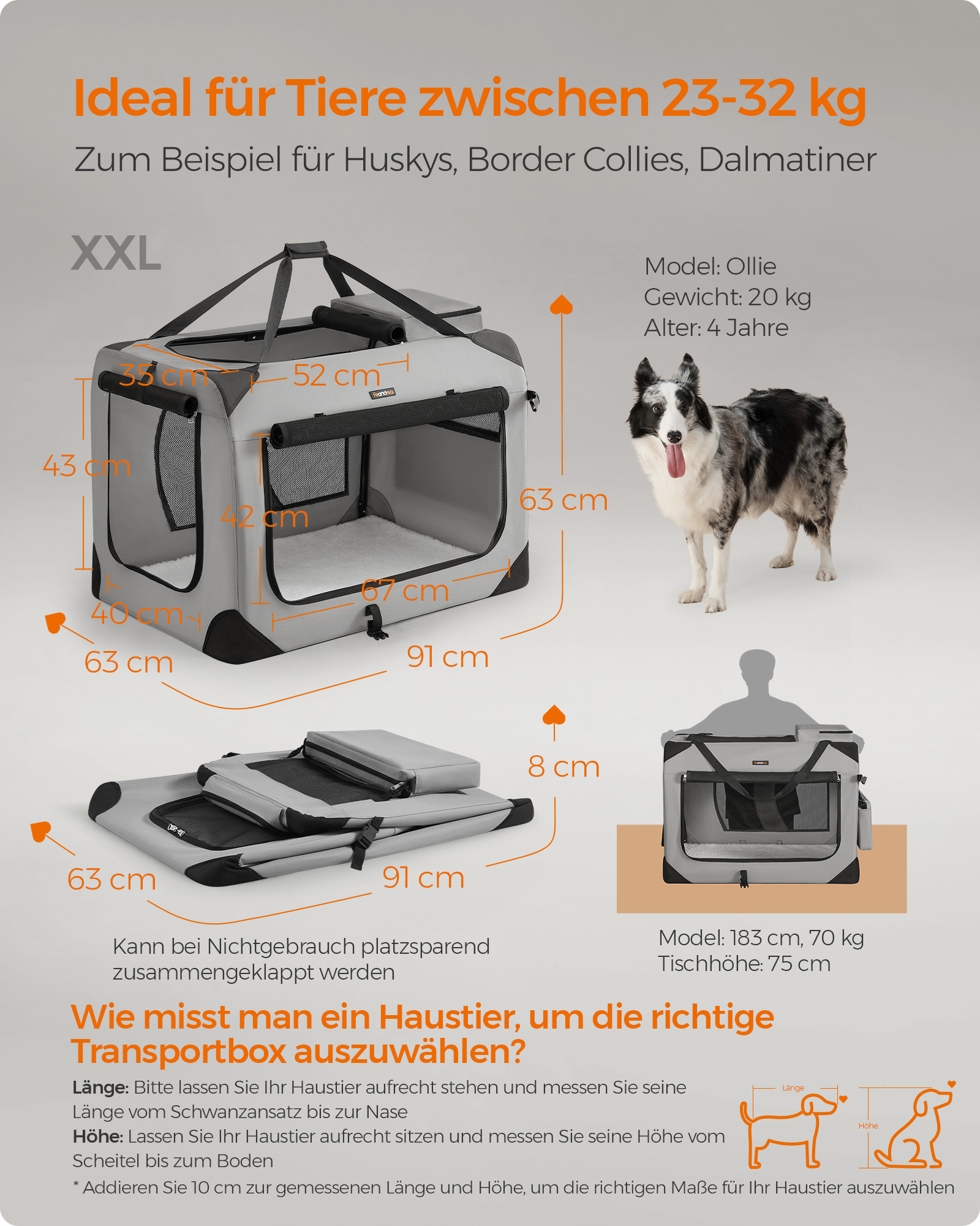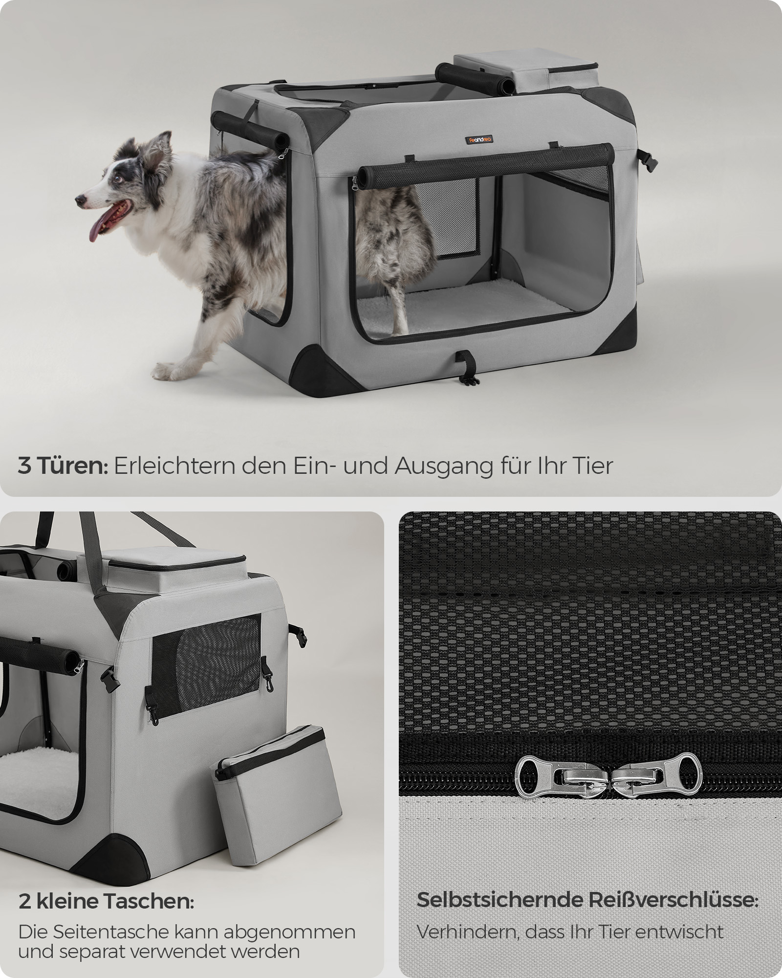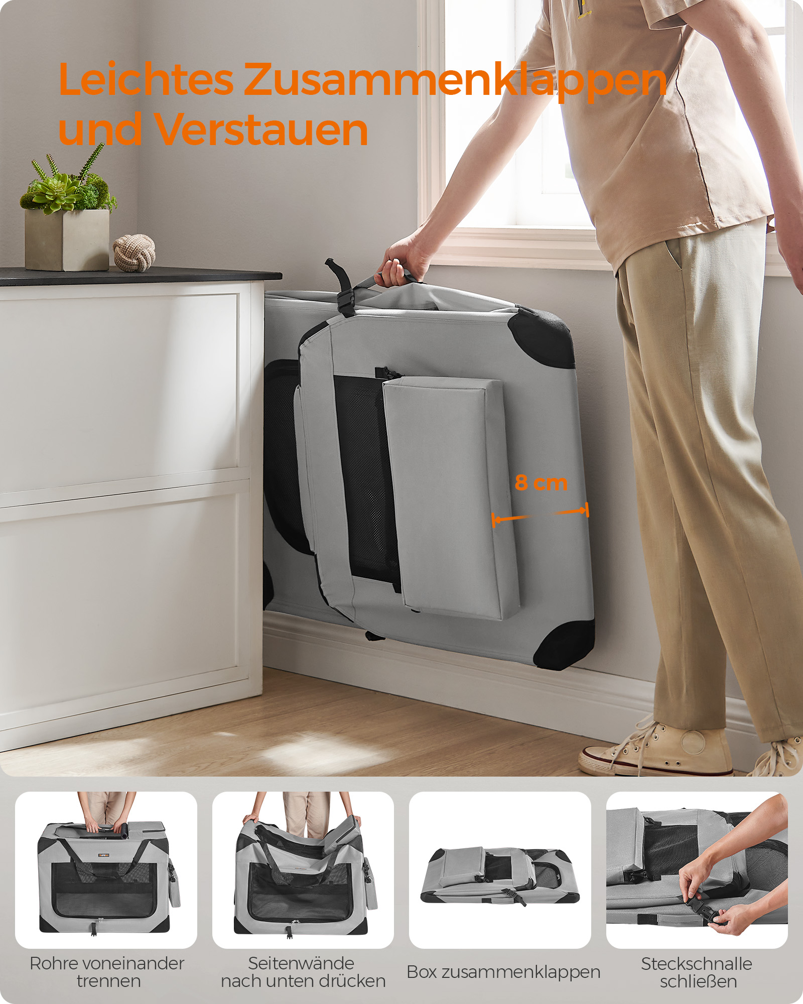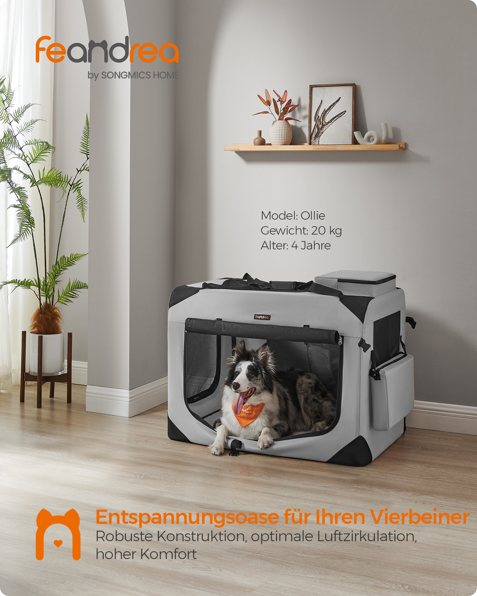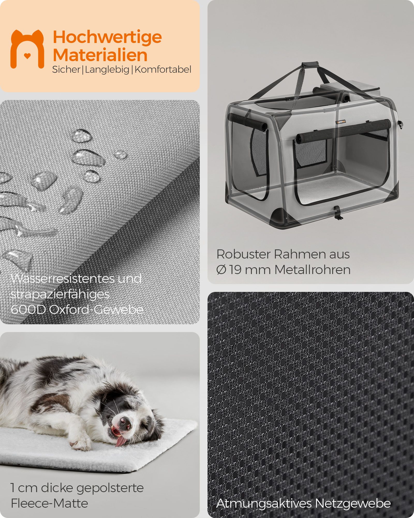 Feandrea hundeboks, transportboks til bil, hundetransportboks, foldbar katteboks af Oxford-stof, 60 x 40 x 40 cm, st?rrelse M, bl? PDC60Z