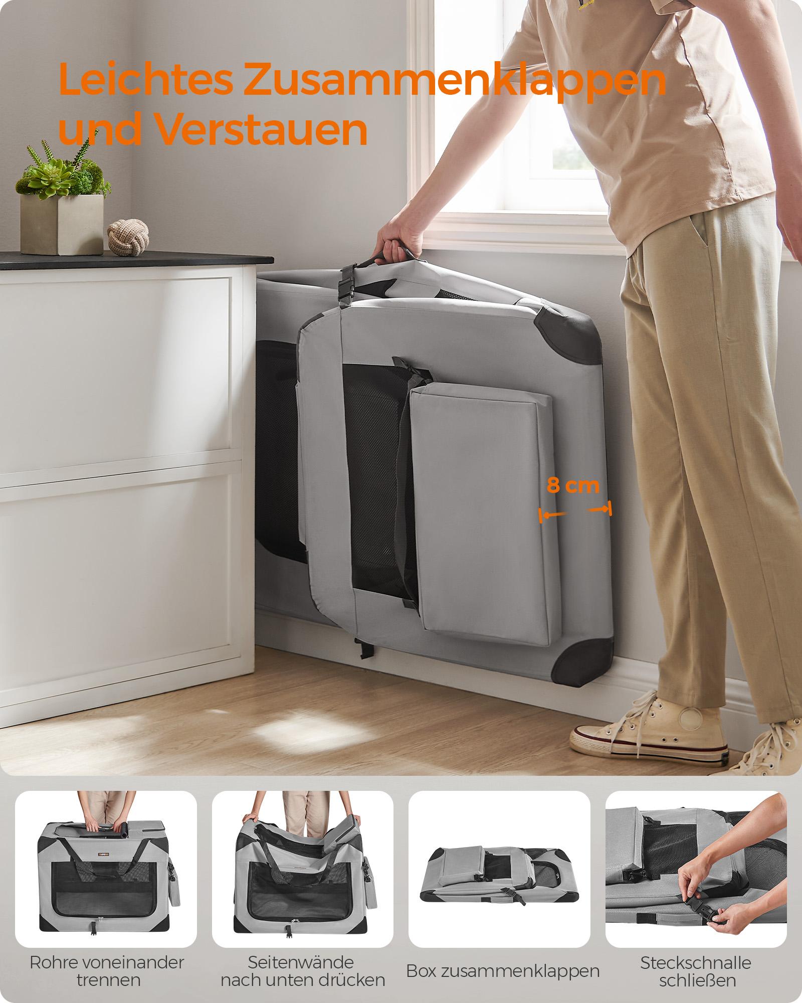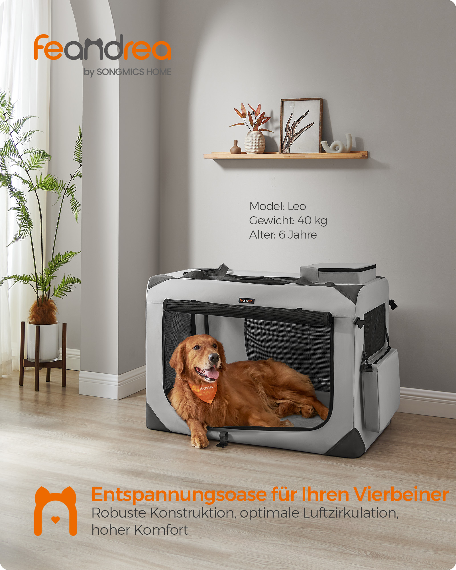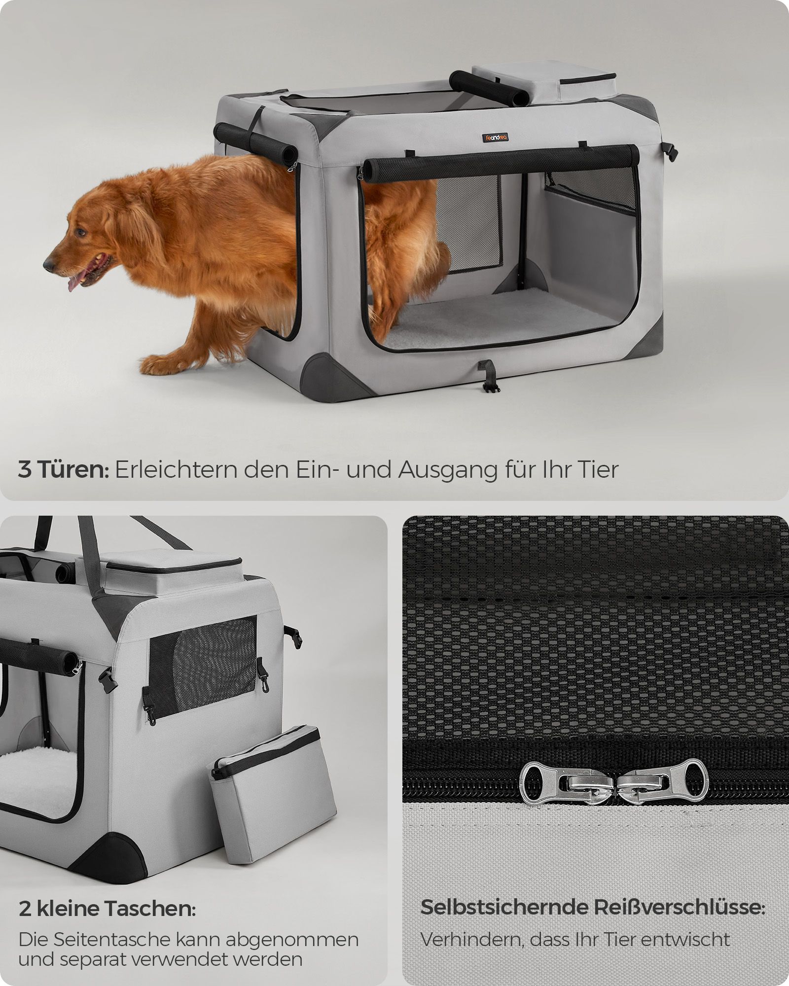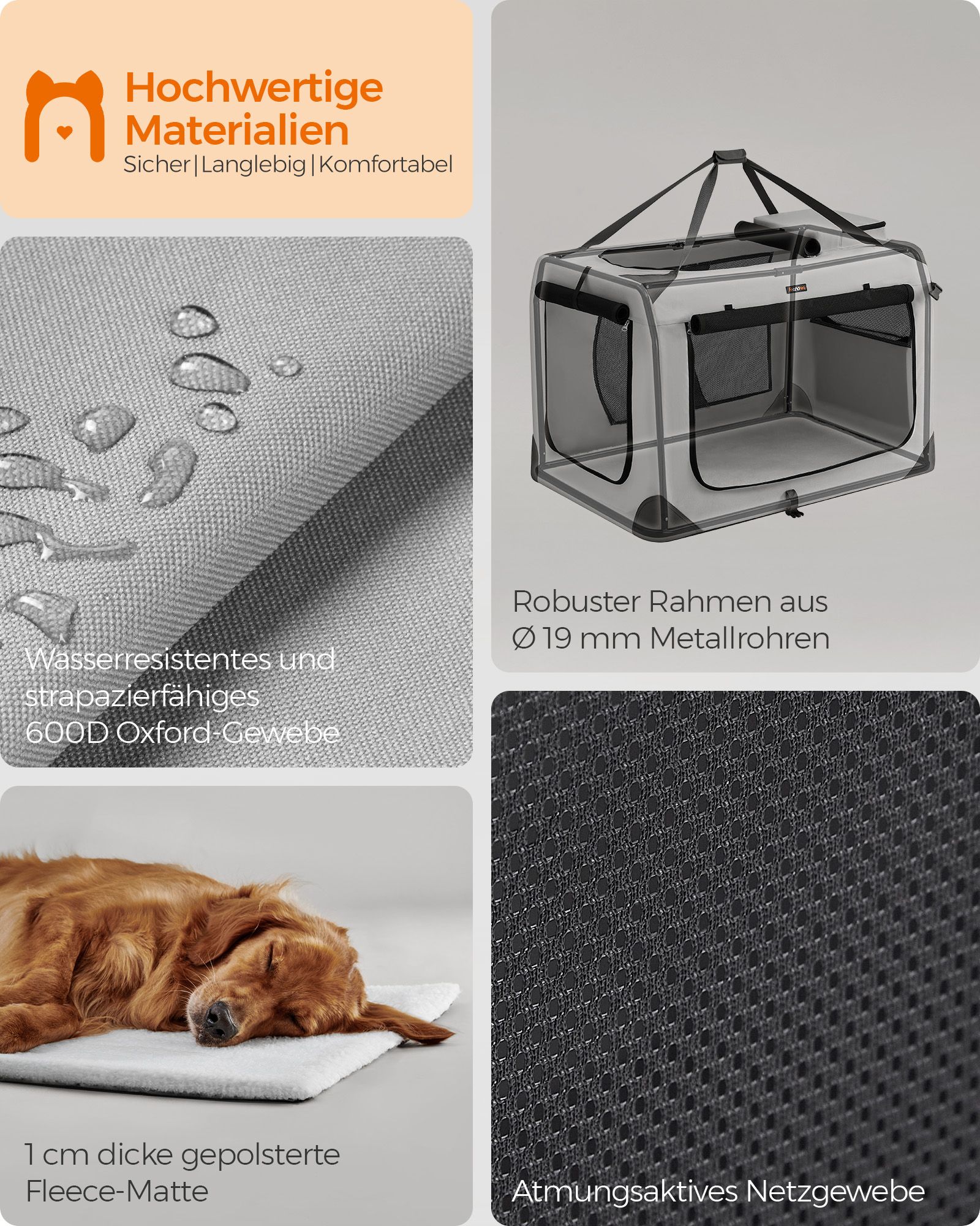 Feandrea hundeboks, transportboks til bil, hundetransportboks, foldbar katteboks af Oxford-stof, 60 x 40 x 40 cm, st?rrelse M, bl? PDC60Z