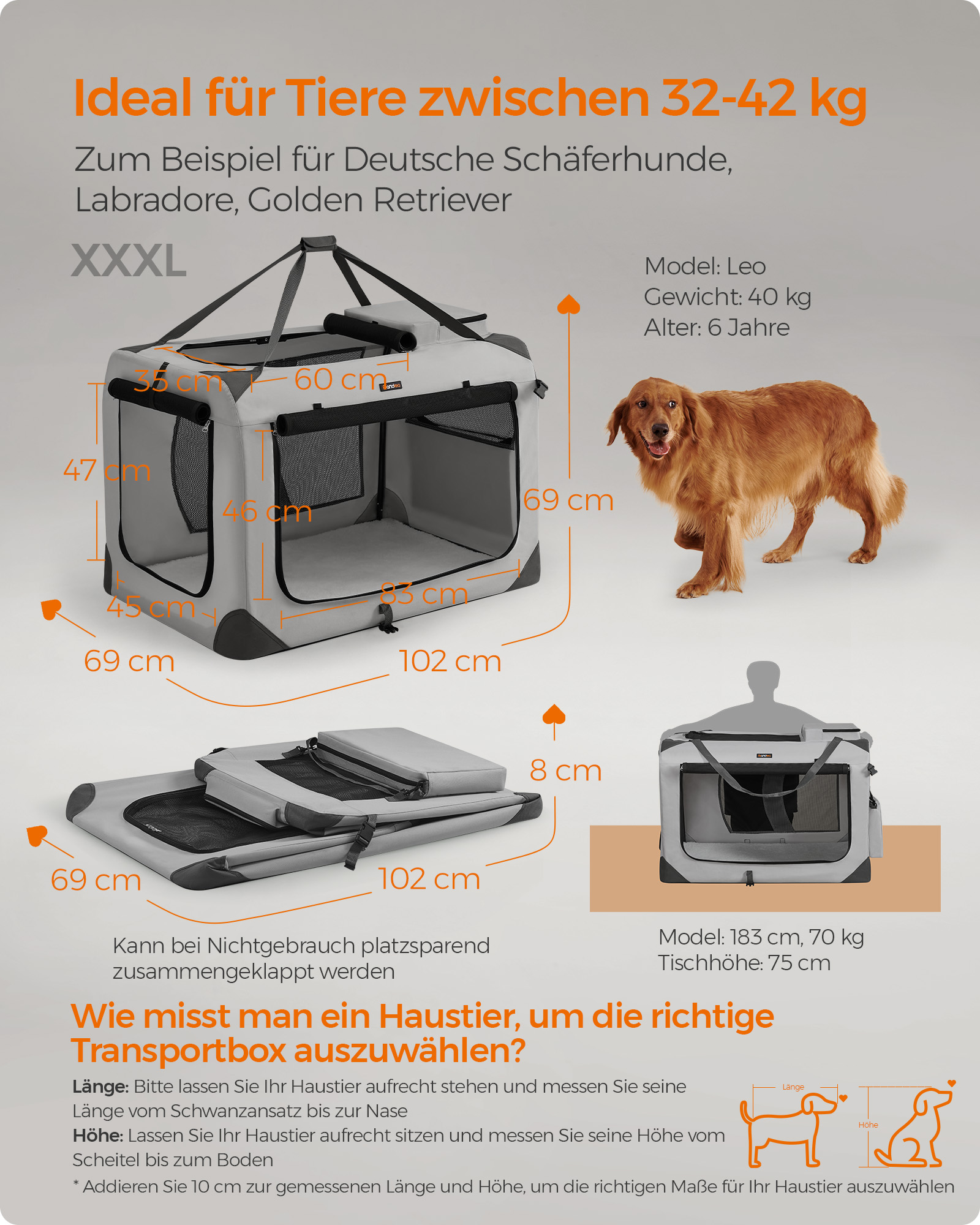 Produktets m?l i st?rrelse XXXL: 102 x 69 x 69 cm (L x B x H)