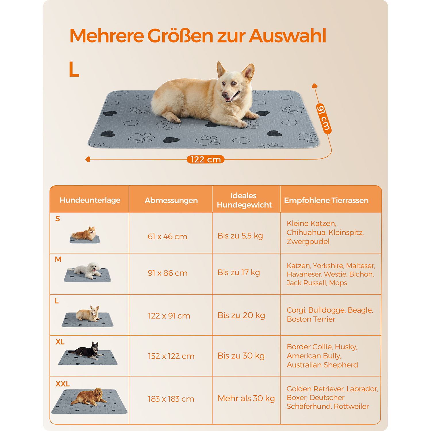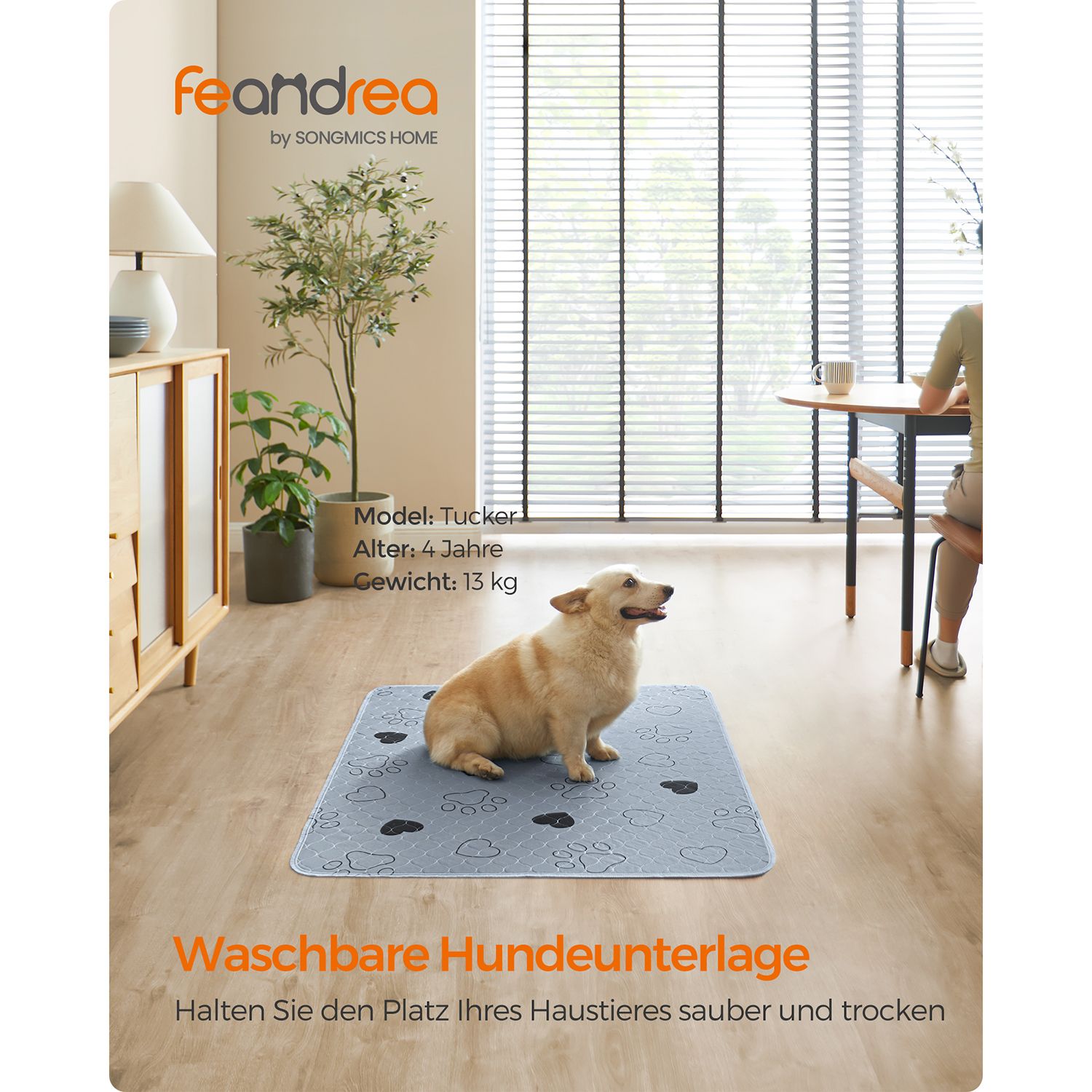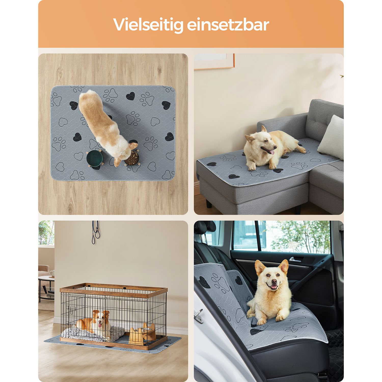 Feandrea hvalpeunderlag, vaskbare, genanvendelige m?tter til hunde, 61 x 46 cm, 2-pak, S, hundetoilet, l?kagesikre, skridsikre, superabsorberende, katte, kaniner, gr? PTD018G01