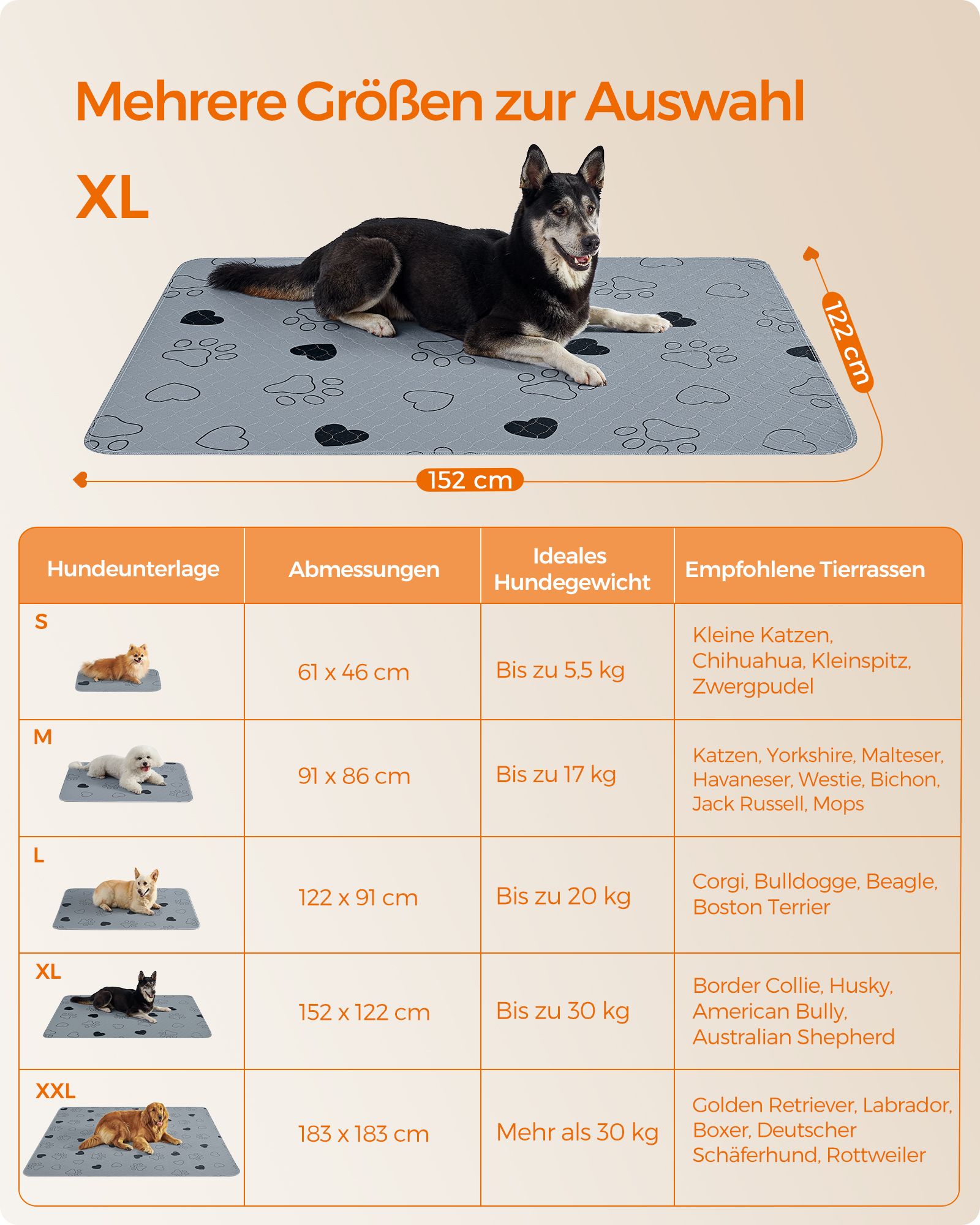 Feandrea hvalpeunderlag, vaskbare, genanvendelige m?tter til hunde, 152 x 122 cm, 2 stk. s?t, XL, hundetoilet, l?kagesikre, skridsikre, superabsorberende, katte, kaniner
