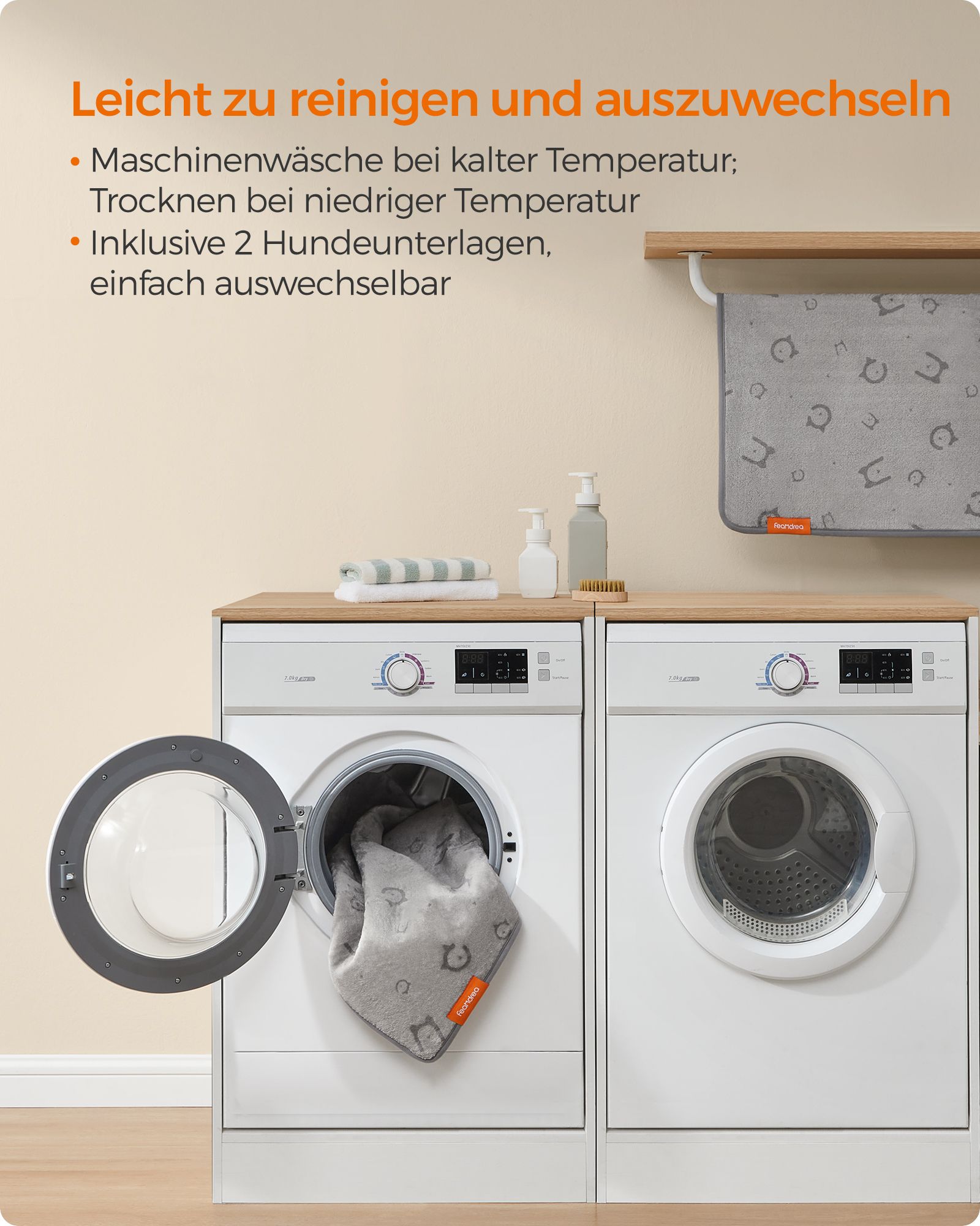 Feandrea hundet?ppe, 2-pak, genanvendelig hundem?tte, 61 x 46 cm, S, vandt?t, l?kagesikker, skridsikker, absorberende til hunde, katte, kaniner, duvegr? PTD001G01