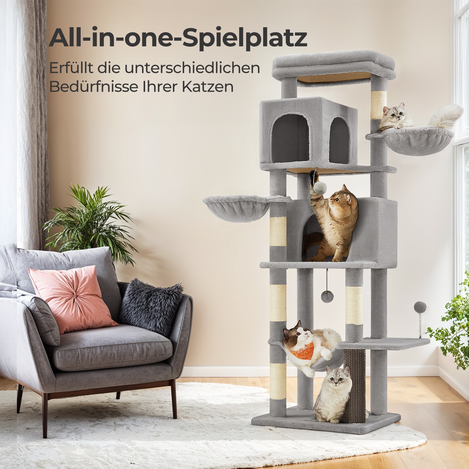 Feandrea Kratzbaum, 175 cm h?j, XL, fleretages katteklatrestativ med 2 huler, 2 liggepladser, 5 klatres?jler, katteb?rste, stor platform, duvegr? PCT182G01