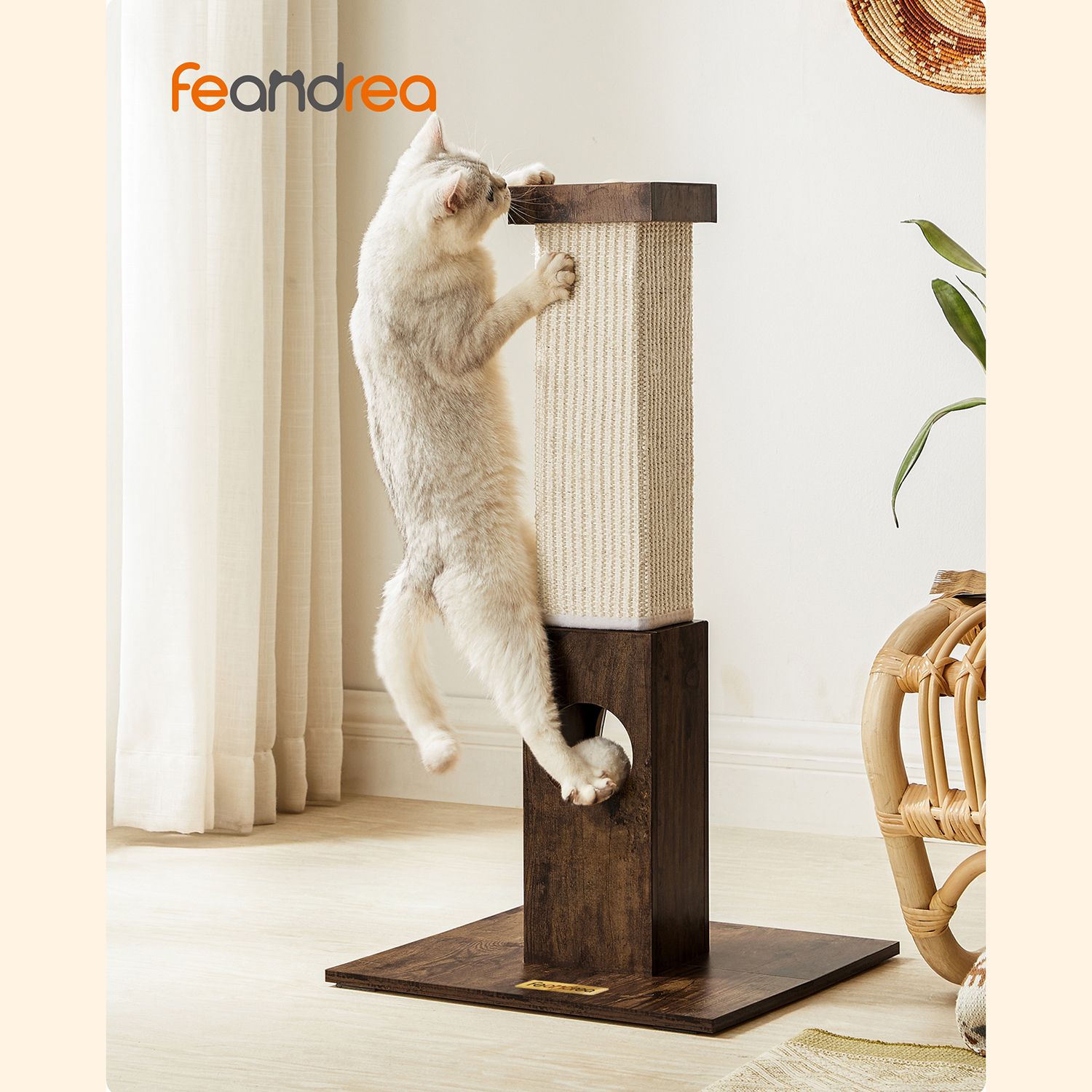 Feandrea Kratre, Kratestolpe, Kratestamme af naturligt sisalreb?Kratre med plys legebold, Kratbeskyttelse til m?bler, 73 cm h?j, vintagebrun PCA021X01