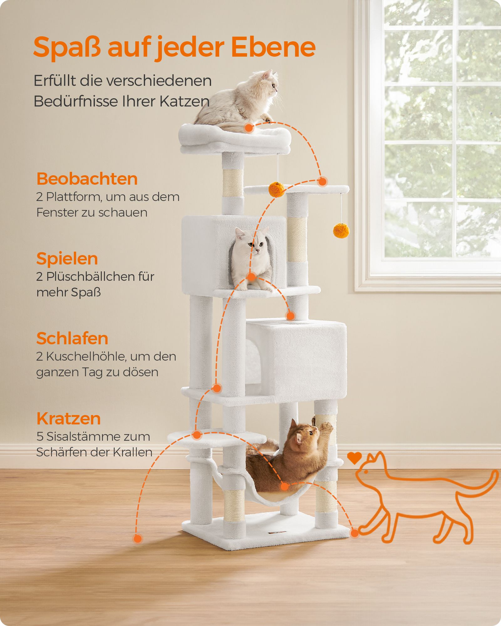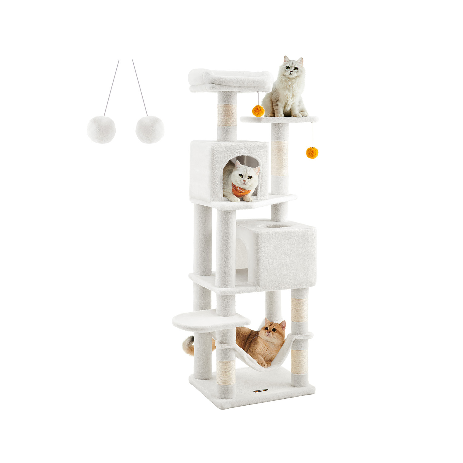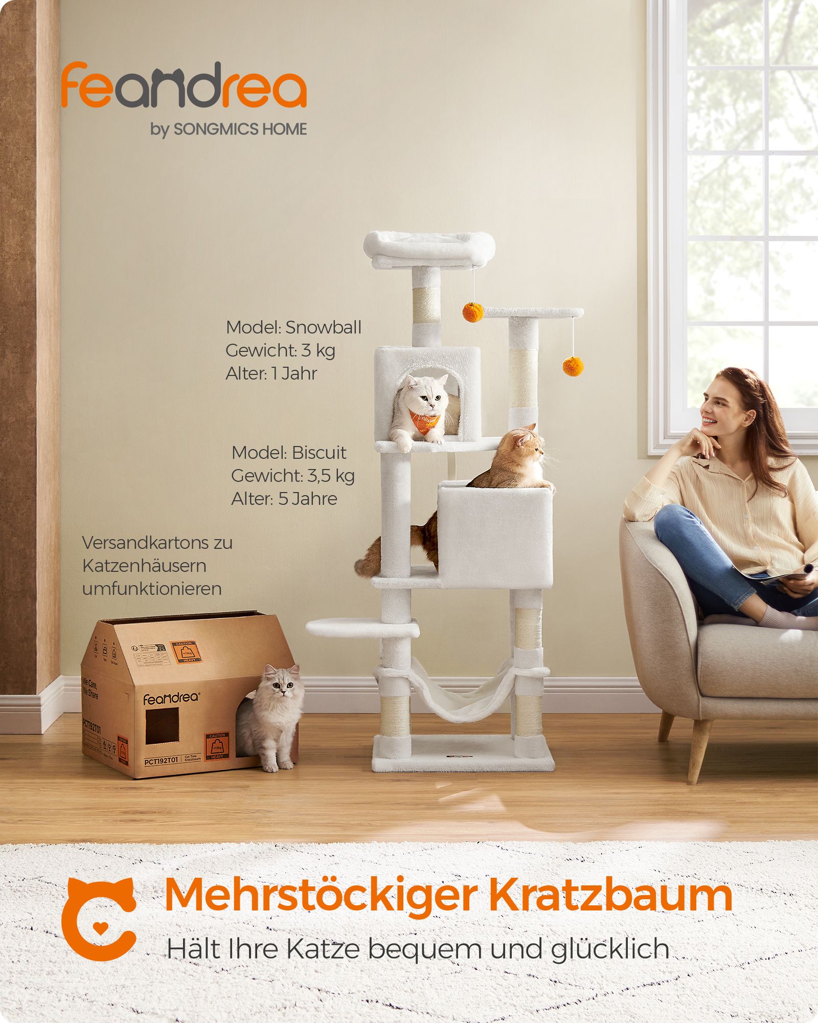 Feandrea Kratzbaum, 155 cm h?j, katteklatrestativ med 5 klatres?jler, 2 platforme, 2 kattehuler, h?ngek?je, 2 plysbolde, plys, fleretages design, r?ggr? PCT192G01