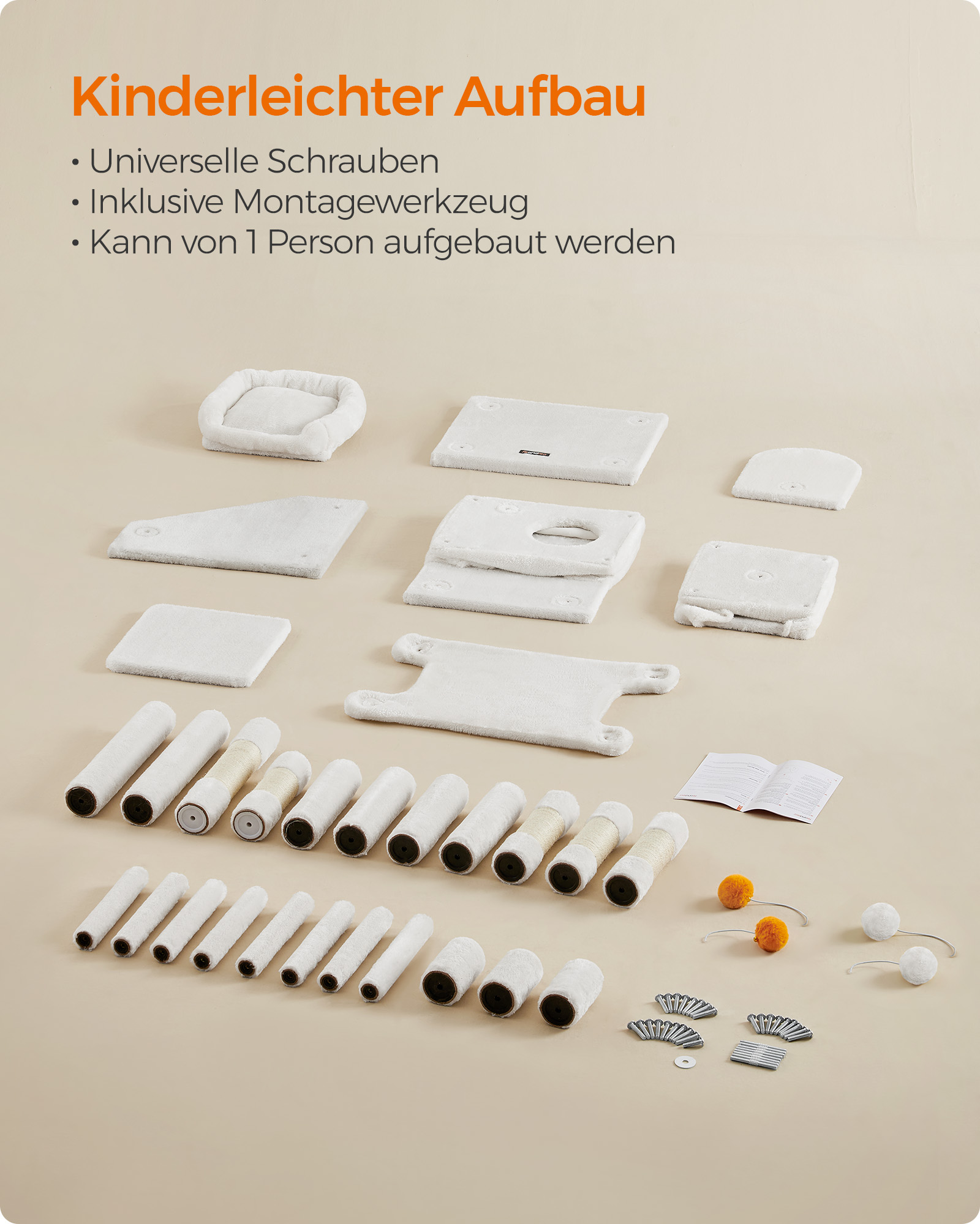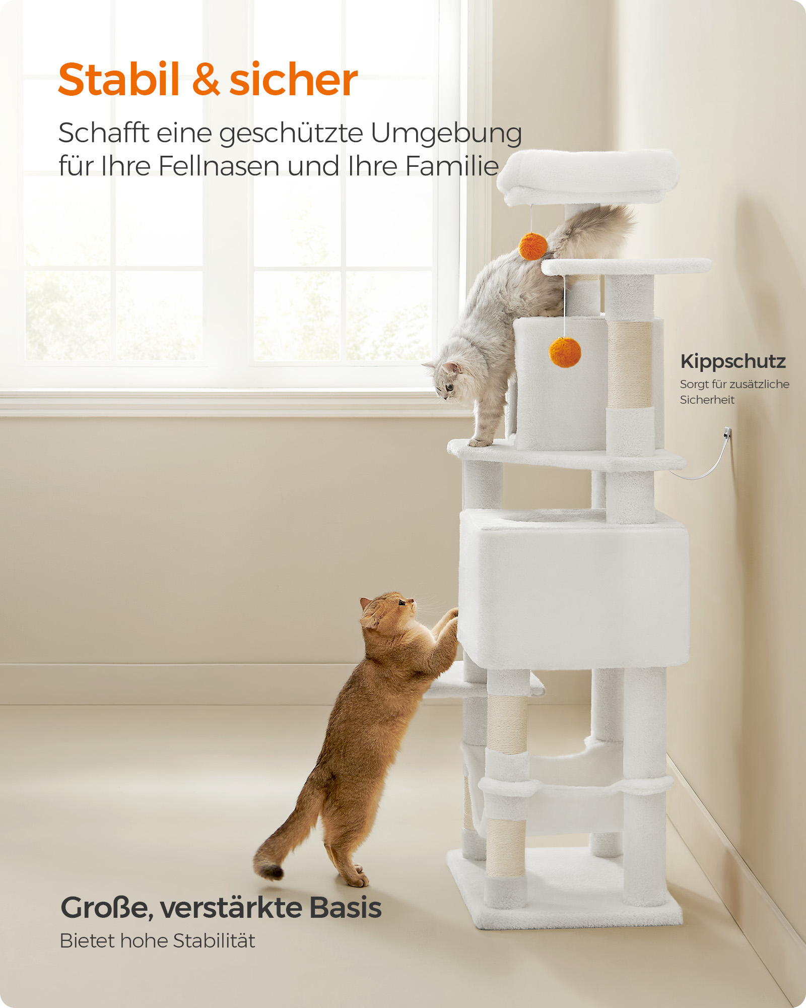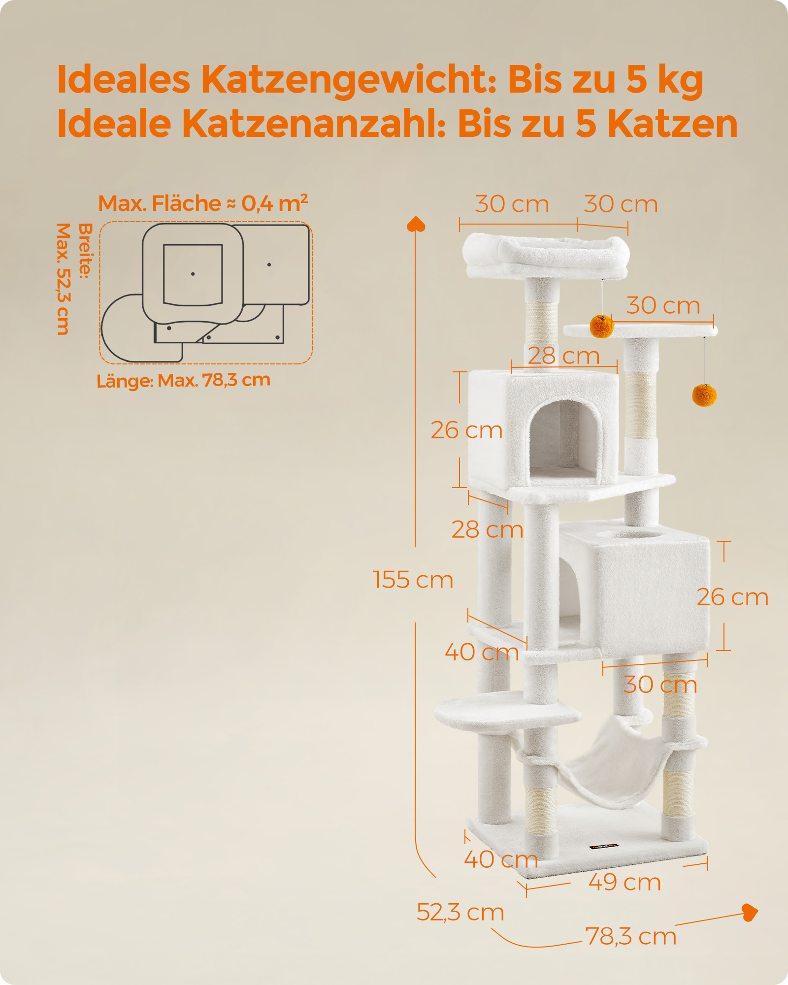 Feandrea Kratzbaum, 155 cm h?j, katteklatrestativ med 5 klatres?jler, 2 platforme, 2 kattehuler, h?ngek?je, 2 plysbolde, plys, fleretages design, r?ggr? PCT192G01