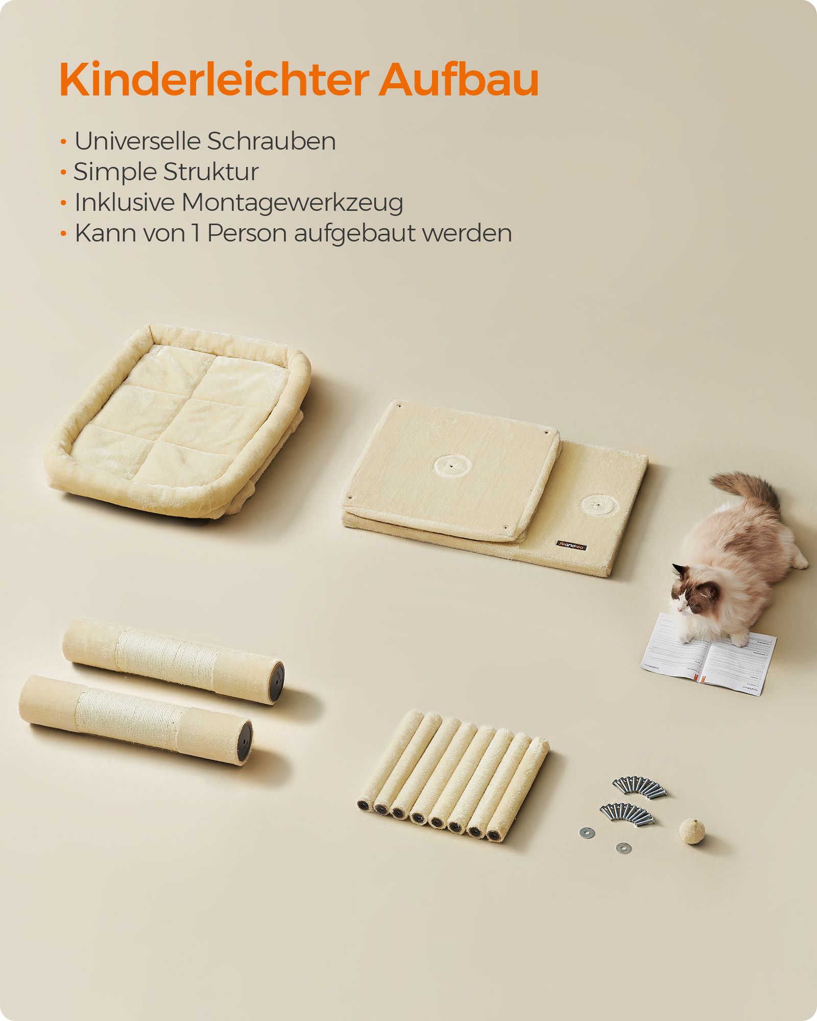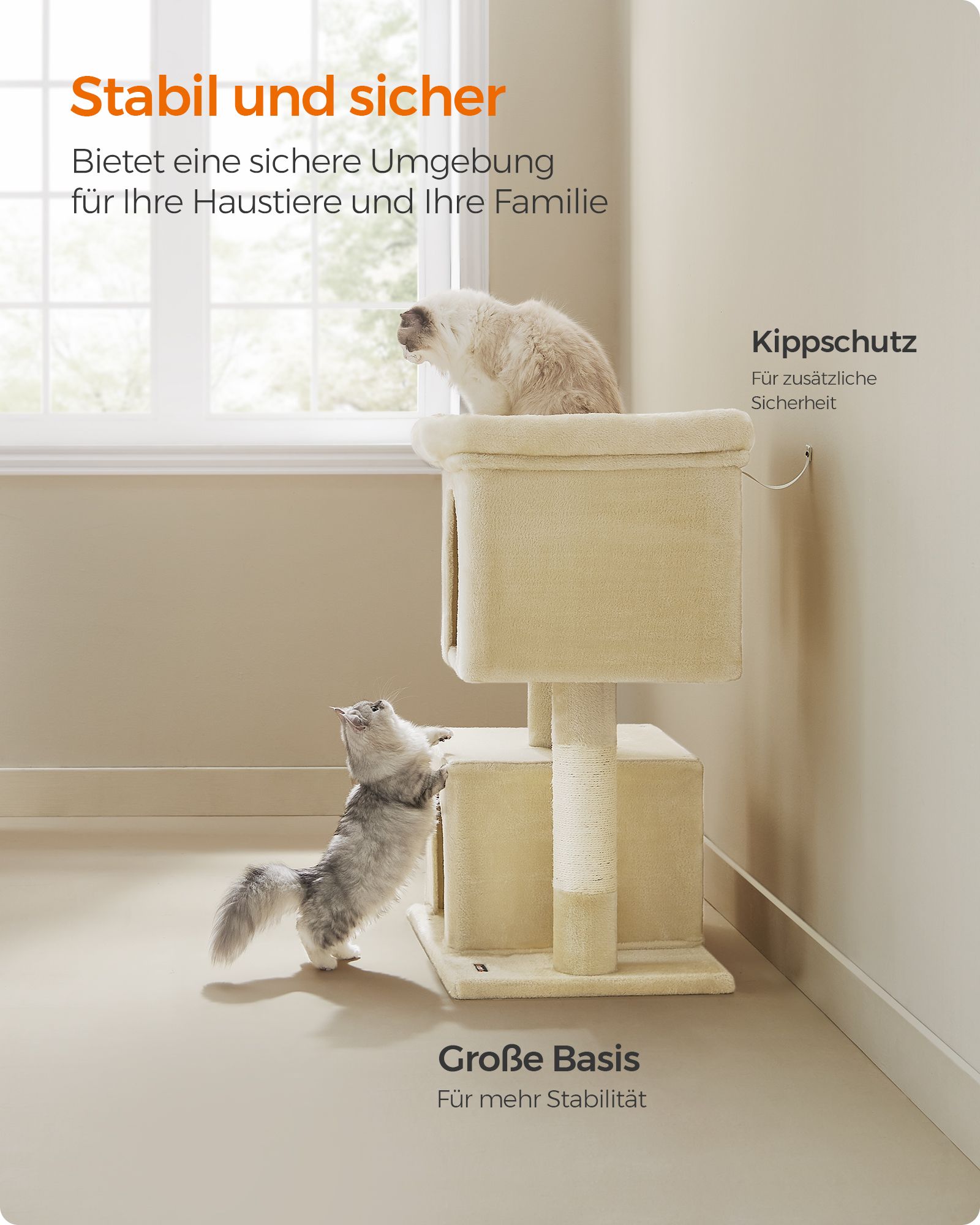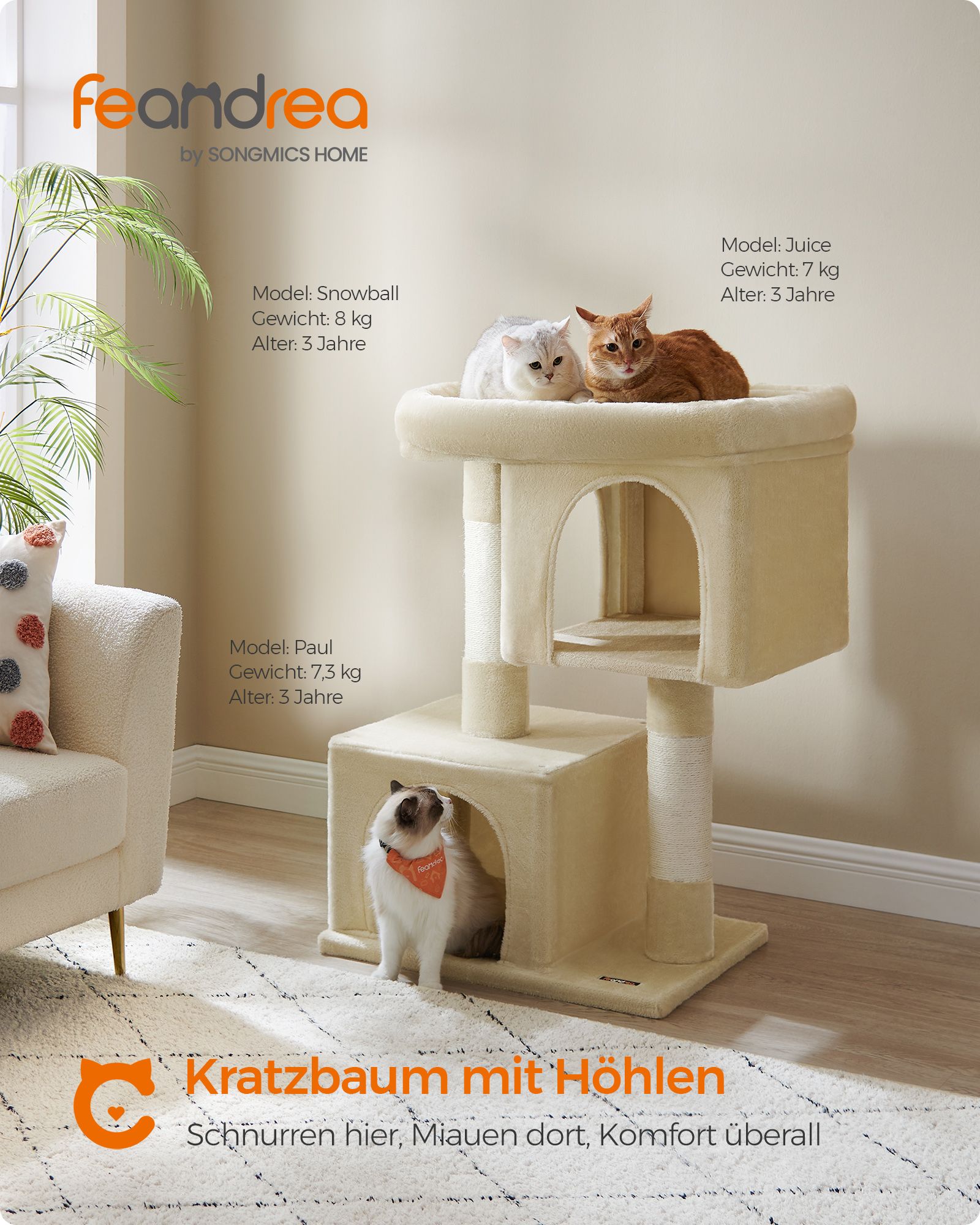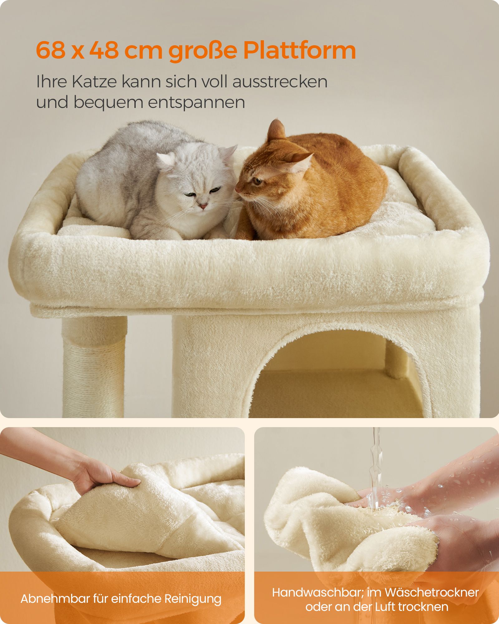 Feandrea Kradsetr?, Kattetr? med stor platform og 2 plysgrotter, Legehus, Klatretr? til katte, lysegr? PCT61W