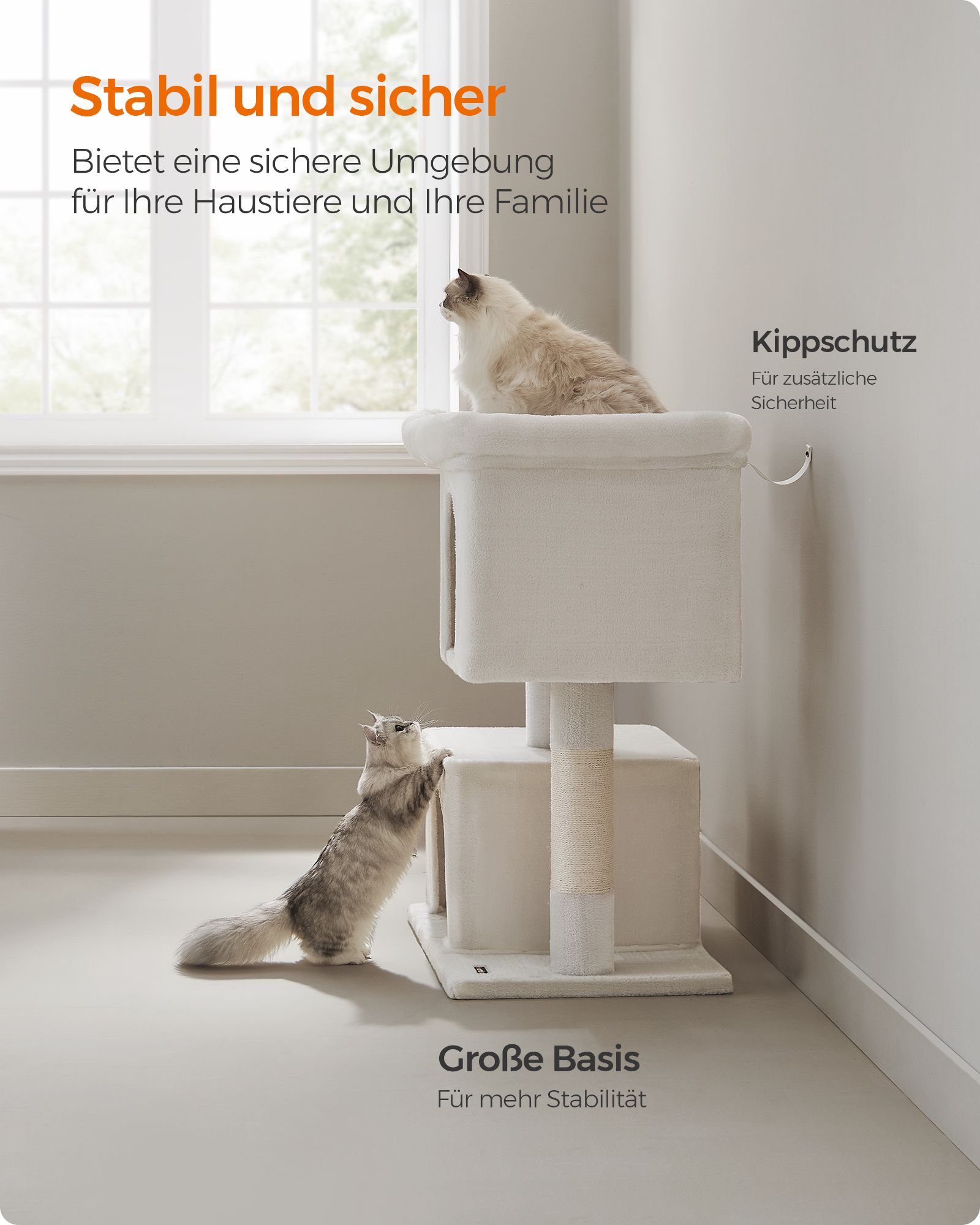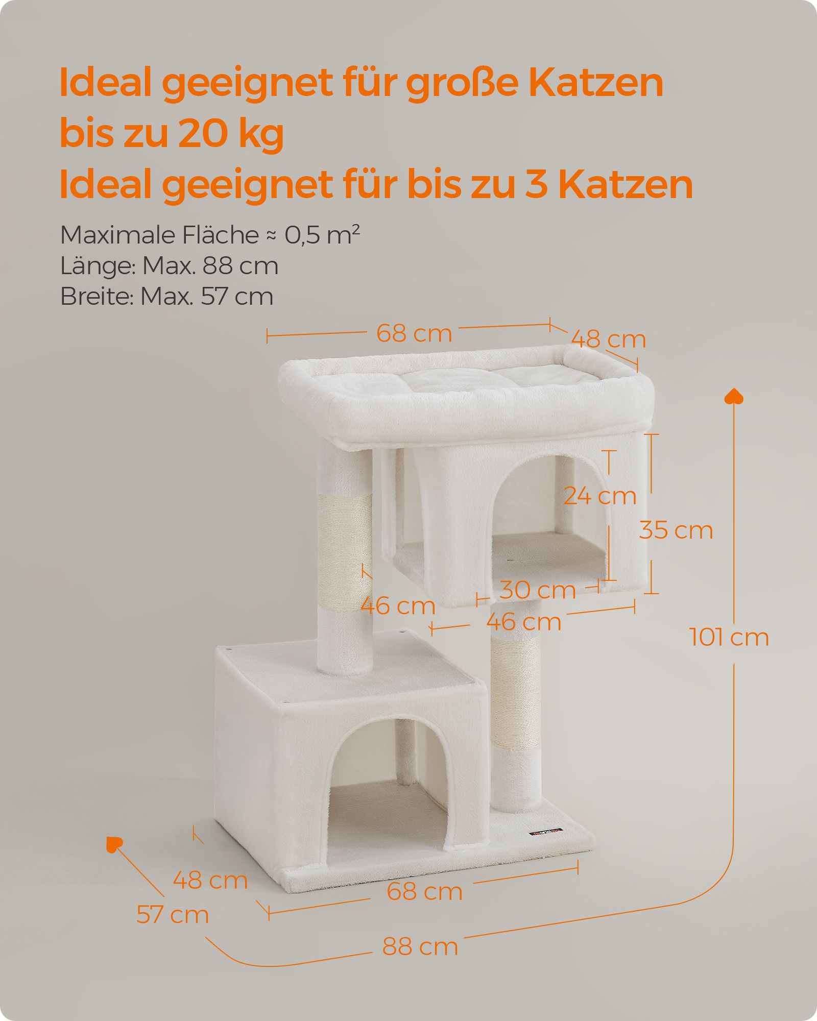 Feandrea Kradsetr?, Kattetr? med stor platform og 2 plysgrotter, Legehus, Klatretr? til katte, lysegr? PCT61W