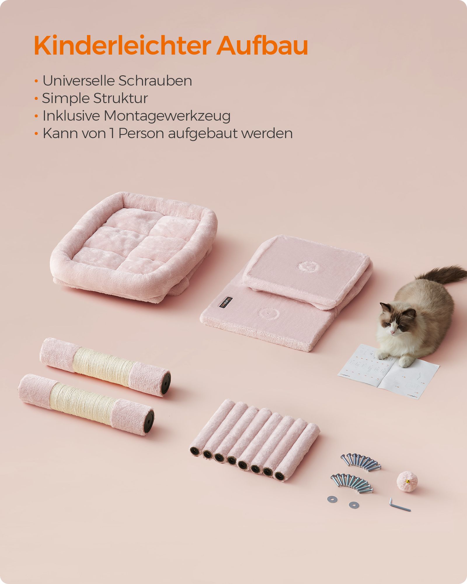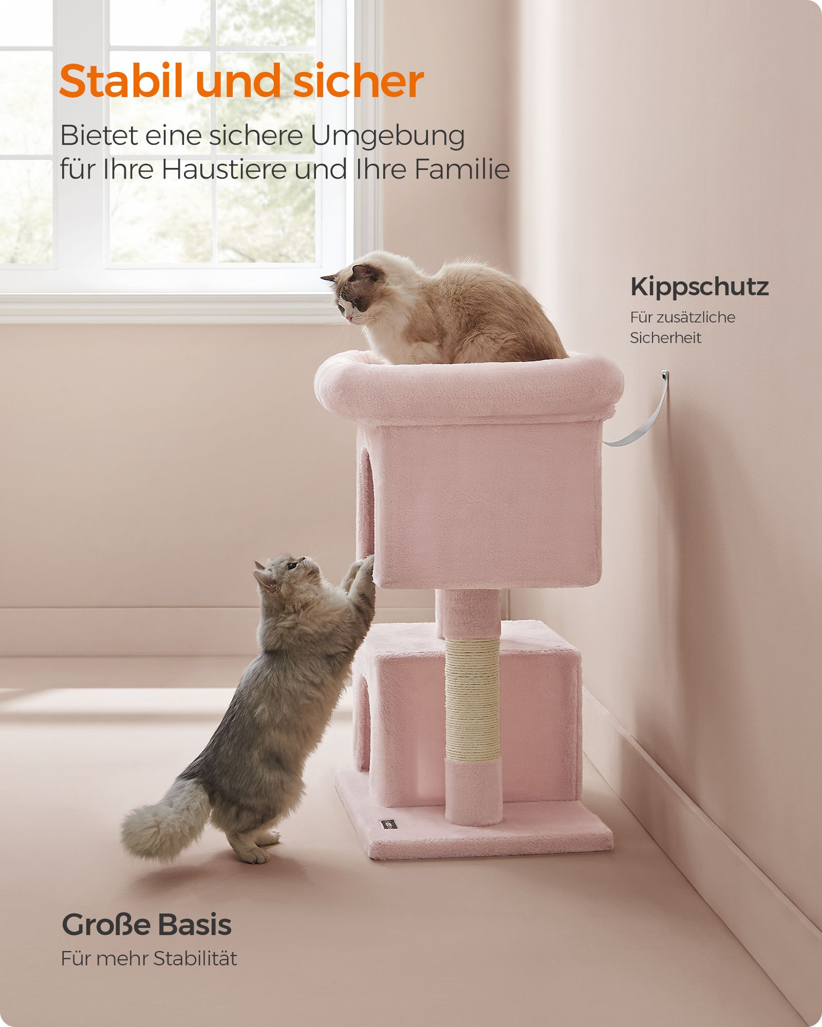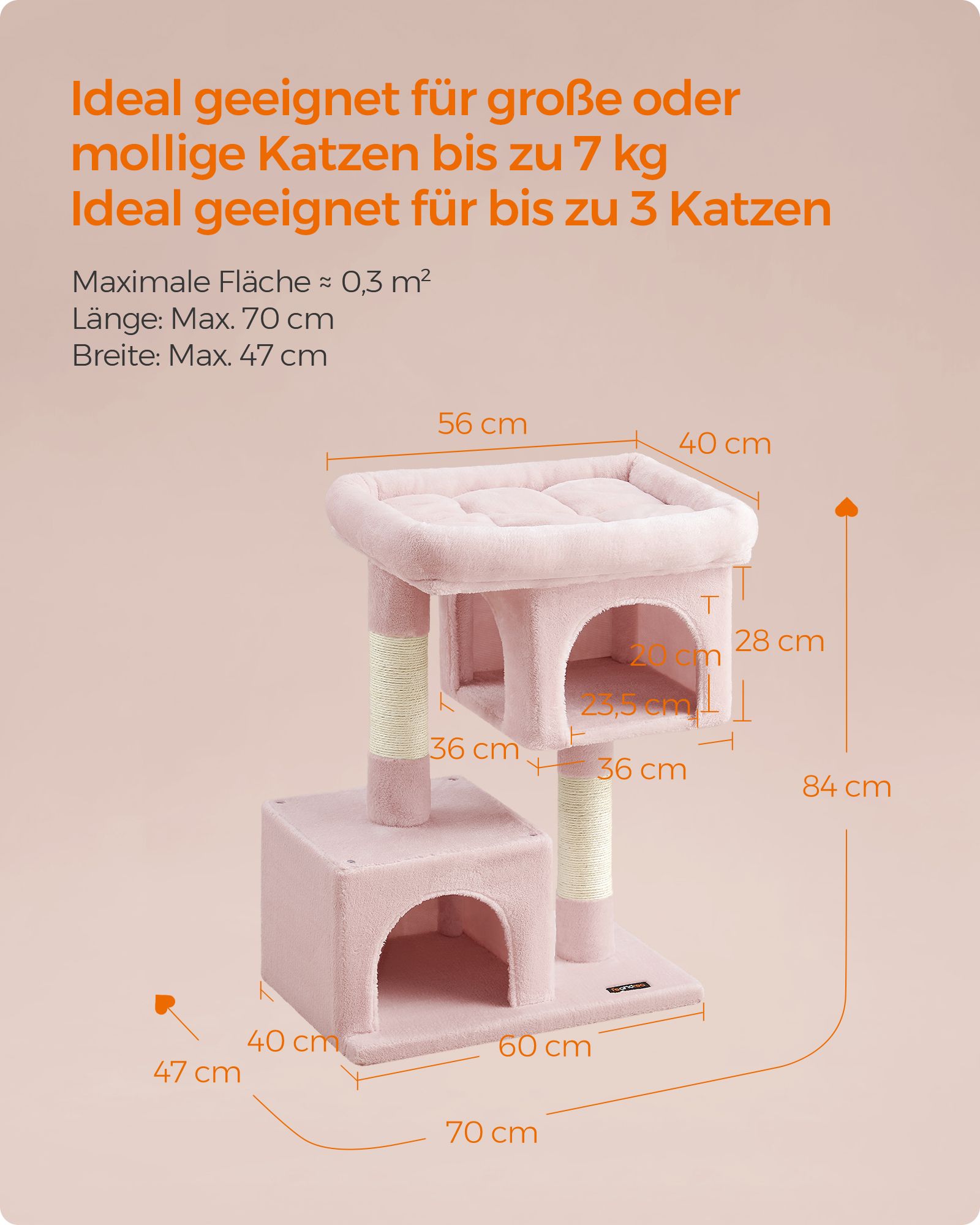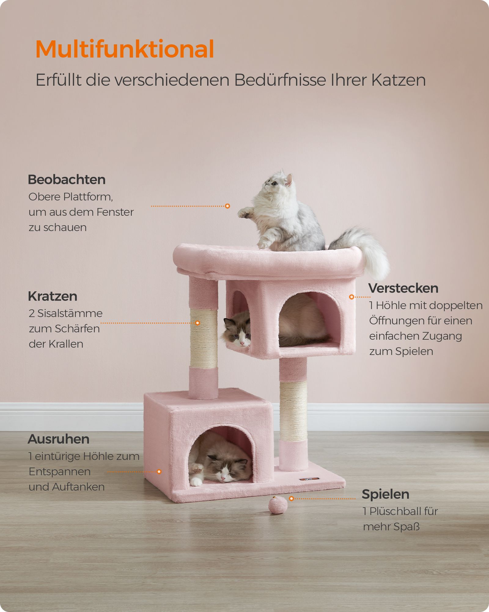 Feandrea Kradsetr?, Kattetr? med stor platform og 2 plysgrotter, Legehus, Klatretr? til katte, lysegr? PCT61W