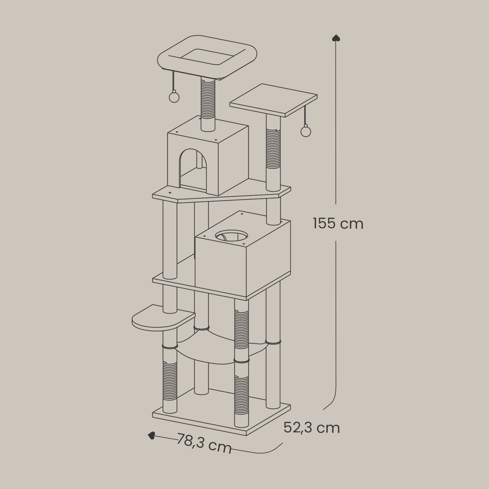 Kradsetr?, 155 cm Kattetr?, plys, flere niveauer, kradsetr? til katte, beige