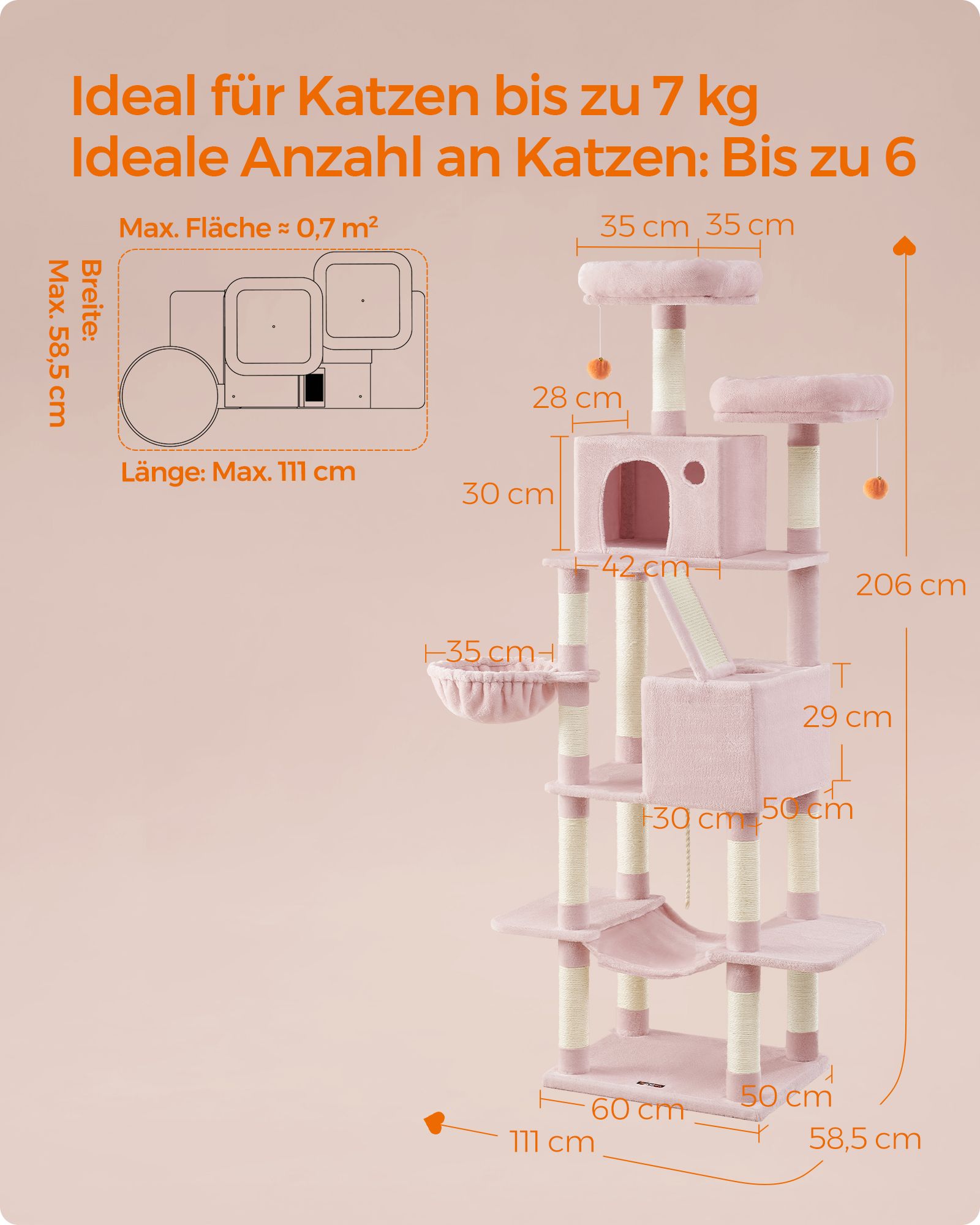 Feandrea Kratzbaum, h?j, XL-kattetr?, 206 cm, r?ggr? PCT190G01