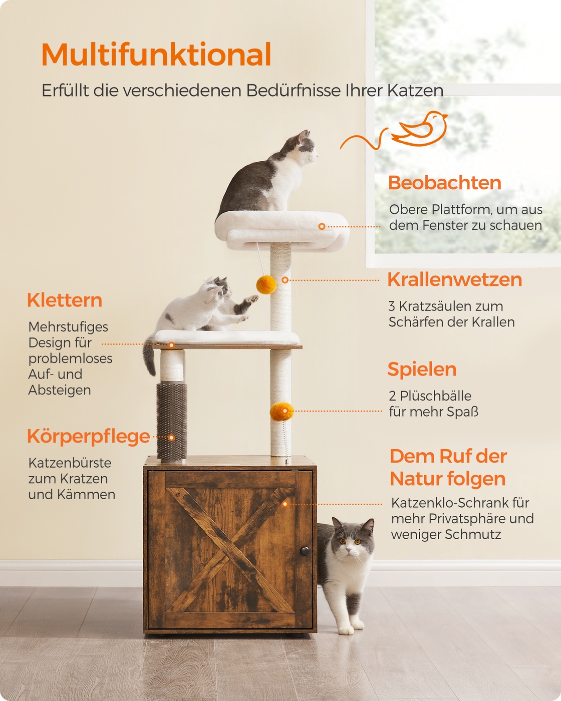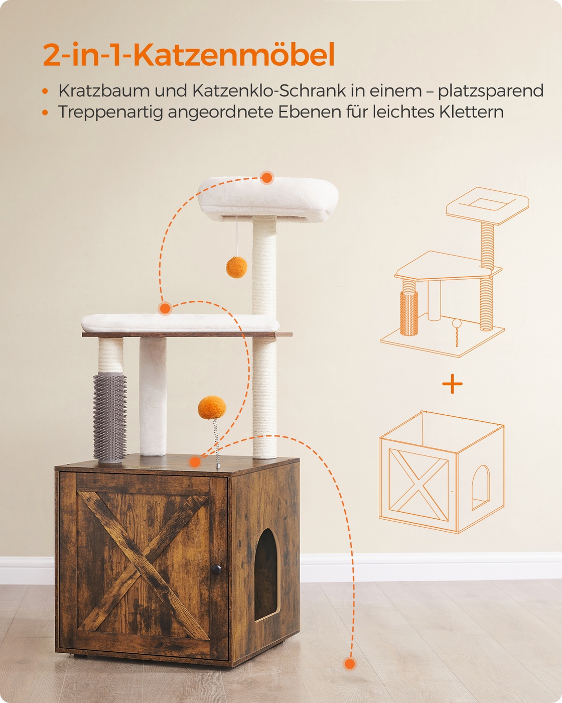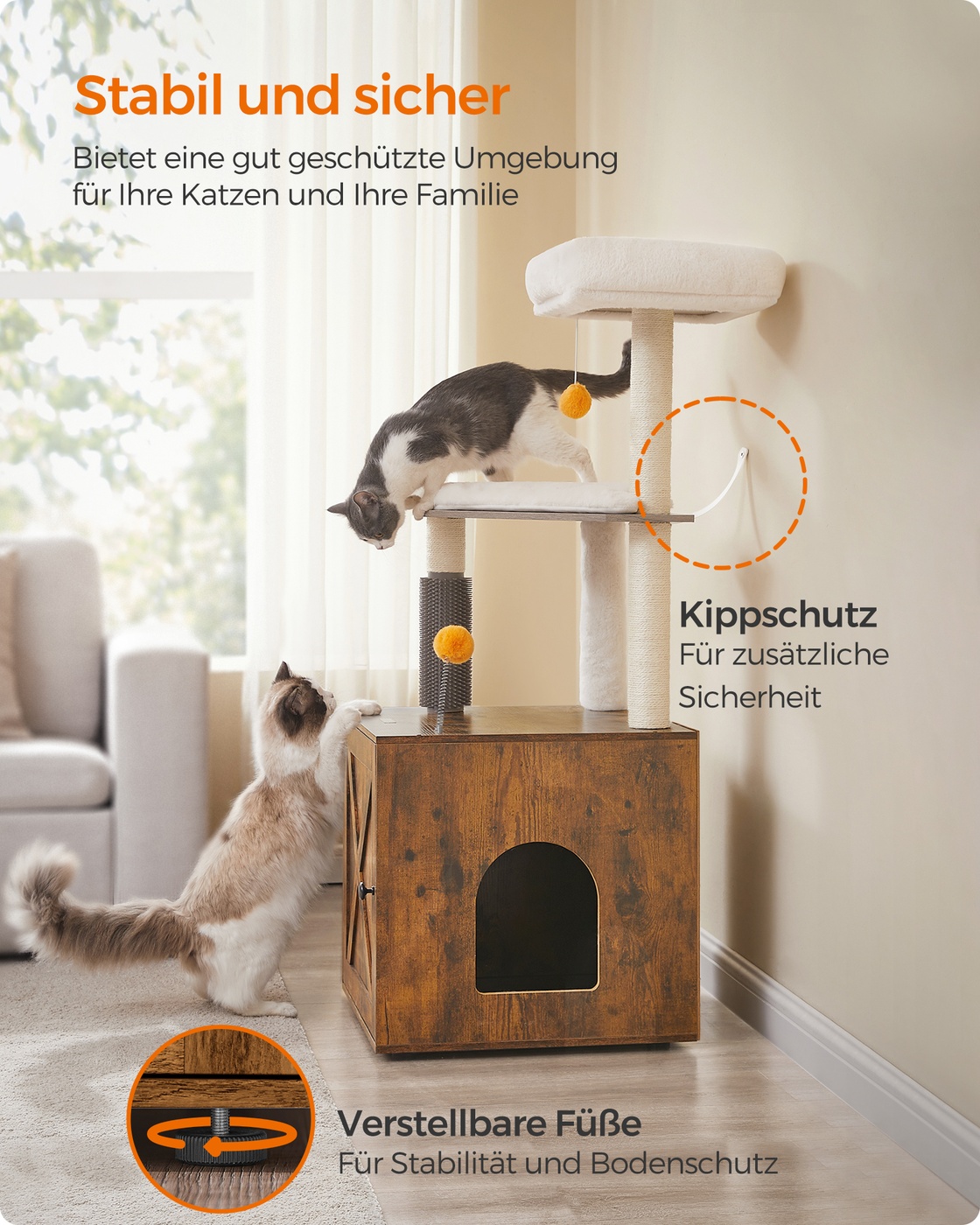 Feandrea WoodyWonders kradsetr? med kattebakke, 2-i-1 moderne kattedyr, 134 cm, med Croomer, kradses?jler, platform, vaskbare puder, greige PCT115G01