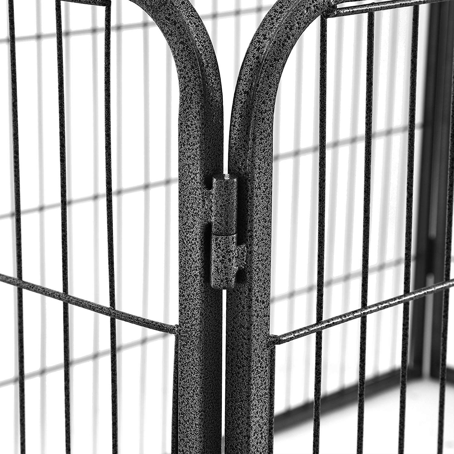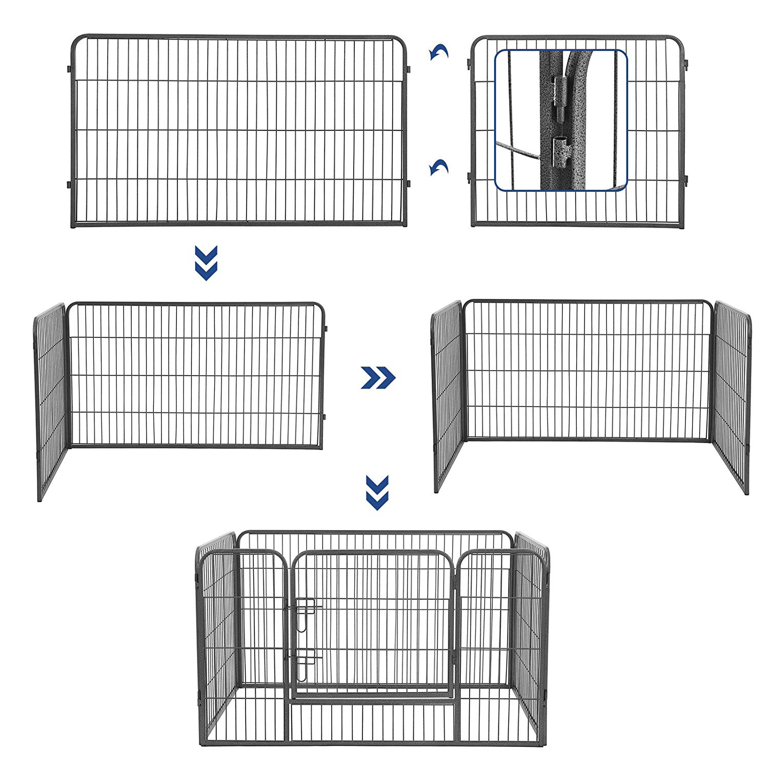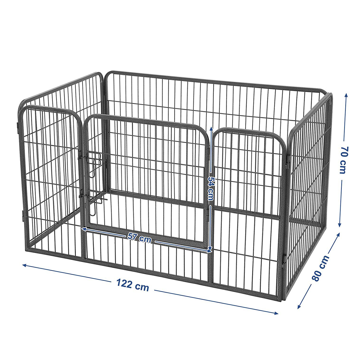 K?ledyr skal altid f?le sig trygge og komfortable, is?r n?r de flytter ind i et nyt hjem. Denne udend?rs indhegning fra FEANDREA giver dit k?ledyr en f?lelse af tryghed og forhindrer det samtidig i at gnave p? dine m?bler eller sko, n?r du er ude af huset. “Mit personlige VIP-omr?de” Denne bur best?r af kun 4 gitterelementer og er nem at samle og folde sammen. S? kan du nemt flytte den fra stuen til haven eller l?gge den fladt i bagagerummet, n?r du vil rejse med dit k?ledyr. I denne l?beg?rd vil din firbenede ven f?le sig hjemme overalt. En f?lelse af frihed og sikkerhed Med stabile metalst?nger, afrundede hj?rner og kanter, gennemsigtige gitterelementer og en d?r med L-formet l?s giver denne l?beg?rd din lille ven en sikker legeplads. S? kan du roligt forlade rummet eller se din s?de pelsbold lege. Produktdetaljer: – Farve: Gr? – Materiale: Metal – Samlet st?rrelse: 122 x 80 x 70 cm (L x B x H) – St?rrelse p? stort bur: 120 x 70 cm (L x H) – St?rrelse p? lille bur: 75 x 70 cm (L x H) – St?rrelse p? d?r: 57 x 54 cm (L x H) – Maskevidde: Ca. 4,2 x 14 cm – V?gt: 11 kg Leveringsomfang: – 1 x udend?rs bur – 1 x vejledning FEANDREA Bem?rkninger: – M?l dit k?ledyr, inden du bestiller dette produkt, for at undg? at k?be en burst?rrelse, der ikke passer. – Dette produkt er ikke et leget?j. Lad ikke b?rn bruge det som leget?j. – Placer produktet p? et plant underlag. – Hvis du har brug for en st?rre st?rrelse, kan du bestille to eller flere af dette produkt.