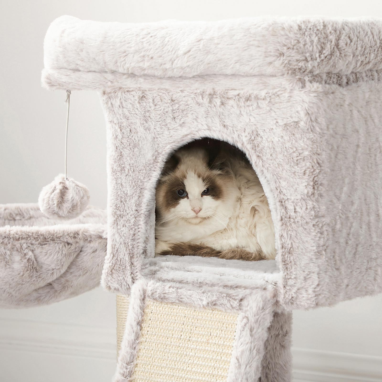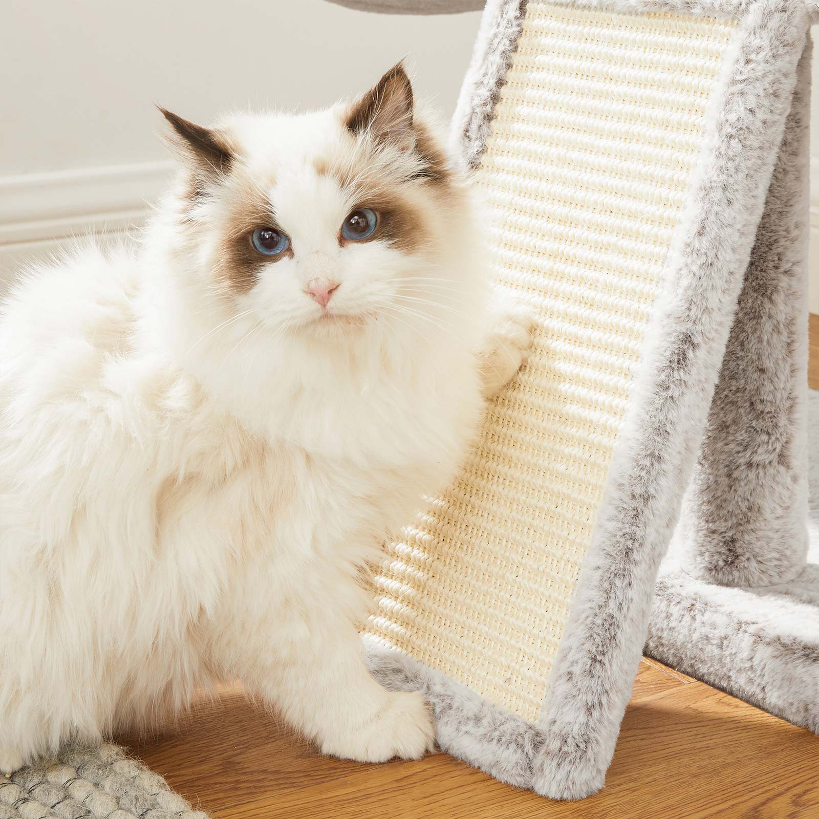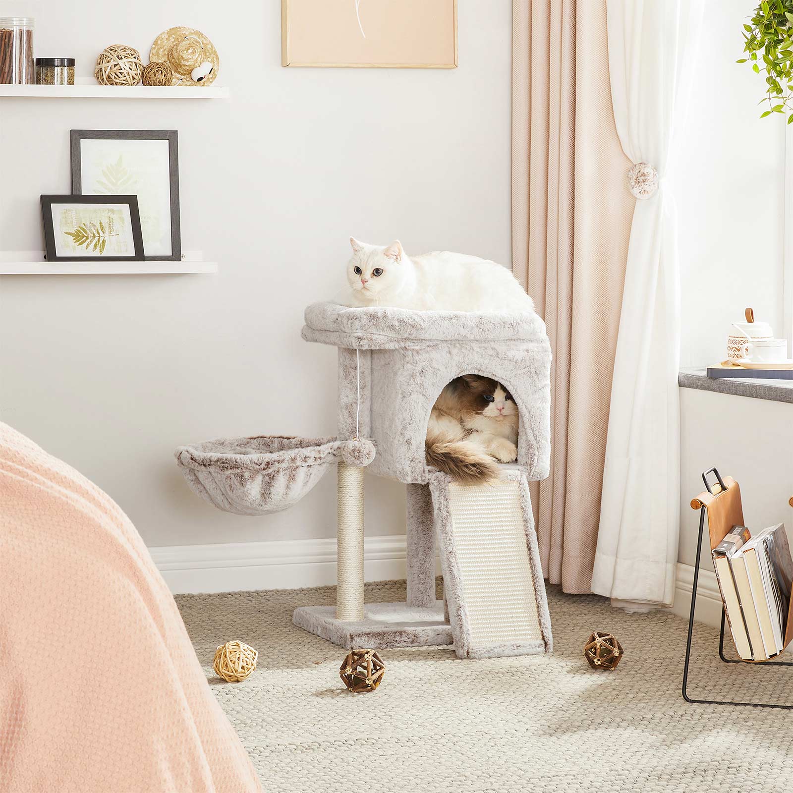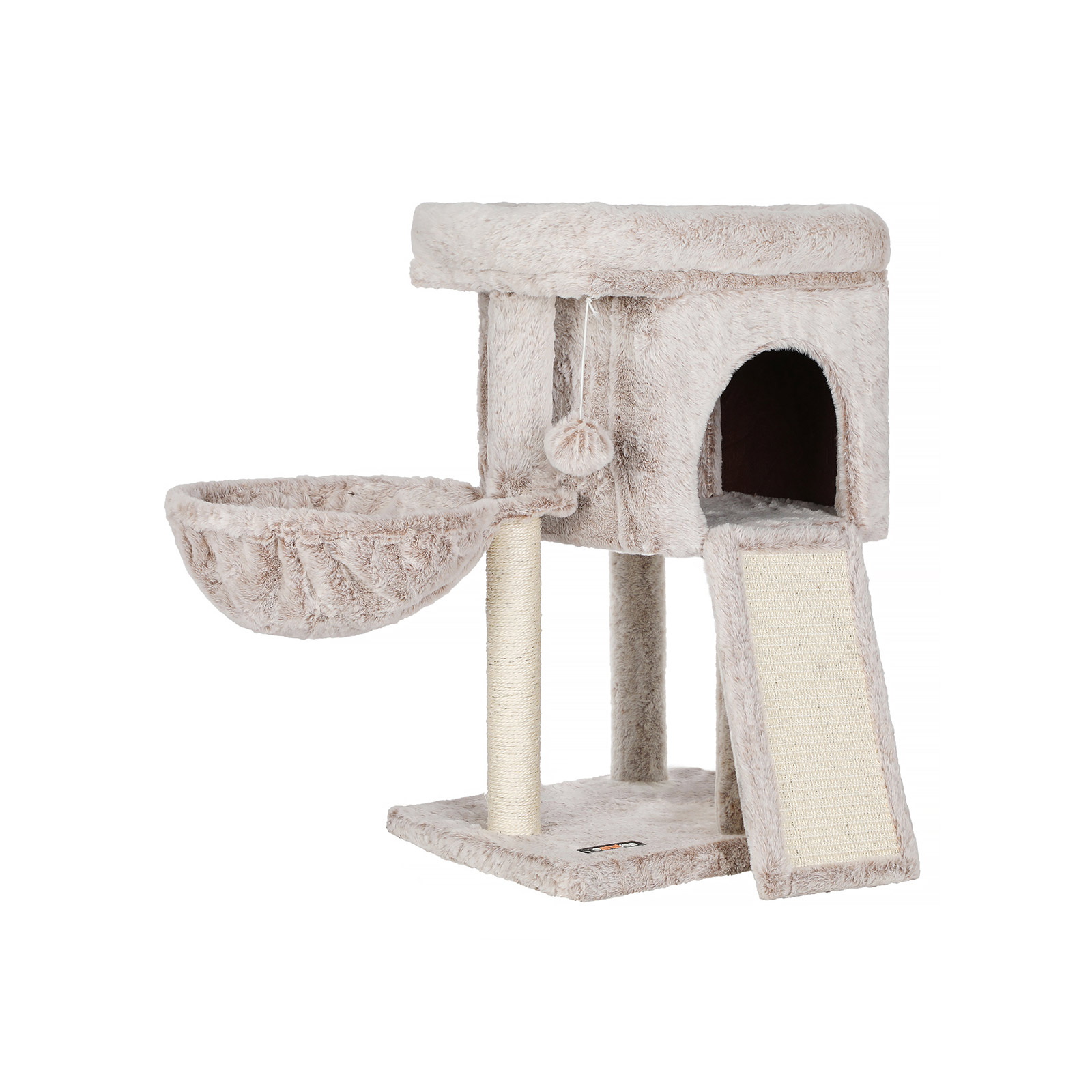 I FEANDREAs kreative v?rksteder springer to s?de killinger rundt, som personligt unders?ger alle kradsetr?er og giver deres dyriske feedback. P? den m?de f?r FEANDREAs designere f?rsteh?nds- eller rettere sagt f?rste-pote-information om, hvorvidt produkterne lever op til de fork?lede snorh?rede dyrs krav.Dette klatrestativs h?jdepunkter p? et ?jeblik:Modstandsdygtig og bl?d plysbetr?k1 XXL klatrestativ til at slibe kl?erne p?1 behagelig hyggelig hule til at gemme sig i1 stabil liggeplads til lur1 godt polstret udsigtsplatform til at observere fra1 pelsbold for ekstra sjovProduktdetaljer:Farve: Lys brun Materiale: Sp?nplade, plys, sisal St?rrelse: 43 x 33 x 66 cm (L x B x H) V?gt: 6,5 kg Leveringsomfang: 1 x kradsetr? 1 x v?ltesikring 1 x tilbeh?rspakke 1 x vejledning (DE, EN, FR, ES, IT) FEANDREA Bem?rkninger:Hvis dine katte tygger p? pelsbolden eller elastikken, skal du straks fjerne leget?jet og opbevare det et sted, hvor din kat ikke kan komme til det. Hvis kattehulen bliver beskadiget, skal du reparere eller udskifte den i tide for at undg? skader fra beskadigede dele.Fastg?r dette produkt til v?ggen med den medf?lgende v?gbeskyttelse for at sikre sikker brug.