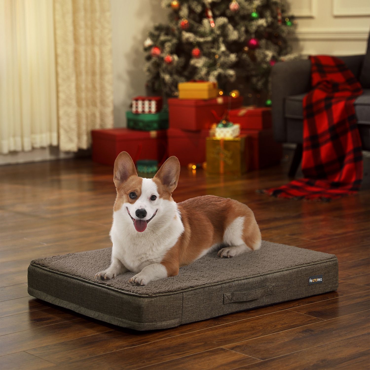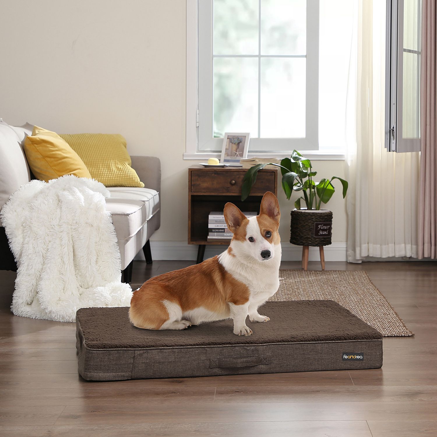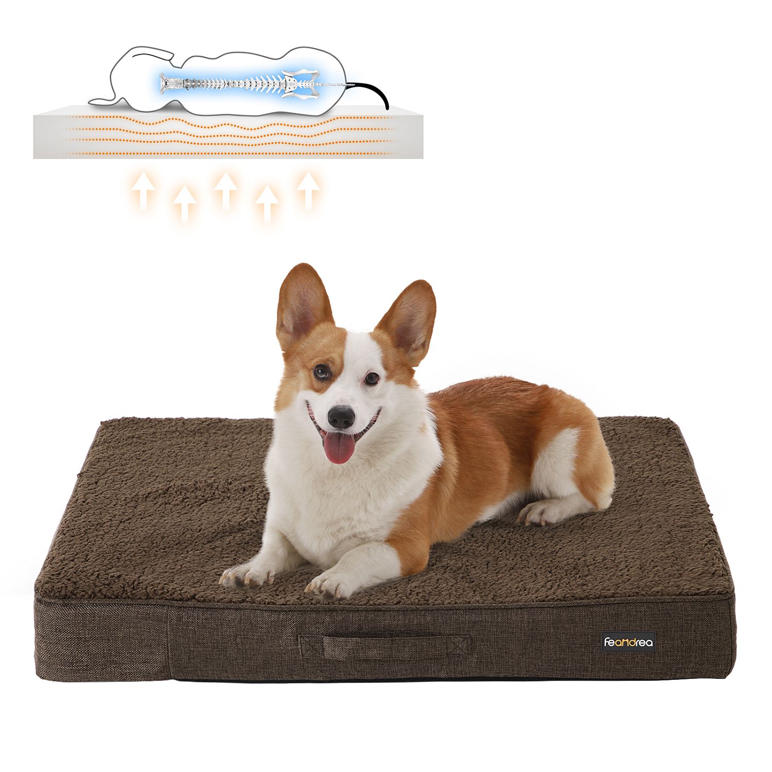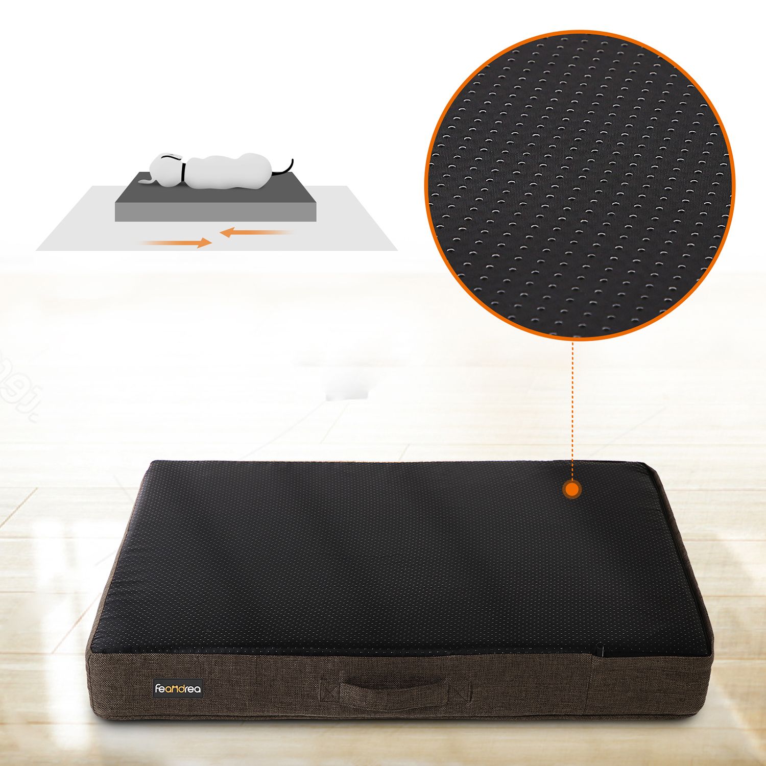 Kvalitet eller stil? Med denne dyreseng er det ikke et sp?rgsm?l, for den forener begge dele. Det robuste bomulds-polyester-blandingsmateriale p? ydersiden kan modst? selv de h?rdeste poteslag, og det elegante sorte stof g?r hundesofaen til et stilfuldt m?bel. Det lyse vendepude af PV-fleece bidrager ogs? til dette, da det danner en effektfuld kontrast til det sorte yderstof. Et sted med tryghed Takket v?re de forh?jede kanter p? denne hundekurv f?ler din firbenede ven sig godt beskyttet. Is?r tr?k og kulde fra gulvet holdes ude takket v?re de h?je sider og den fremragende polstring. Mangler din hund stadig en hyggelig seng? – S? giv ham denne hundekurv til dyr op til 8 kg. Produktdetaljer: – Farve: Sort – Materiale: Blandet stof (bomuld, polyester), PV-fleece, polypropylen-fyld – Ydre m?l: 55 x 50 x 20 cm (L x B x H) – Indre m?l: 33 x 32 cm – Nettov?gt: 1,3 kg Leveringsomfang: – 1 x hundeseng FEANDREA Bem?rkninger: – Uds?t ikke produktet for direkte sollys, og placer det ikke i et fugtigt milj?. – Produktet m? ikke komme i kontakt med skarpe genstande.- Det anbefales at vaske dette produkt i h?nden. – Hundesengen er ikke et tyggeleget?j til dine firbenede venner; undg?, at din hund bider i sengen. – P? grund af s?mrummet kan produkter af denne type afvige op til 3 cm fra de angivne m?l. – Brug ikke dette produkt i n?rheden af varmekilder over 40 ?C. Hvis der er gulvvarme, skal du bruge en ekstra underlag.