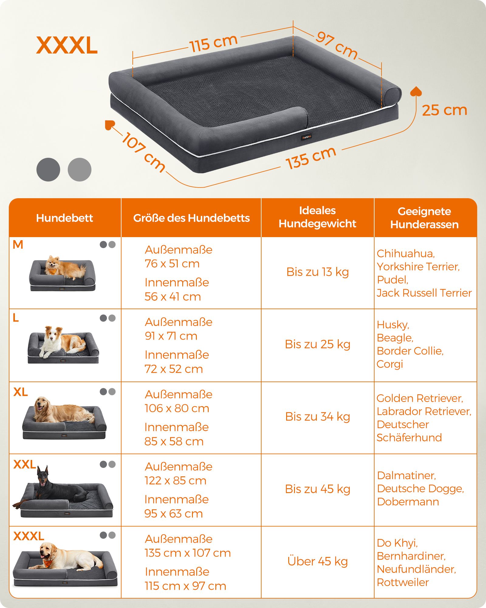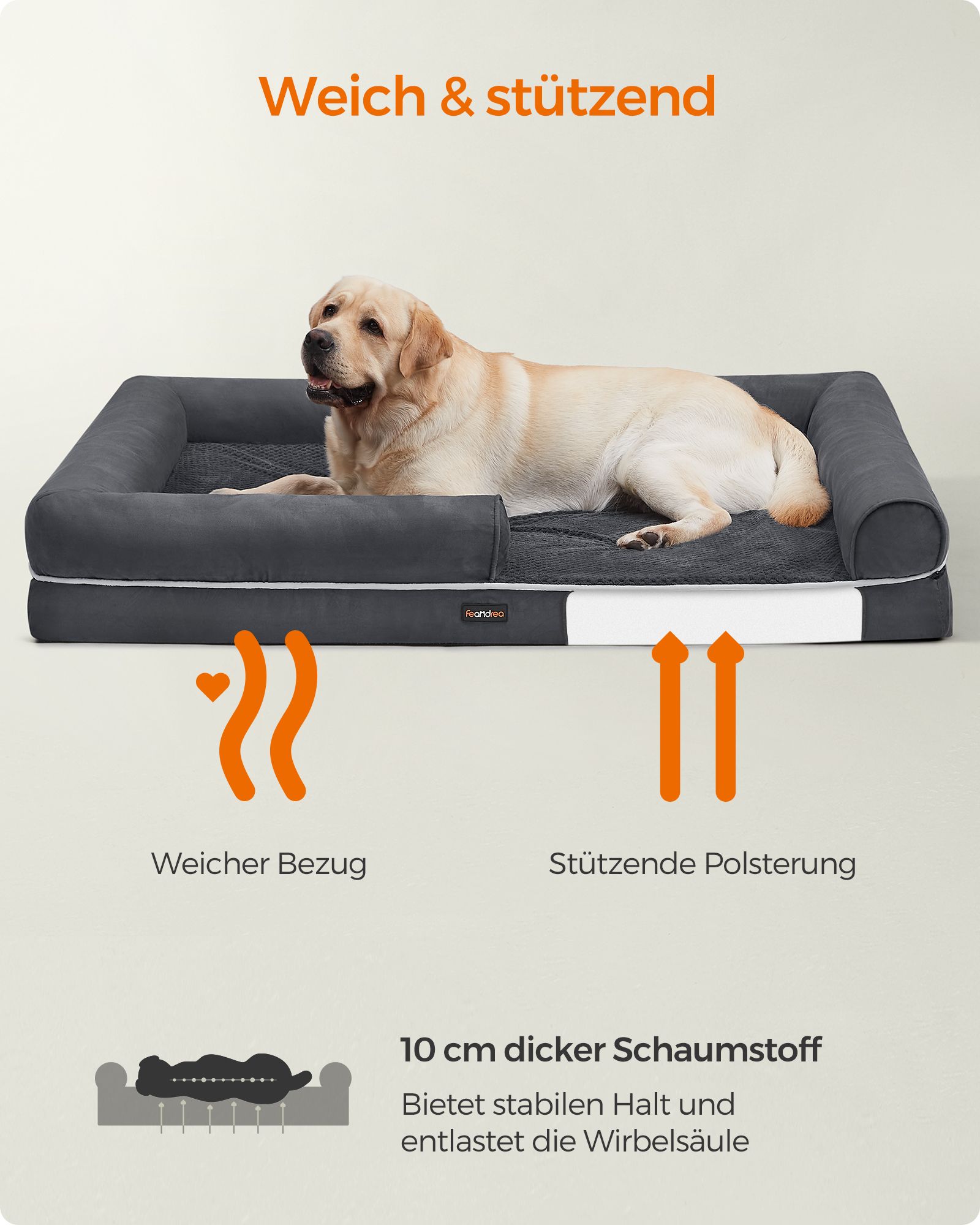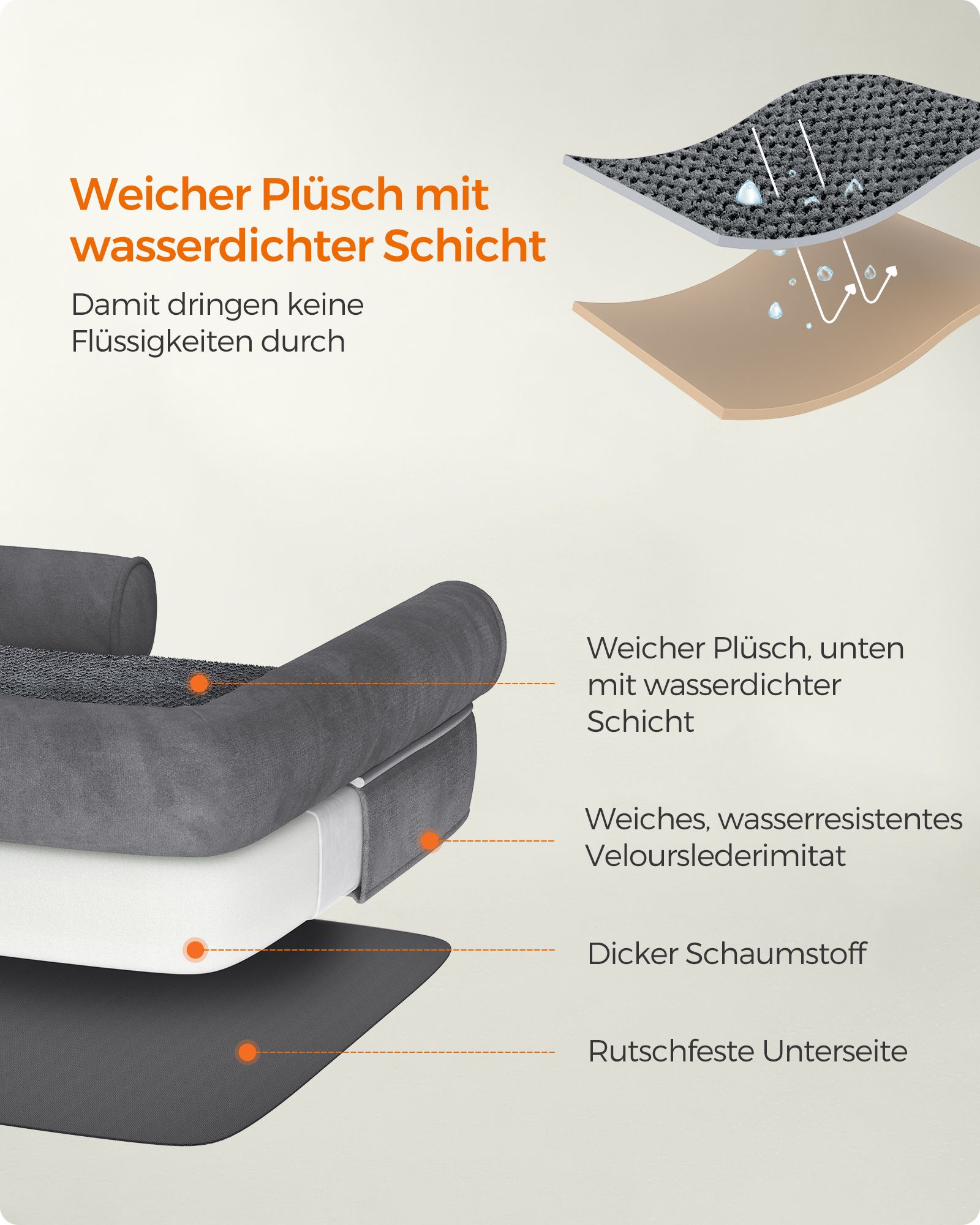 Feandrea ortop?disk hundeseng, hundepude, hundekurv, bl?dt polstring, hundesofa, forh?jede kanter, betr?k aftageligt og vaskbart, 91 x 71 x 25 cm, skridsikker underside, lysegr? PGW076G02