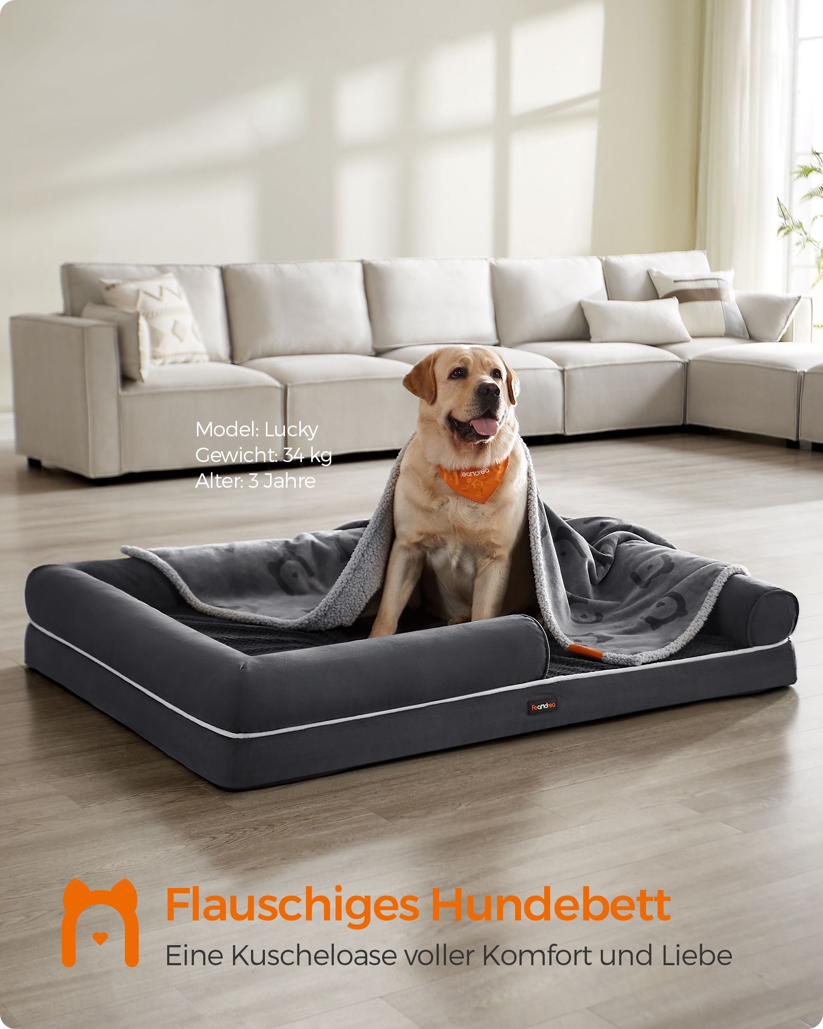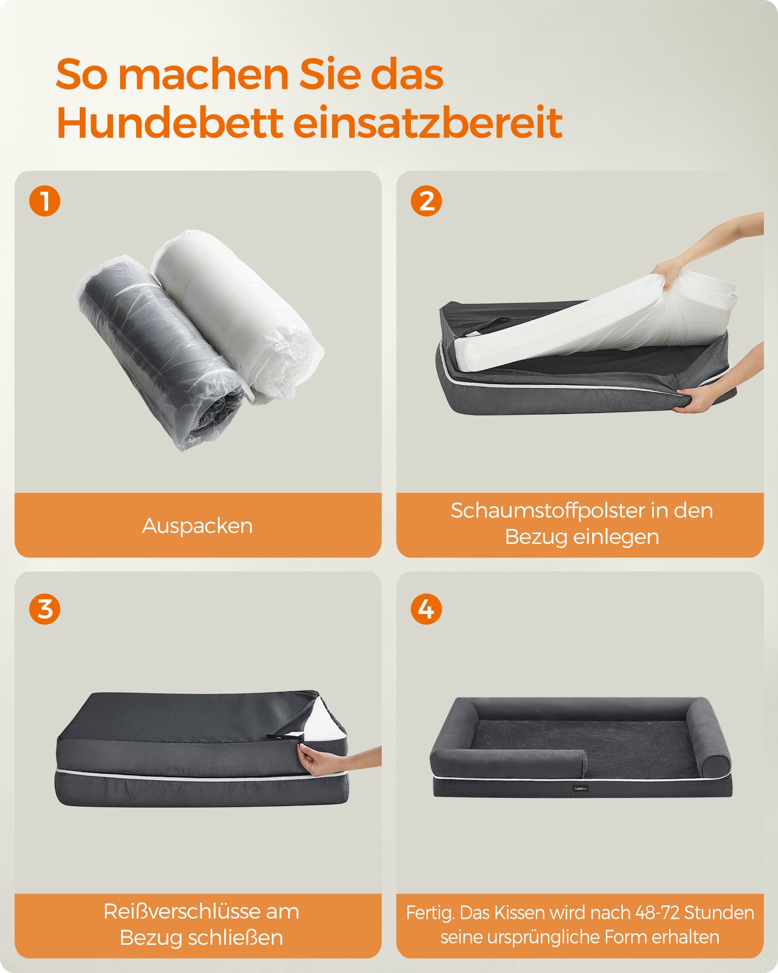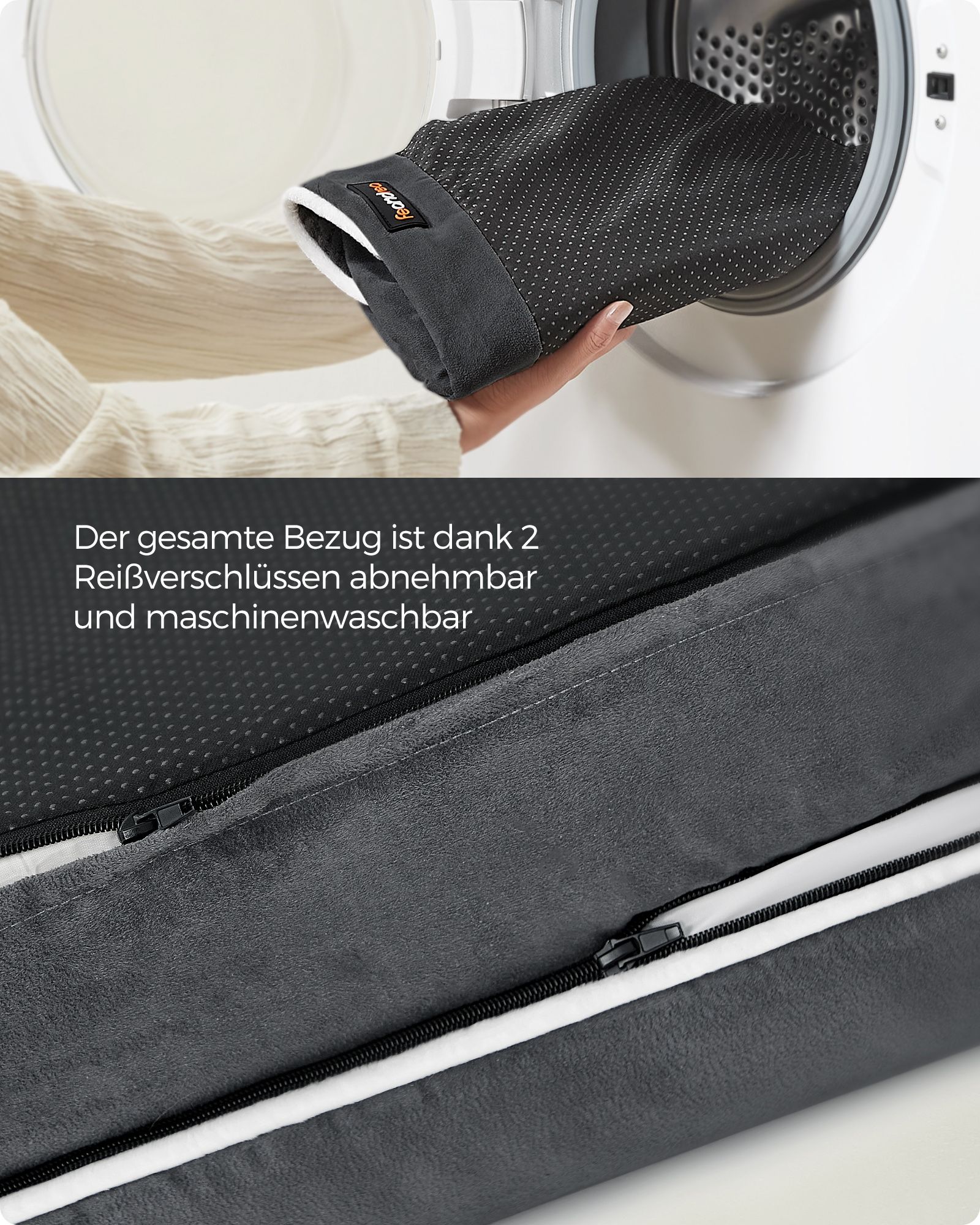 Feandrea ortop?disk hundeseng, hundepude, hundekurv, bl?dt polstring, hundesofa, forh?jede kanter, betr?k aftageligt og vaskbart, 91 x 71 x 25 cm, skridsikker underside, lysegr? PGW076G02