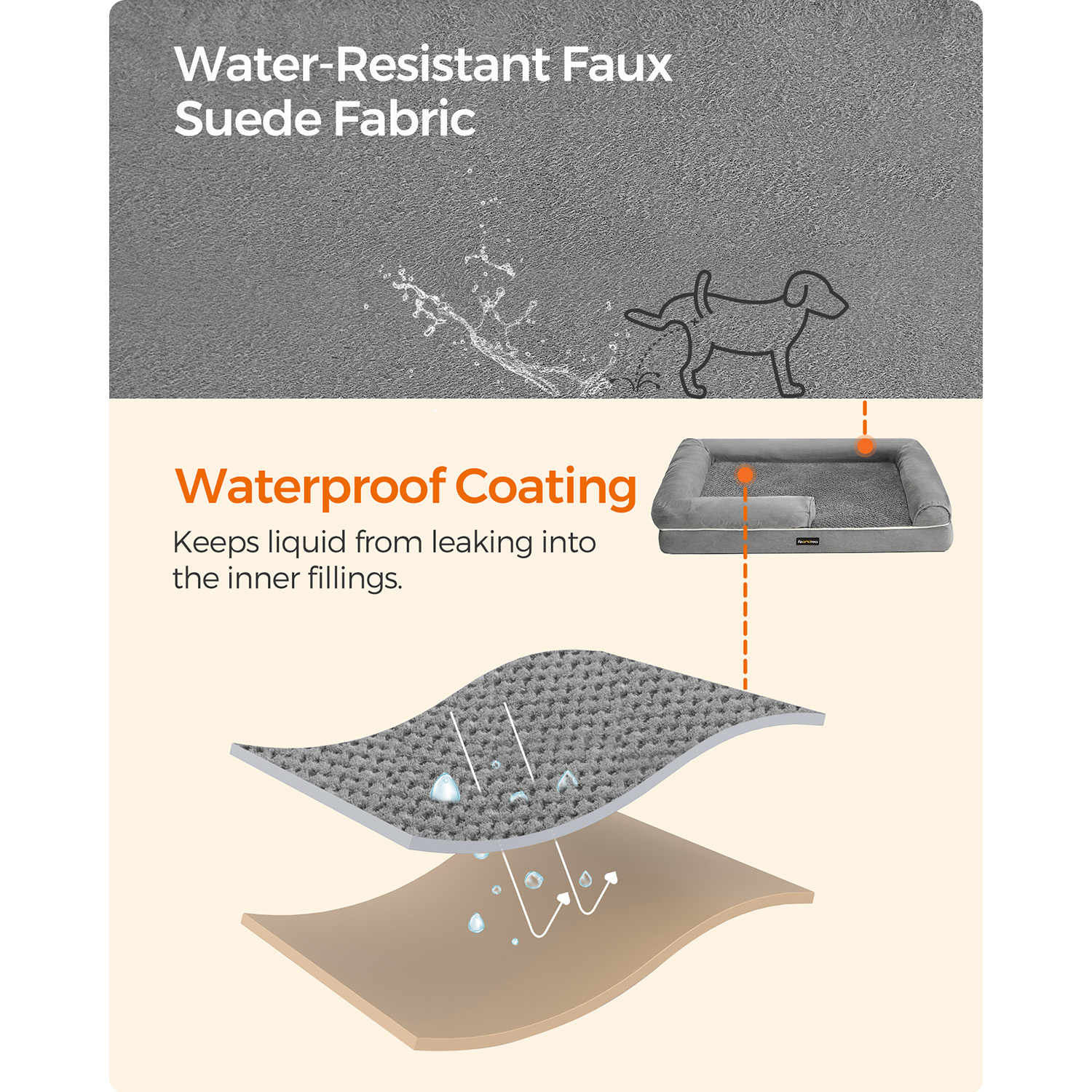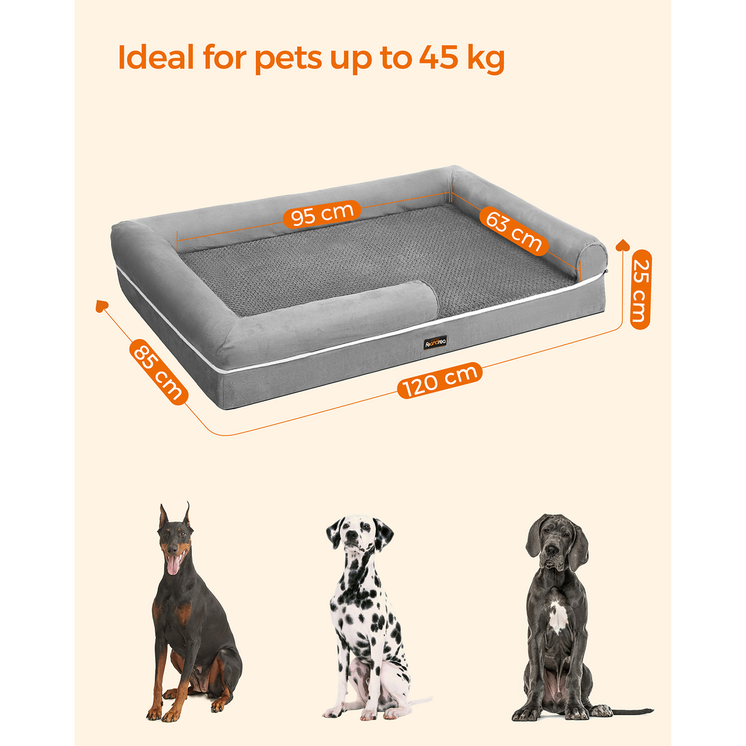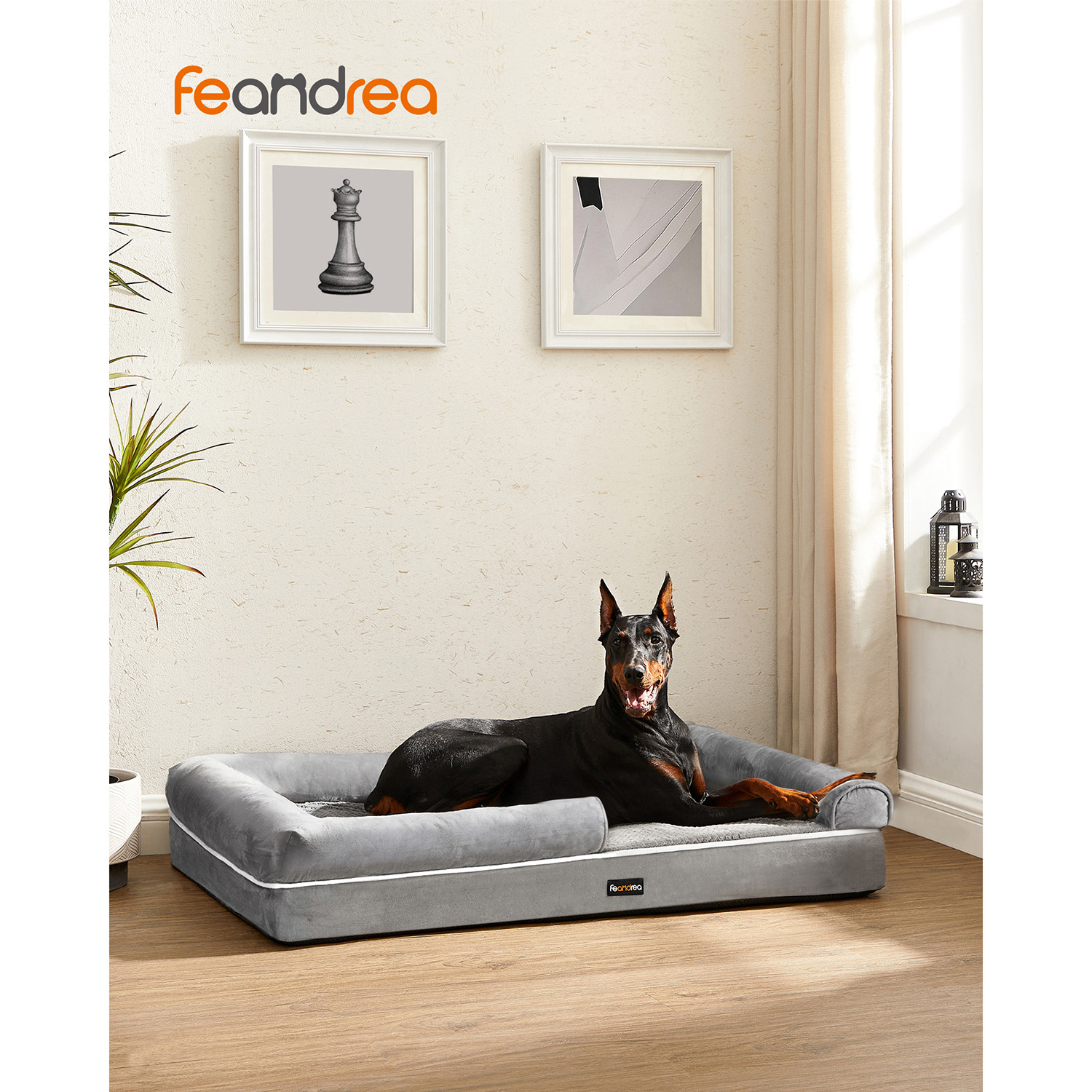 Produktdetaljer: Farve: Lysegr? Materiale: Plys med TPU-bel?gning, imiteret ruskind med PU-bel?gning, PP-polstring, skumplast St?rrelse: 120 x 85 x 25 cm (L x B x H) V?gt: 4,8 kg Leveringsomfang: 1 x hundeseng FEANDREA Bem?rkninger:Dette produkt leveres i en vakuumpakke. Ryst det efter udpakning og lad det st? i 48-72 timer, s? det n?r sin fulde st?rrelse. Produkter med s?mme kan afvige 2-3 cm fra de angivne m?l. M?l din firbenede ven for at sikre, at denne hundeseng passer til dens st?rrelse. Hold produktet v?k fra varmekilder med en temperatur p? 40 ? og derover, s?som radiatorer. Hvis du bruger gulvvarme, skal du placere produktet p? t?ppet.