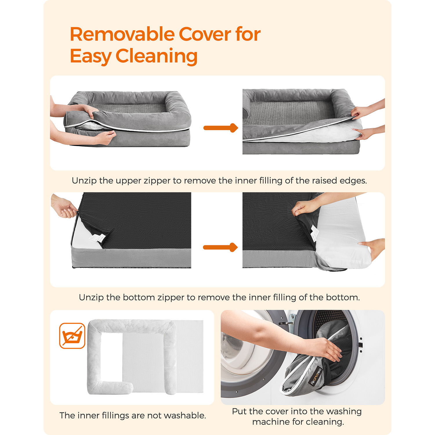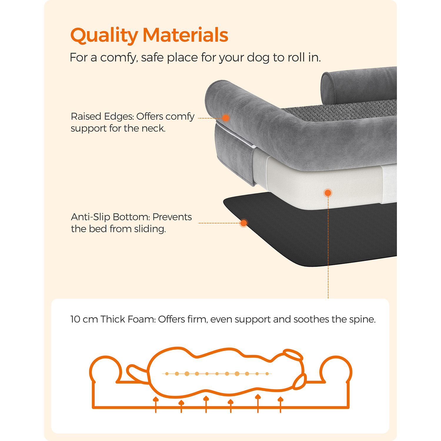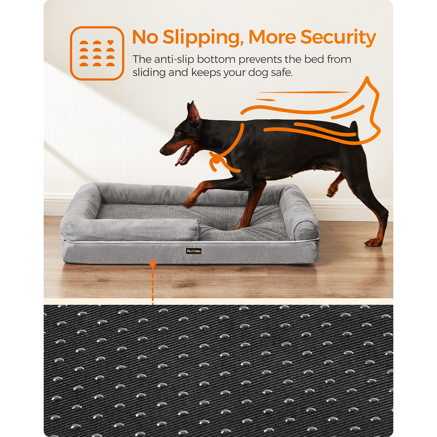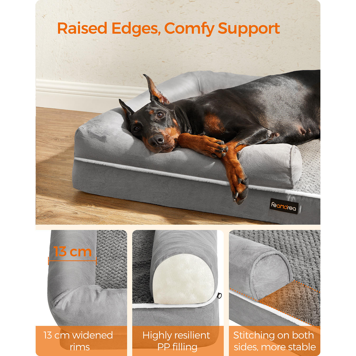 Produktdetaljer: Farve: Lysegr? Materiale: Plys med TPU-bel?gning, imiteret ruskind med PU-bel?gning, PP-polstring, skumplast St?rrelse: 120 x 85 x 25 cm (L x B x H) V?gt: 4,8 kg Leveringsomfang: 1 x hundeseng FEANDREA Bem?rkninger:Dette produkt leveres i en vakuumpakke. Ryst det efter udpakning og lad det st? i 48-72 timer, s? det n?r sin fulde st?rrelse. Produkter med s?mme kan afvige 2-3 cm fra de angivne m?l. M?l din firbenede ven for at sikre, at denne hundeseng passer til dens st?rrelse. Hold produktet v?k fra varmekilder med en temperatur p? 40 ? og derover, s?som radiatorer. Hvis du bruger gulvvarme, skal du placere produktet p? t?ppet.