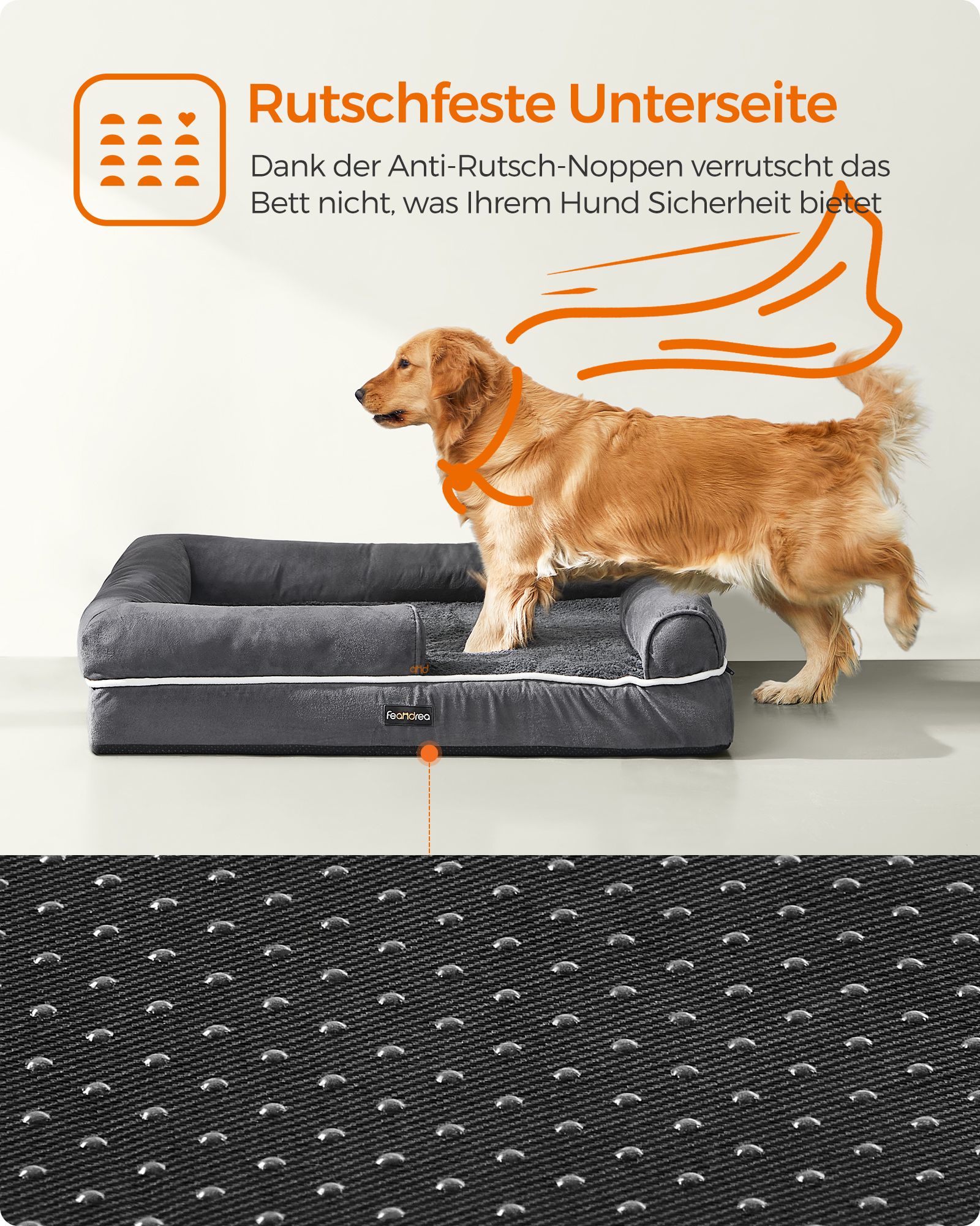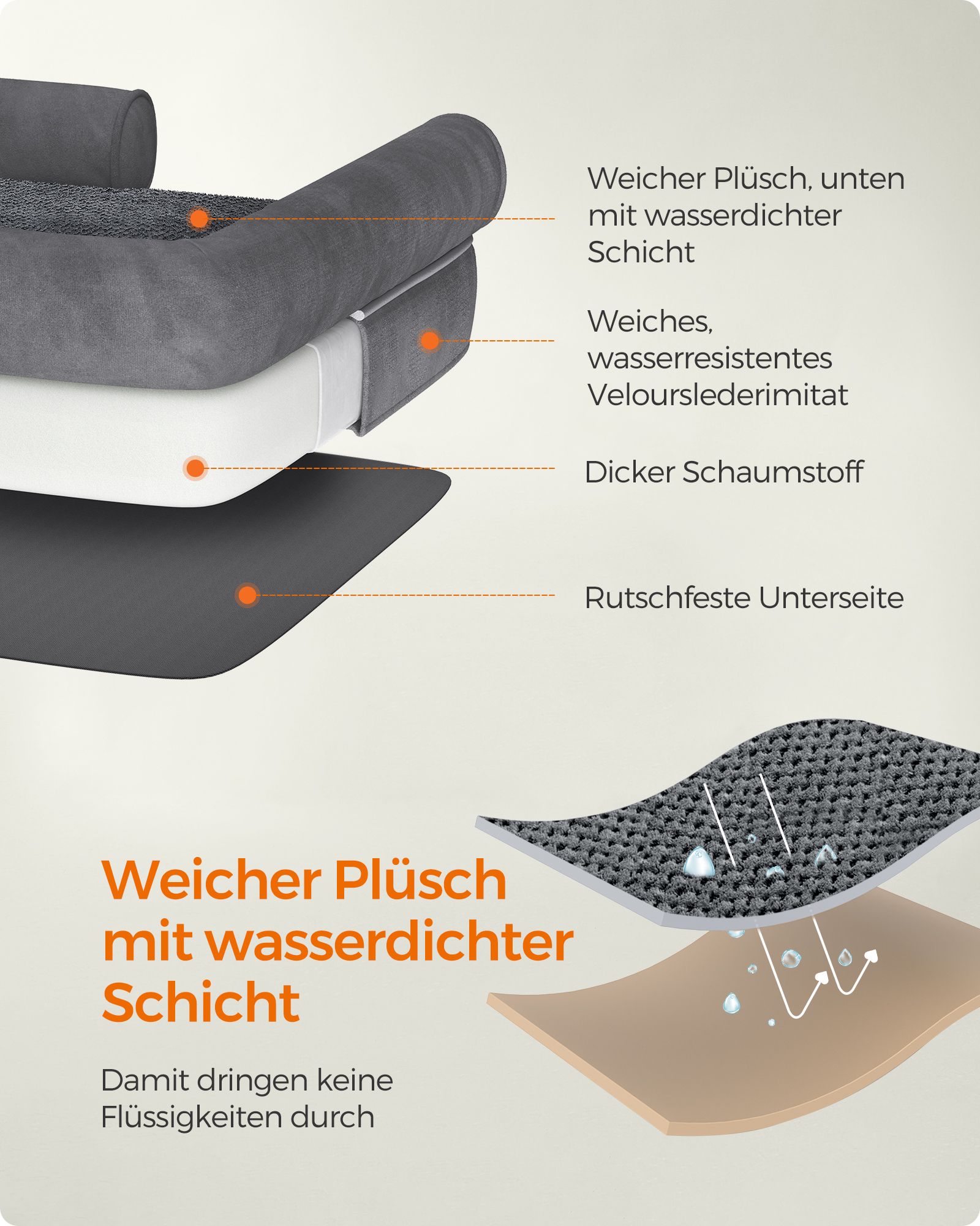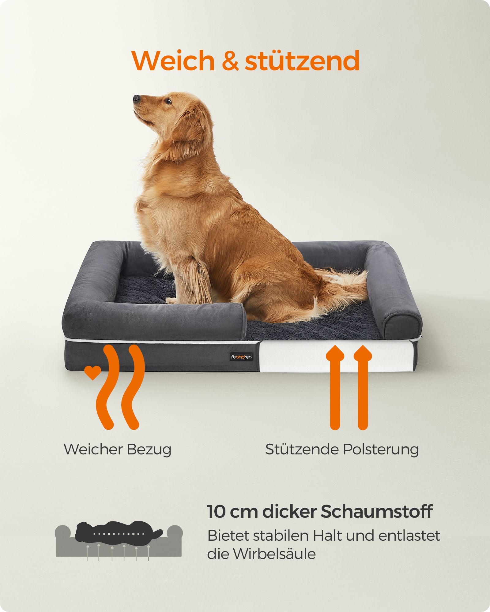 Feandrea ortop?disk hundeseng, hundepude, hundekurv, bl?dt polstring, hundesofa, forh?jede kanter, betr?k aftageligt og vaskbart, 91 x 71 x 25 cm, skridsikker underside, lysegr? PGW076G02