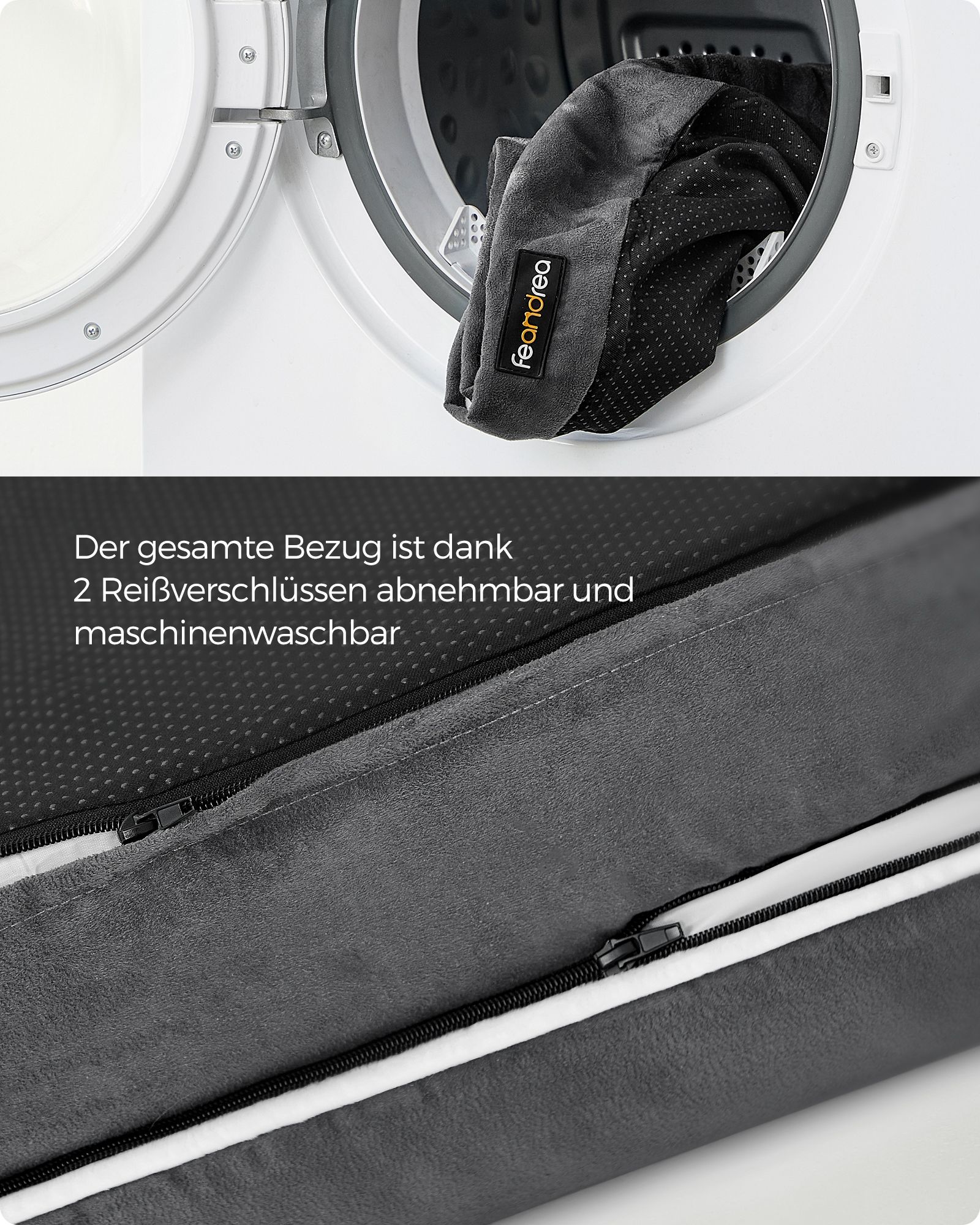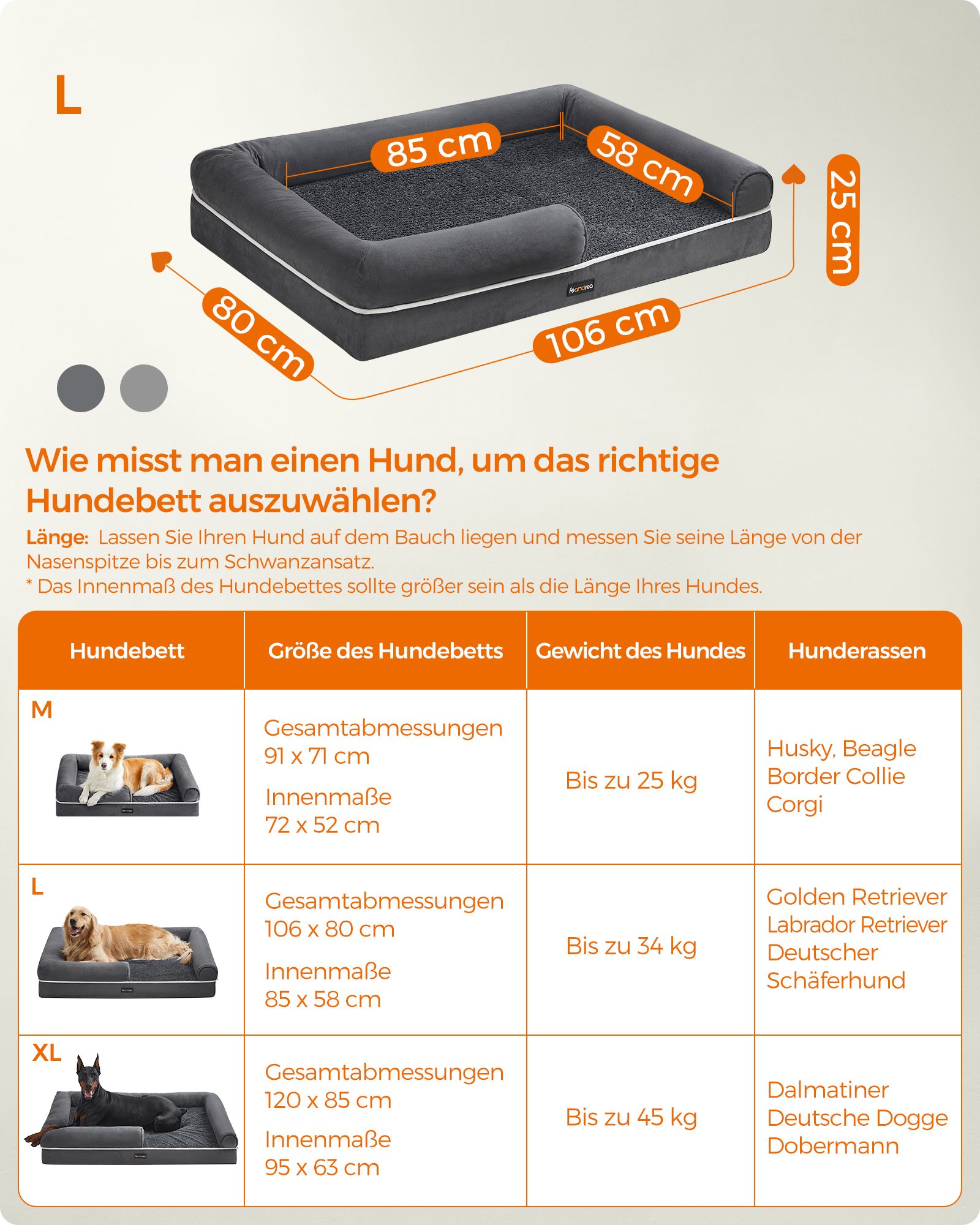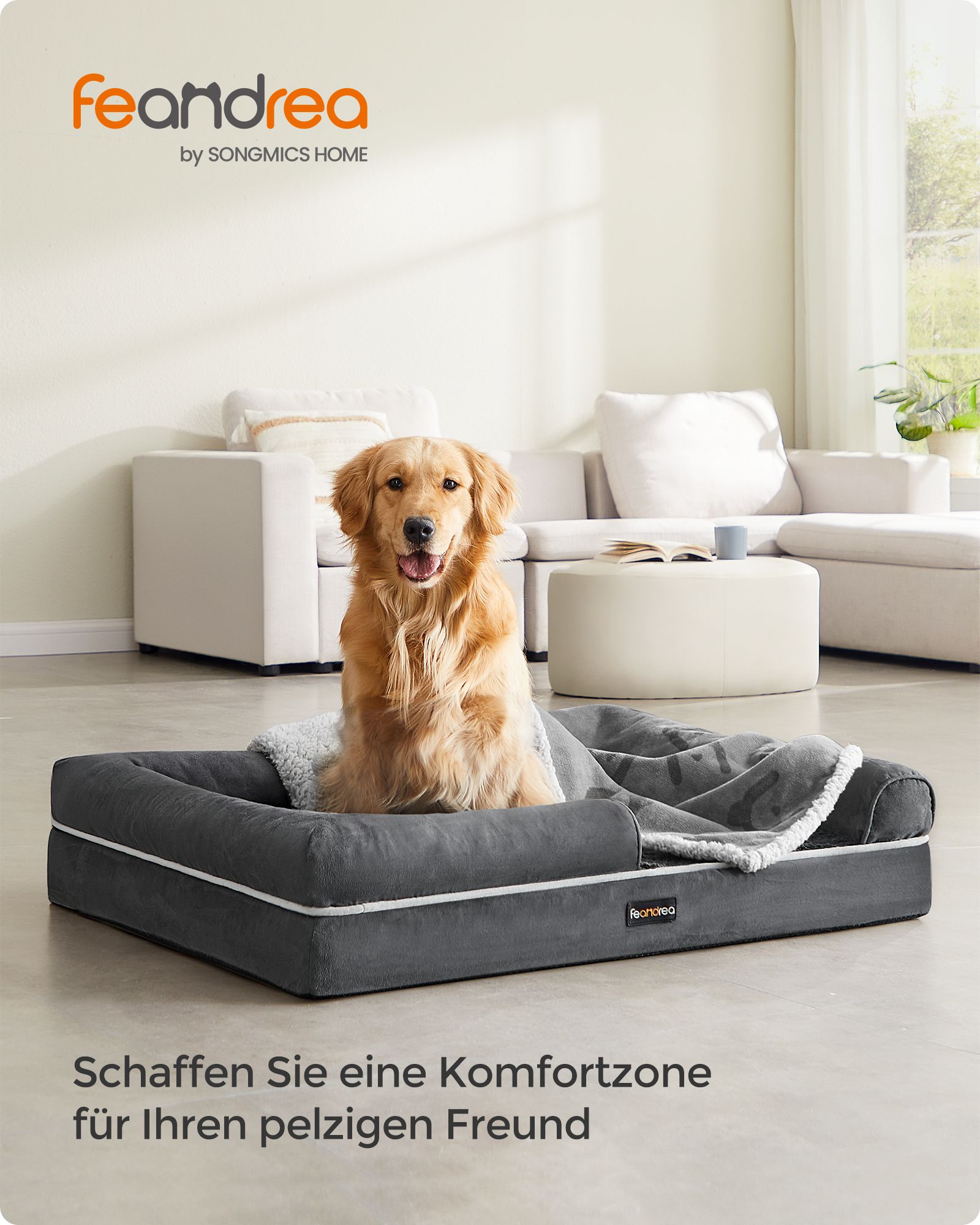 Feandrea ortop?disk hundeseng, hundepude, hundekurv, bl?dt polstring, hundesofa, forh?jede kanter, betr?k aftageligt og vaskbart, 91 x 71 x 25 cm, skridsikker underside, lysegr? PGW076G02