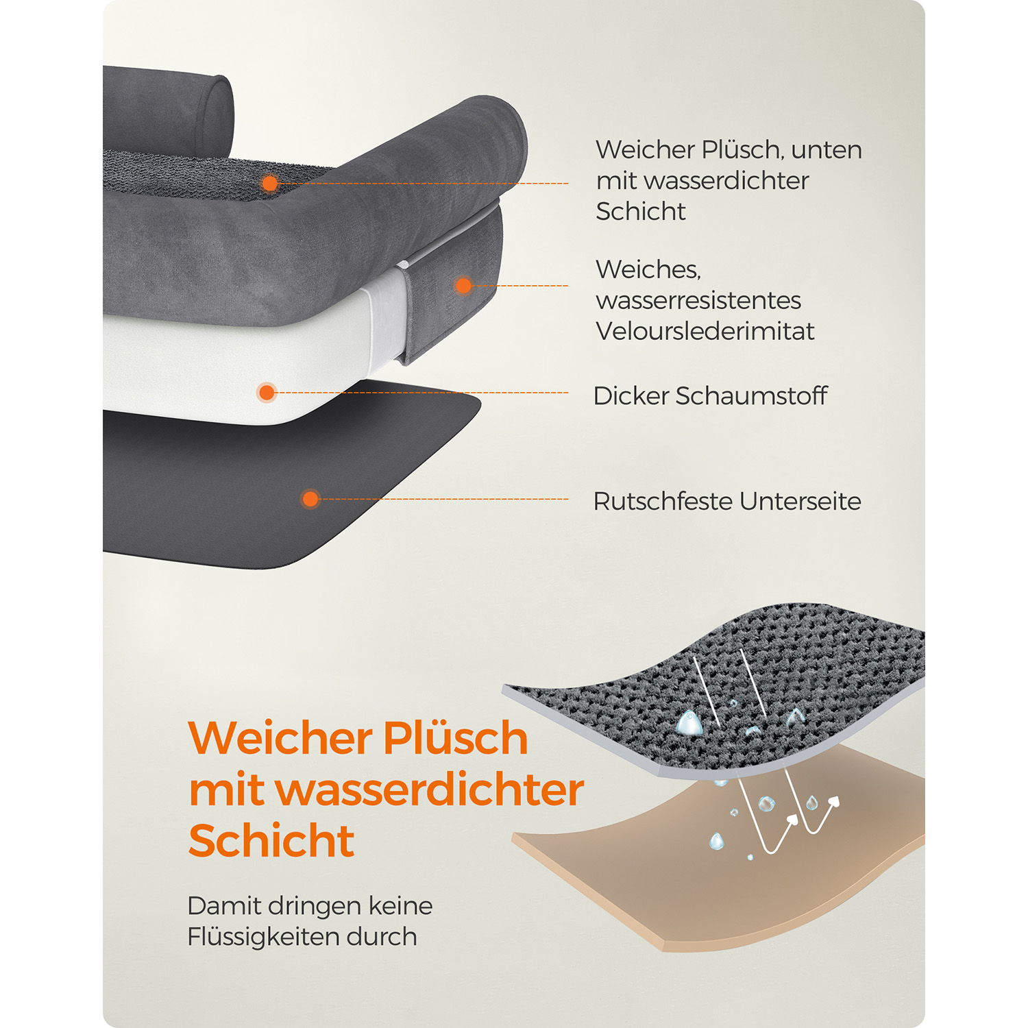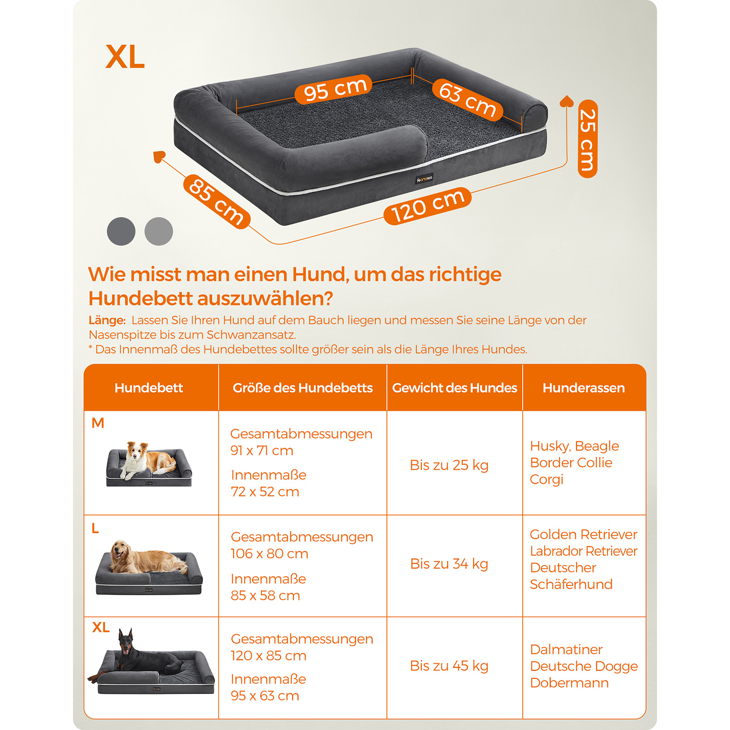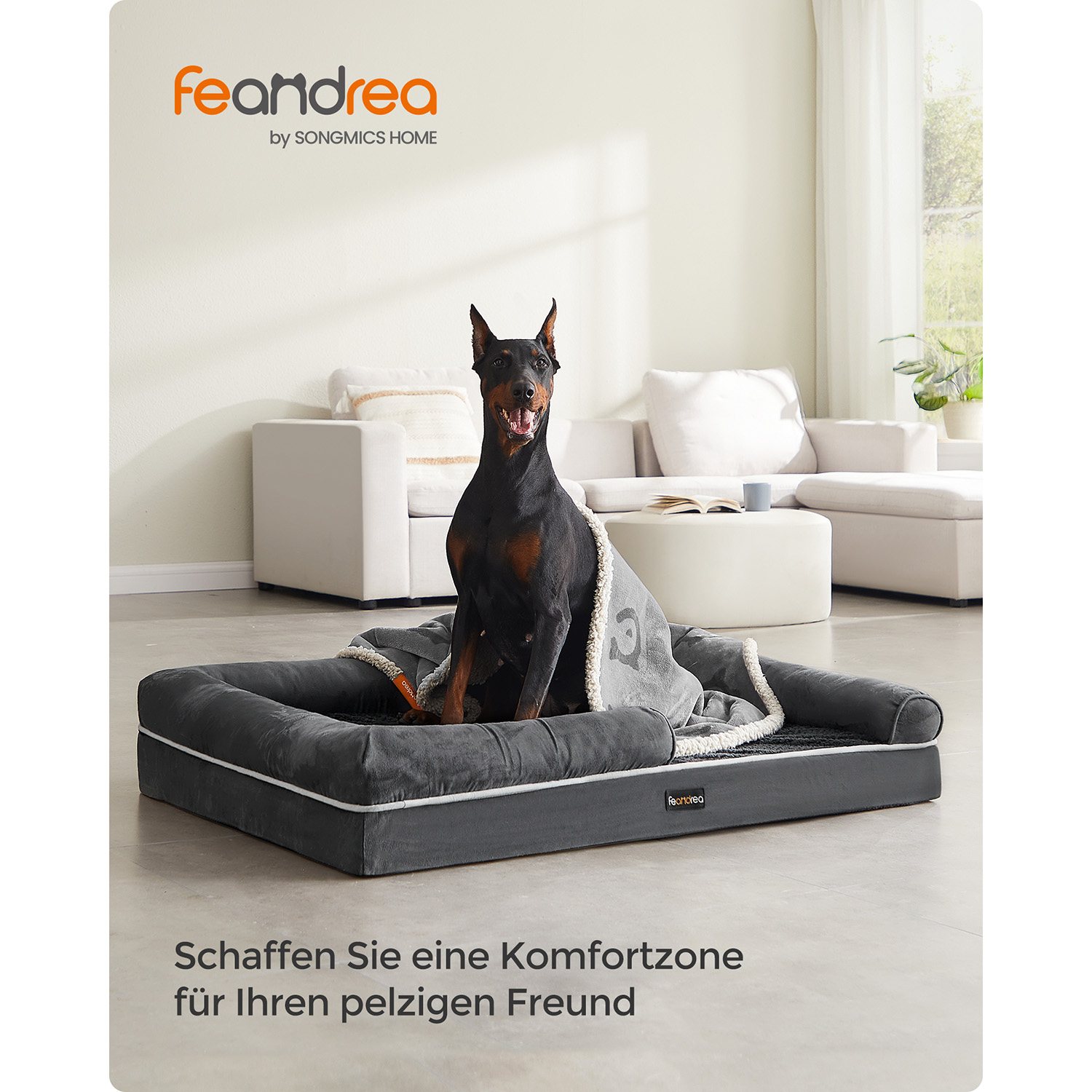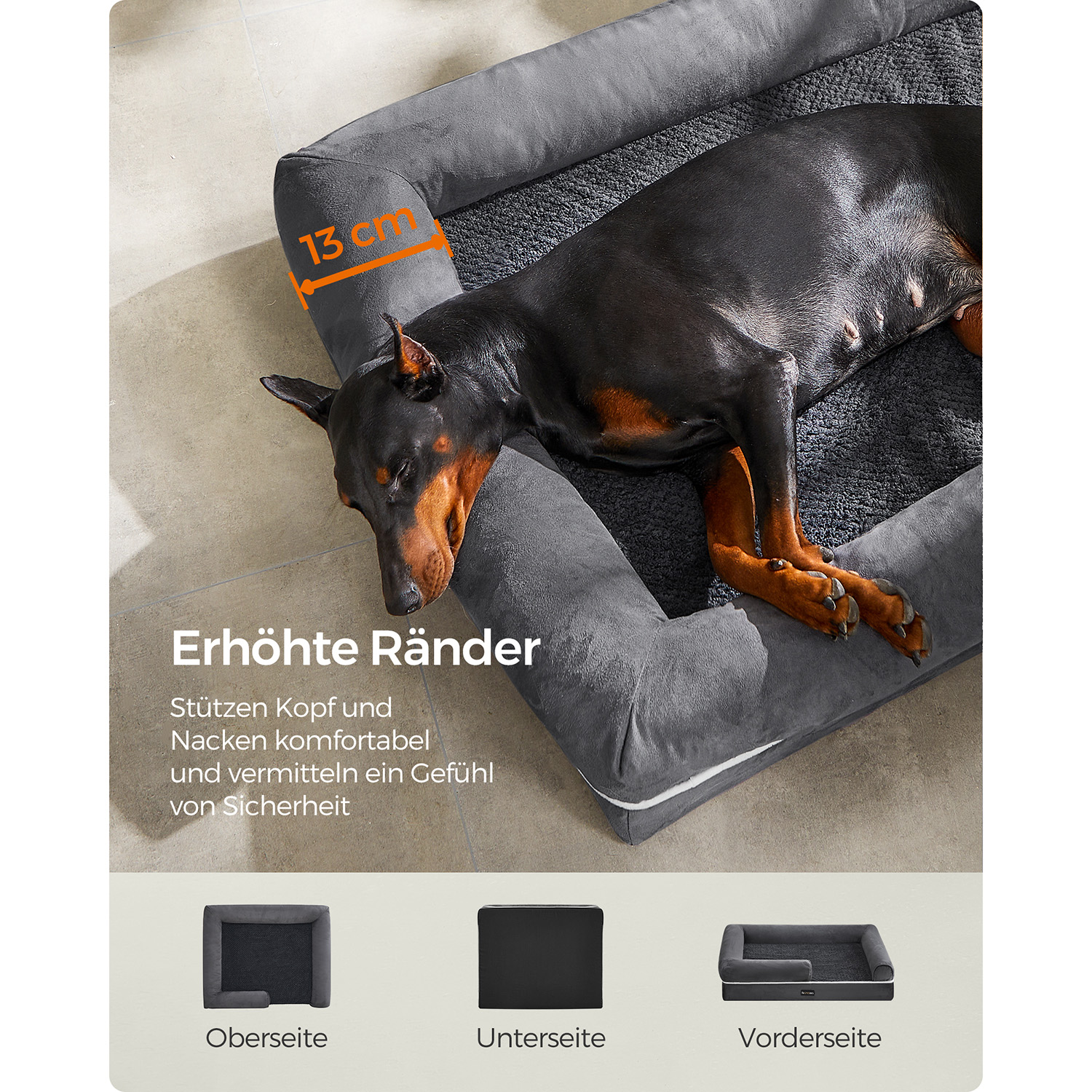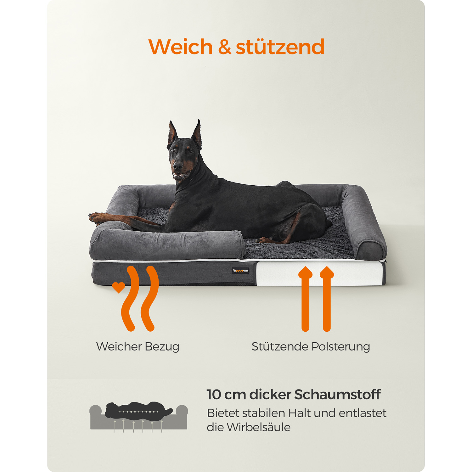 Feandrea ortop?disk hundeseng, hundepude, hundekurv, bl?dt polstring, hundesofa, forh?jede kanter, betr?k aftageligt og vaskbart, 91 x 71 x 25 cm, skridsikker underside, lysegr? PGW076G02