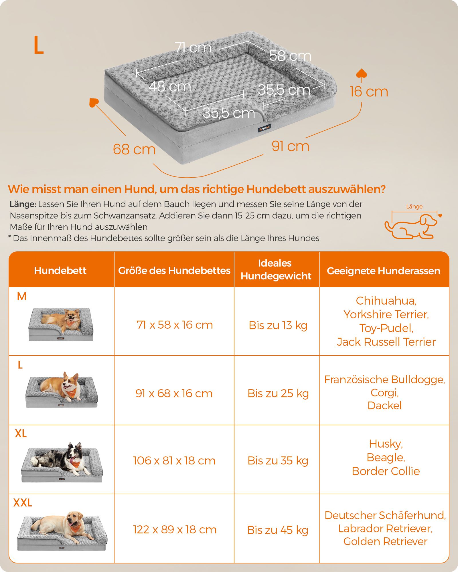 Feandrea Ortop?disk hundeseng til sm? hunde, vandt?t hundesofa med aftageligt plysbetr?k, 71 x 58 x 16 cm, duvegr? PGW251G01