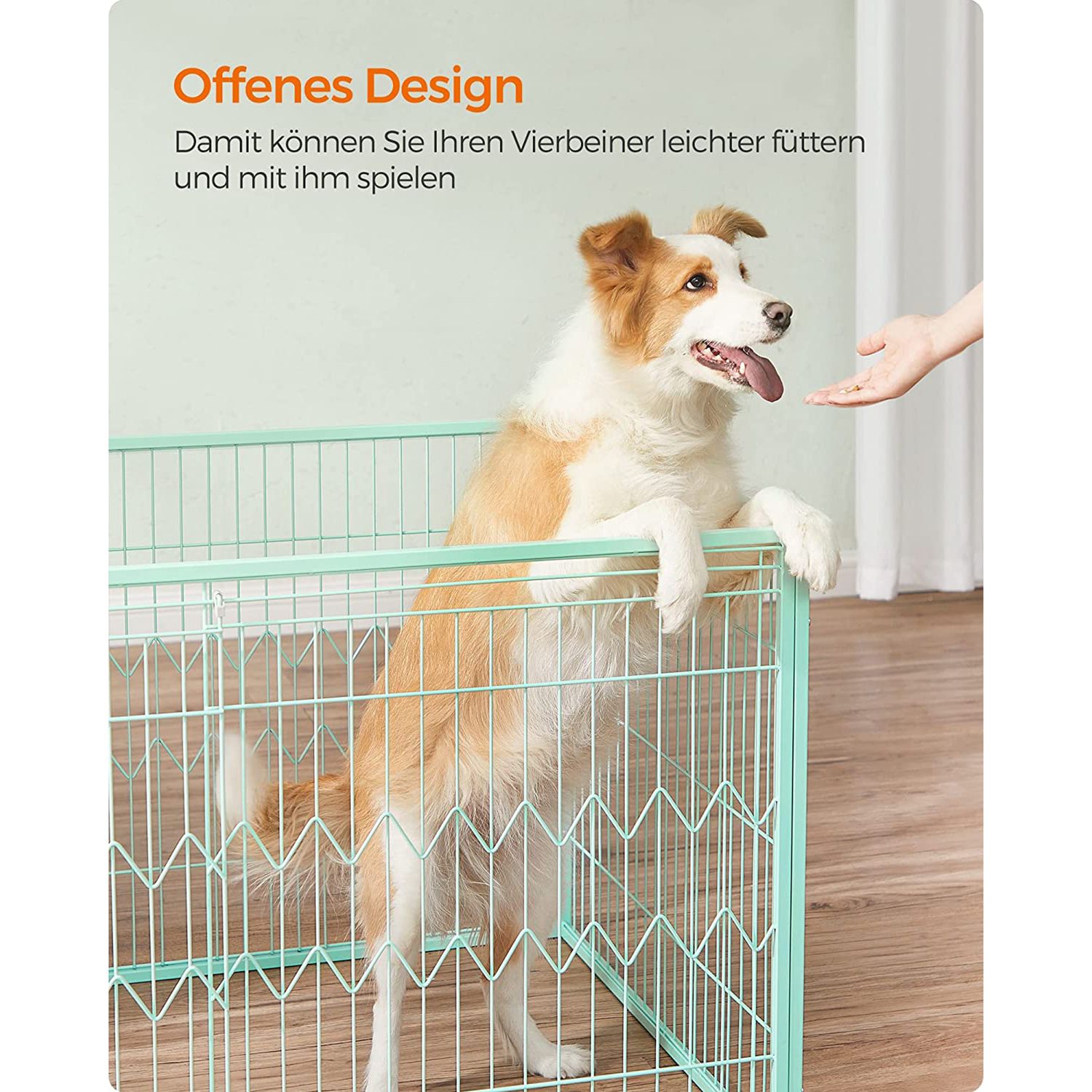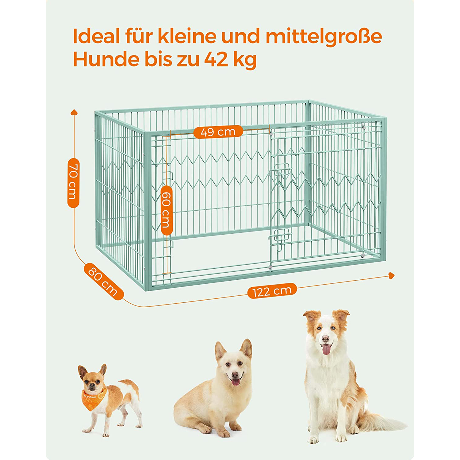 FEANDREA Hvalpeudl?bsbur, indend?rs l?beg?rd, hvalpehegn 4-delt, rektangul?rt, skyded?r med 2 l?se, 122 x 80 x 70 cm, indend?rs bur, til hunde, kaniner, mintgr?n PPK003C01