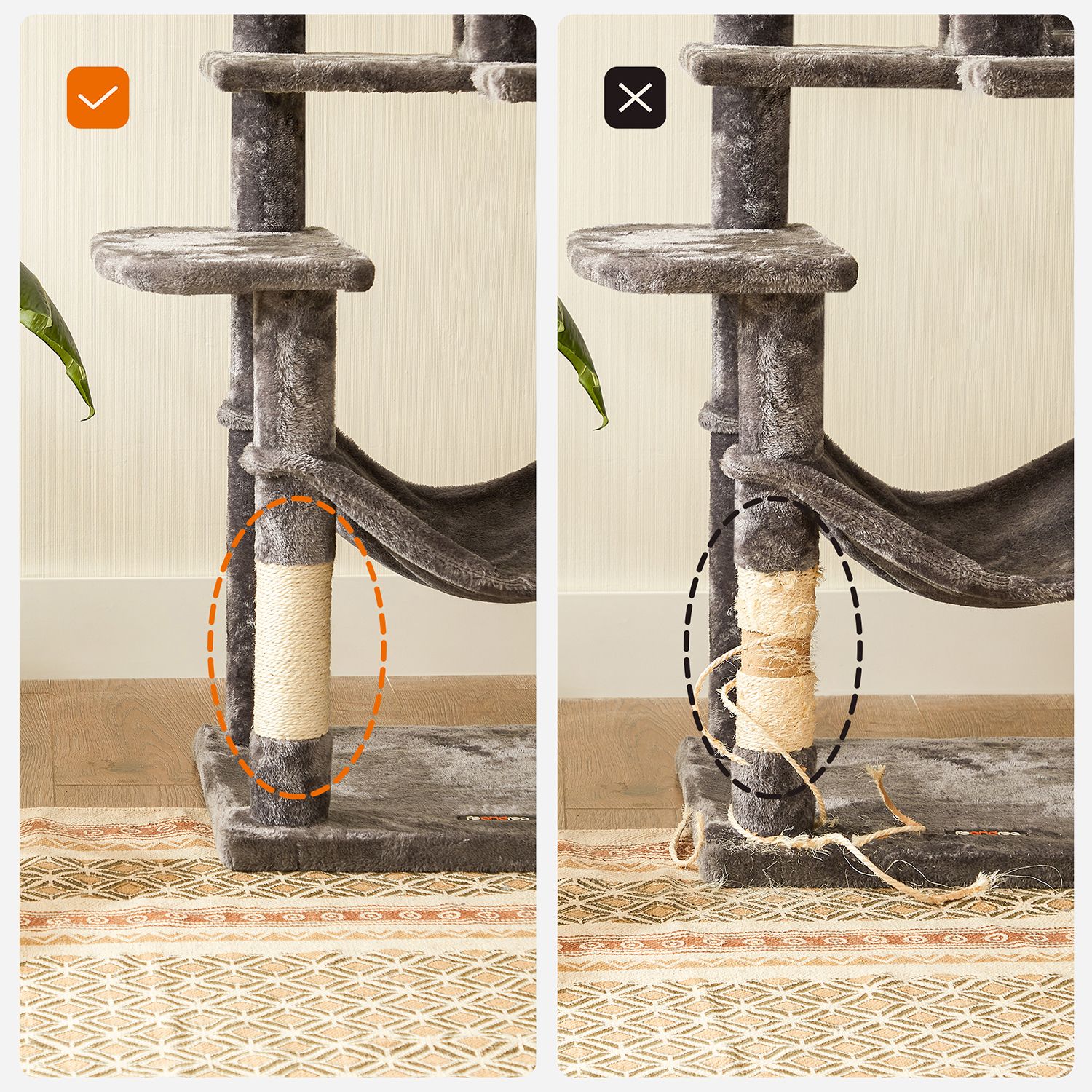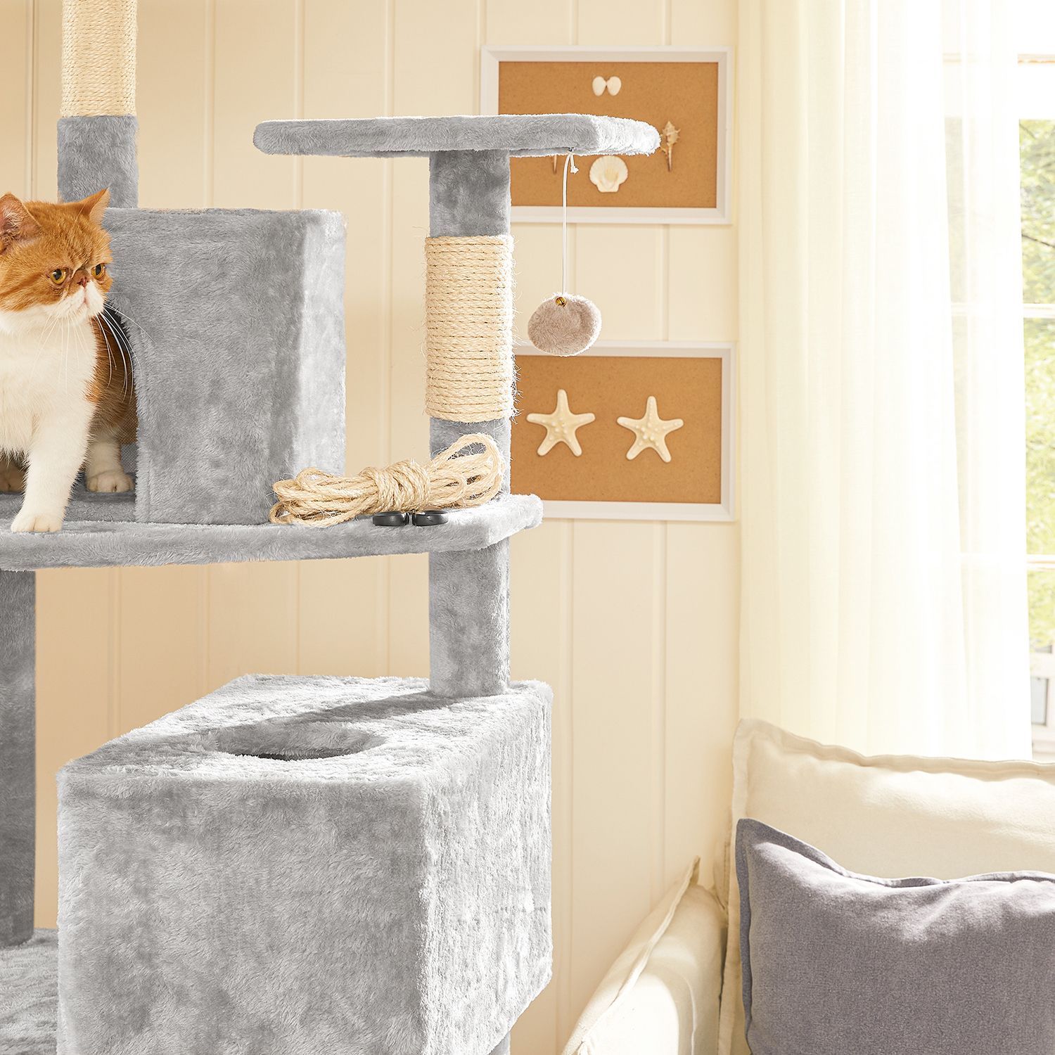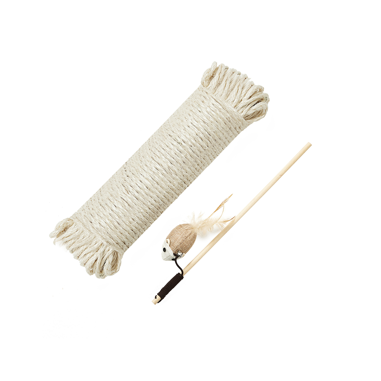 Produktdetaljer: – Farve: Beige – Materiale: Sisal – St?rrelse: 6 mm x 50 m (? x L) – L?ngde p? legestaven: 33 cm – V?gt: 0,9 kg Leveringsomfang: – 1 x Sisalreb – 1 x Katteleget?j Bem?rkninger: – Tr?k rebet stramt under monteringen.- Det anbefales at b?re handsker under brug. – Lad ikke din kat tygge p? eller spise kattet?jet. – Produktet kan lugte “nyt”, n?r det pakkes ud. I s? fald kan du placere det i et godt ventileret rum, s? lugten forsvinder efter kort tid.