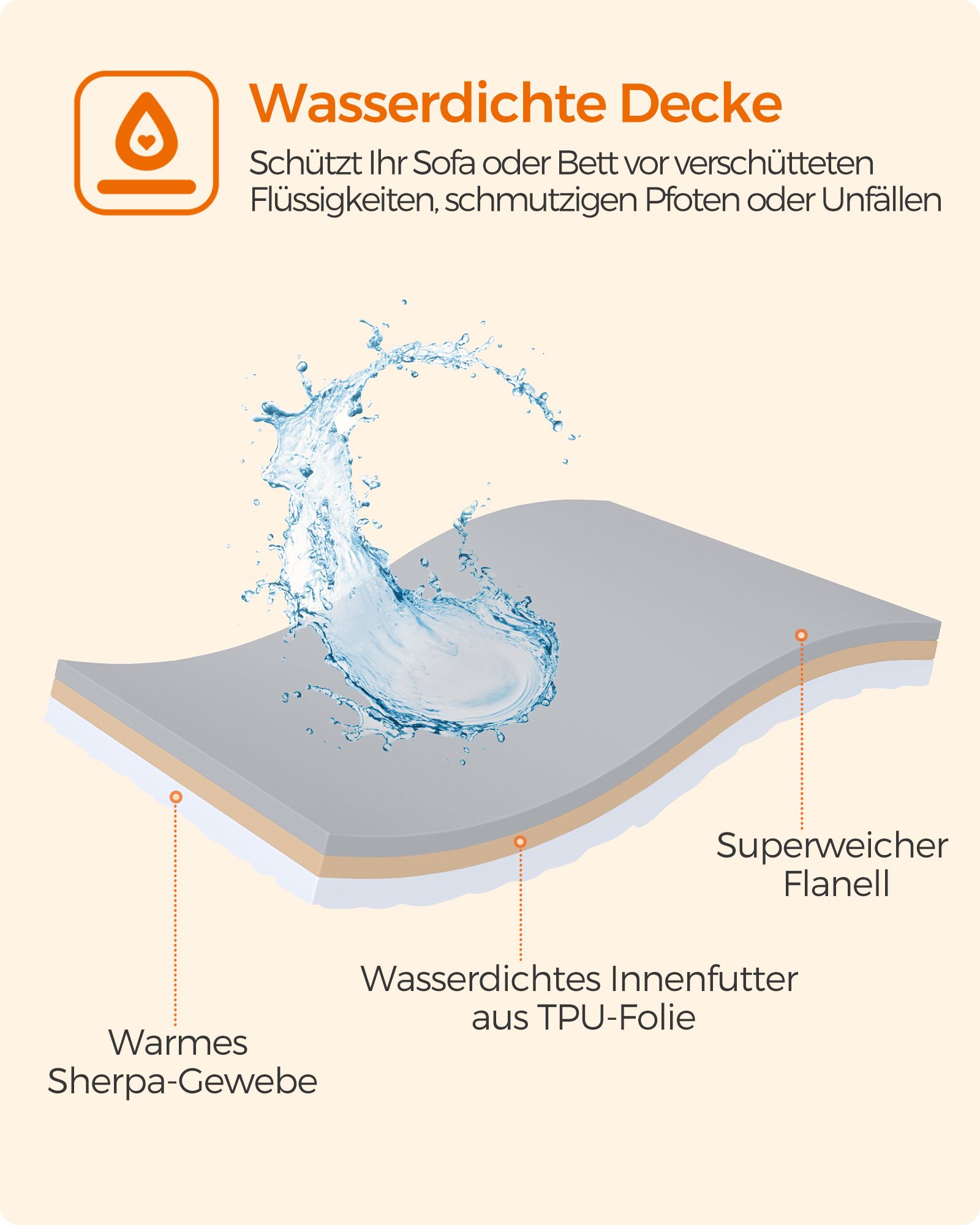 – Materiale: Sherpa, TPU-folie, flannel