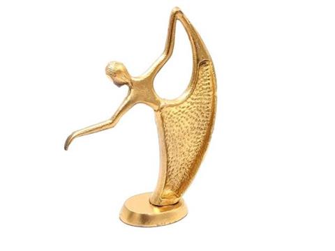 Gylden dekorativ figur Dancer VIR2   Dans er en udtryksform, det er frihed og sublimitet. Nogle gange er det en metafor for himmellegemernes bevægelse, andre gange en rørende historie, der griber hjertet. Dans er naturligvis mange års arbejde for at nå perfektion, hvilket er værd at værdsætte. Den dekorative figur VIR er til dem, der lægger deres hjerte på scenen og dansegulvet. Statuen forestiller en dansende kvinde, en ballerina, hvis nederdel på ingen måde er i uorden.  Det er en unik gave til en danser, ballerina eller til stjernetegnet Jomfruen. Den vil fungere godt som en præmie til vinderen af en dansekonkurrence, som vil indtage en æresplads i hjemmets vitrineskab.   Produktinformation:  Figur lavet af aluminiumDimensioner: 28x20x7 cm