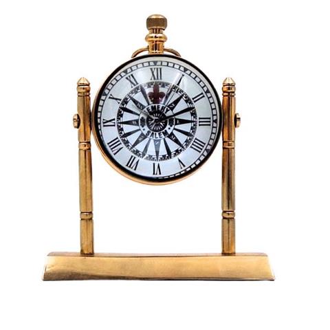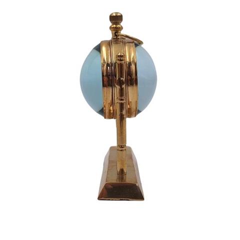 Marine bordur NC2963 Borduret i maritim stil er en gadget, der passer perfekt til interiører i nautisk stil. Urskiven med en dekorativ vindrose vil vinde hjerterne hos rejselystne globetrottere. Det samme gælder verdenskortet på den anden side af uret. Uret vil appellere til mennesker, der er uløseligt forbundet med sejlsport. Det kugleformede ur er placeret i en messingfod i guldfarve. De sorte indskrifter og visere står i flot kontrast til urskivens hvide baggrund. Urskiven er dekoreret med en vindrose. På bagsiden af uret er der et sort-hvidt verdenskort. Produktinformation: Materiale: messing, glasDimensioner: Højde 11 cm x Bredde 9,5 cm x Dybde 5 cmFarve: gyldenUrskive: hvid med sort vindroseBogstaver: sorteViser: sorteSort-hvidt verdenskort på bagsidenDrivkraft: batteri