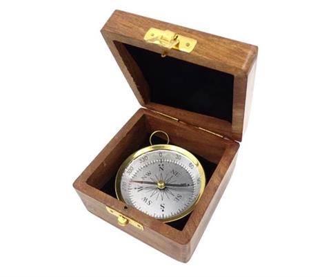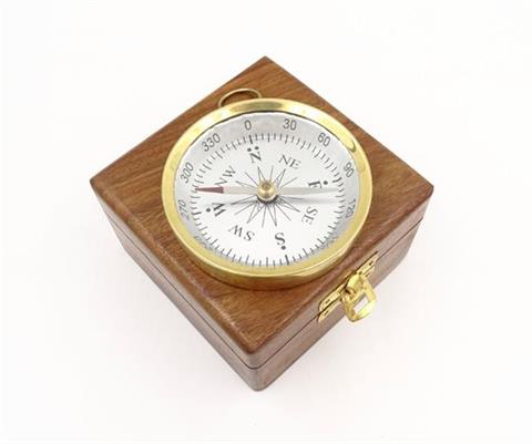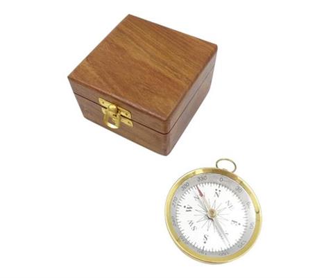 Messingkompas i trækasse – C35A