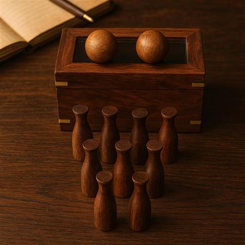 Mini Bowling – SE08 Bring lidt sjov ind i hverdagen med det elegante SE08 Mini Bowling Set. Det er en stilfuld og kompakt version af det klassiske bowling-spil, der er perfekt til både anti-stress underholdning på skrivebordet og en original gave til enhver fan af arkadespil. Træn din præcision, udvikl din koordination og slap af i pauserne fra arbejdet – alene eller sammen med kollegerne! Mini-bowlingkeglerne i denne version fungerer godt som en gadget, du kan placere på dit skrivebord. Hvorfor det er det værd: ??Underholdning altid ved hånden – perfekt til dit skrivebord på arbejde eller derhjemme.??Fremmer koncentration og manuelle færdigheder – perfekt til dem, der elsker udfordringer.??Fantastisk gaveidé – elegant håndværk og dekorativ æske er iøjnefaldende.??Vintage-stil – naturligt træ, messingornamenter og glaslåg skaber en unik atmosfære. I sættet finder du: 10 miniature bowlingkegler (højde: 5,5 cm, træ).2 trækugler (diameter: 3 cm)Elegant æske af træ og glas (15 x 7,5 x 8 cm) med låsbart låg og messingdetaljer. Bemærk, at dette produkt ikke er et legetøj. Produktet er beregnet til personer over 14 år.