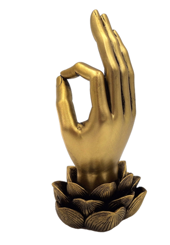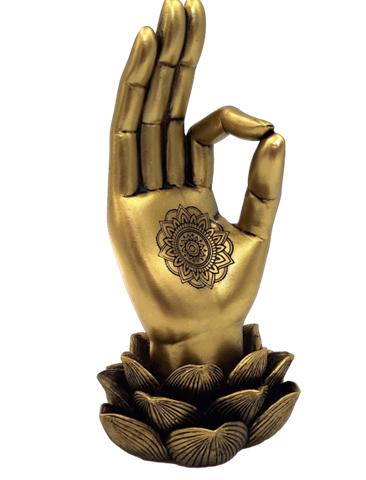 Mudra OM – Dekorativ figur – 43724 Elegant figur, der viser OM mudra, en af de mest populære gestus inden for yoga og meditation. Den gyldne farve og det moderne design gør den til en unik dekoration, der vil bringe en atmosfære af fred og balance til dit interiør. Leder du efter en original gave? OM mudra-figur er et fremragende valg. Det er ikke kun et smukt objekt, men også et symbol på dyb spirituel praksis. OM mudra er en af de mest populære og universelle gestus inden for yoga og meditation. Det er en symbolsk repræsentation af OM-lyden, der i mange kulturer betragtes som universets oprindelige vibration. Formålet med at udføre OM mudra er at forbinde sig med denne kosmiske energi, hvilket fører til dyb afslapning, indre fred og åndelig harmoni. Produktinformation: Mål: 11,7 x 10 x 21,3 cmMateriale: polyresinFarve: guldStil: moderne, glamour