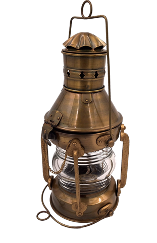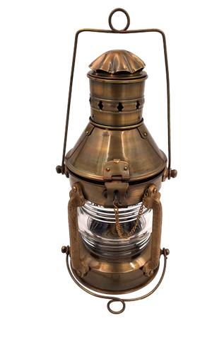 Nautisk retro lampe – SL9 Retro nautisk lampe SL9 er en stilfuld dekoration i nautisk stil. Den er lavet af metal og imiterer udseendet af en gammel olielampe. Den perfekte gave til nautiske elskere. Produktinformation: Materiale: metalplade, støbejernDimensioner: Højde 34 cm x Diameter 16 cmFarve: stiliseret gammelt messing.Olielampe, åbnes fra toppen. Perfekt tilbehør til interiør i nautisk stil.