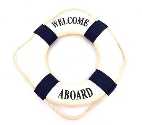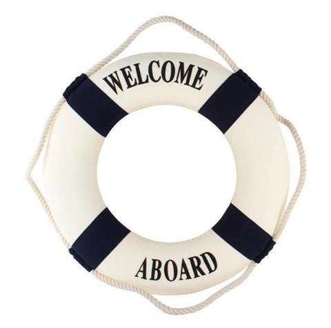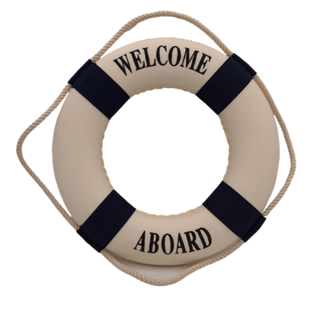 Redningskrans – vægdekoration – RS35K-L Redningskrans – nautisk vægdekoration, der bringer lidt nautisk atmosfære ind i rummet. Redningskransen er lavet af styropor og beklædt med cremefarvet og marineblåt stof, dekoreret hele vejen rundt med bomuldsreb. Den ligner en ægte redningskrans, men i mindre størrelse. Den er også en ideel dekoration til ethvert interiør. Den kan tilføje et maritimt touch til en stue, et soveværelse eller endda et kontor. Hjulet vil se godt ud i både moderne og klassiske indretninger. Redningskransen er den perfekte gave til alle, der elsker havet og sejlads. Produktinformation: Mål: 35 x 5,2 x 37 cmMateriale: stof (yderside), lærred, styropor.