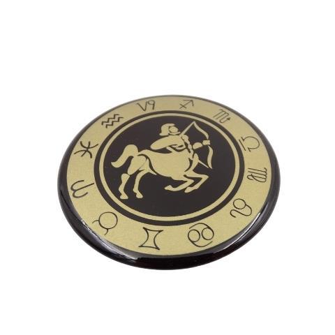 Skytten Magnet stjernetegn Køleskabsmagnet til det energiske, afslappede og optimistiske stjernetegn Skytten. Skytten er en glad person med en udtryksfuld personlighed. Skytten er direkte, entusiastisk og spontan. En køleskabsmagnet med billedet af stjernetegnet Skytten er en god idé til en lille gave eller et supplement til en gave til en person, der er født i Skytten, og til fans af astrologi. I midten af magneten er der et billede af stjernetegnet Skytten. På den gyldne kant er der symboler for alle stjernetegn. Skytten Magnet Stjernetegn Specifikation: Materiale: emaljeret metal Farve: guld, sort Symboler for alle stjernetegn på kanten Skytten i midten Dimensioner: diameter 6 cm