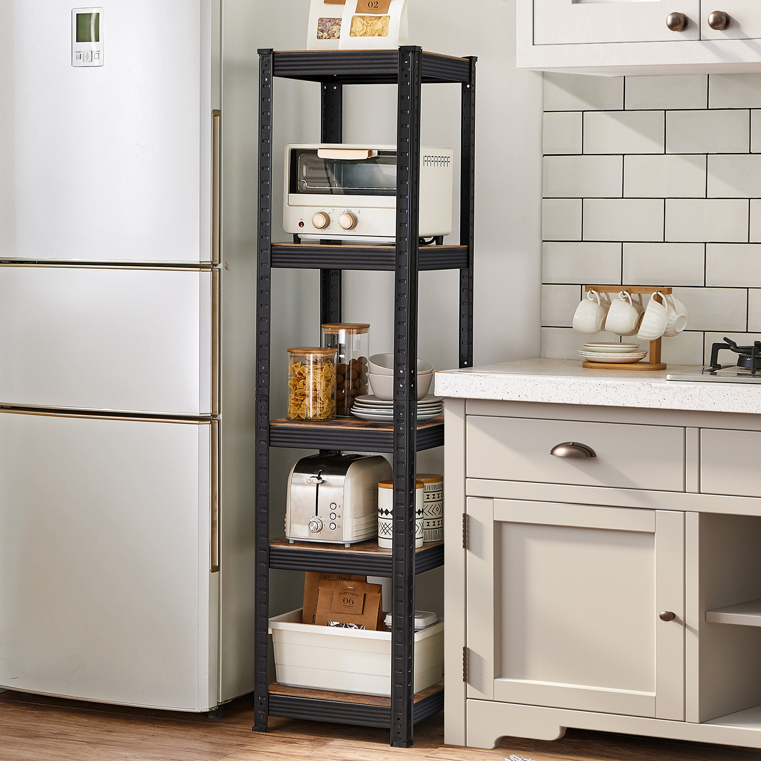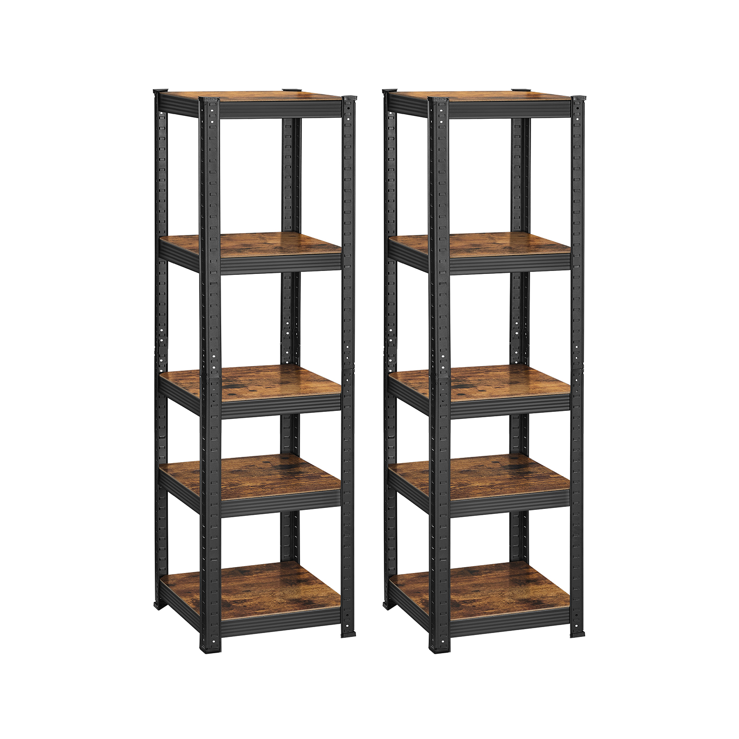 Produktdetaljer: Farve: Vintagebrun-sort Materiale: Pulverlakeret st?l, MDF (medium densitetsfiberplade)St?rrelse pr. reol: 150 x 37 x 37 cm (H x L x B)V?gt pr. reol: 5,9 kgMaks. statisk belastning pr. hylde: 80 kgLeveringsomfang:2 x lagerreol2 x v?ltebeskyttelse1 x vejledningSONGMICS Bem?rkninger:B?r altid handsker under montering.Placer ikke produktet i et fugtigt milj?.Den maksimale belastning i teksten refererer til den maksimale statiske v?gt. Produktet leveres i 2 pakker. V?r t?lmodig, hvis du kun modtager den f?rste pakke. Den anden pakke b?r ankomme kort tid efter.