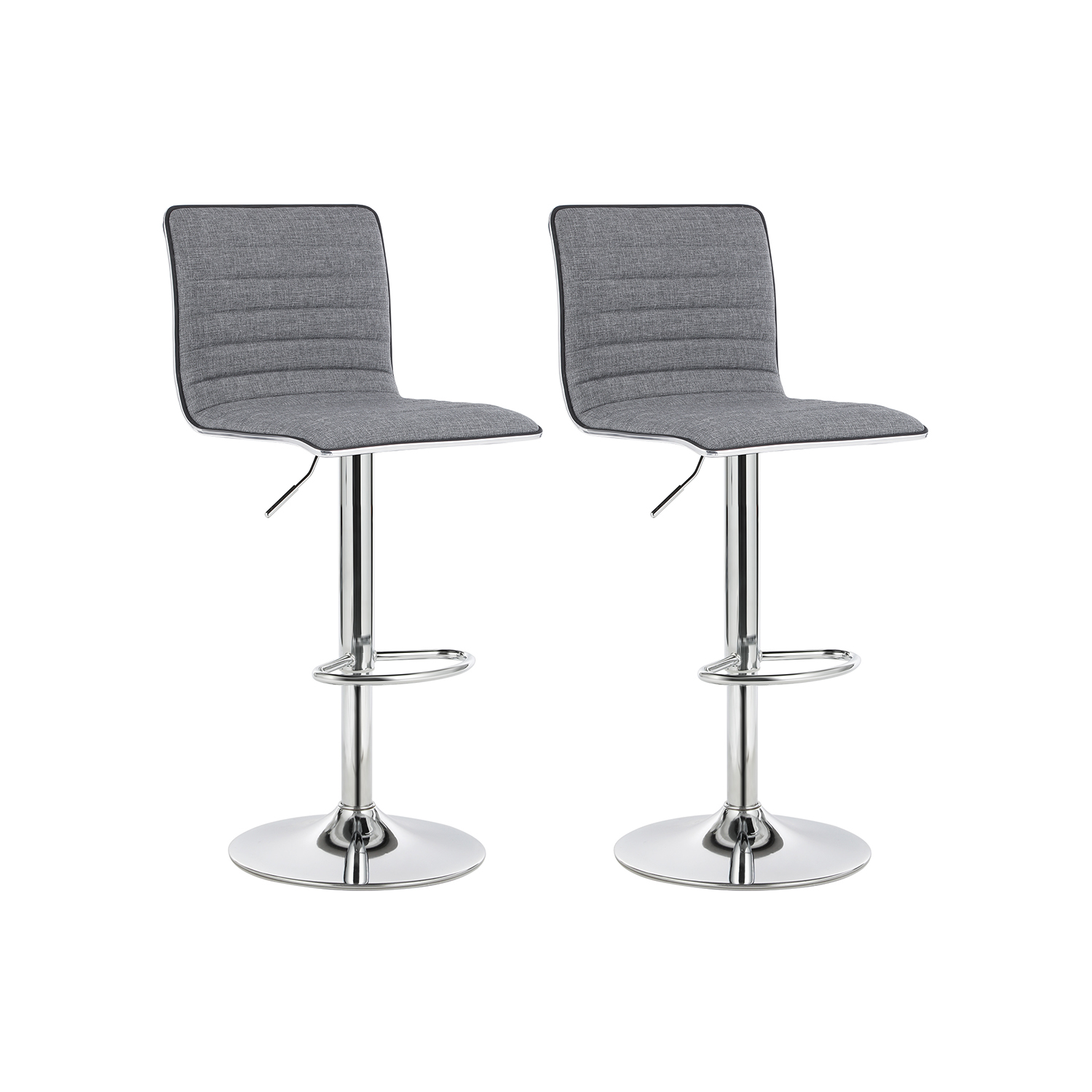 Tout en ?l?gance : Ces chaises grises en tissu imitation lin ultra modernes apportent une touche de glamour et d’?l?gance ? votre int?rieur. Skab en afslappet atmosf?re, der er en trendy bar v?rdig, i dit hjem! Hvem vil have de samme? Dit barbord eller din h?jbord i k?kkenet eller spisestuen vil v?re glade for at have disse stole ved siden af sig. De er lige s? perfekte til caf?er, bistroer, restauranter og coworking-rum, der har brug for ekstra siddepladser.Egenskaber: Farve: Gr? Materialer: Imiteret h?rstof, forkromet metal Samlede dimensioner: 42 x 46 x (91-113) cm (L x B x H) Samlet h?jde: 94-114 cm S?deh?jde: 57-77 cm S?dets dimensioner: 42 x 40 cm (L x B) Rygl?nsh?jde: 33 cm Diameter p? fod: 41 cm V?gt pr. skammel: 7,5 kg Maksimal statisk belastning pr. skammel: 120 kg Levering: 2 x skammel 1 x monteringss?t 1 x brugsanvisning (FR, EN, DE, ES, IT)