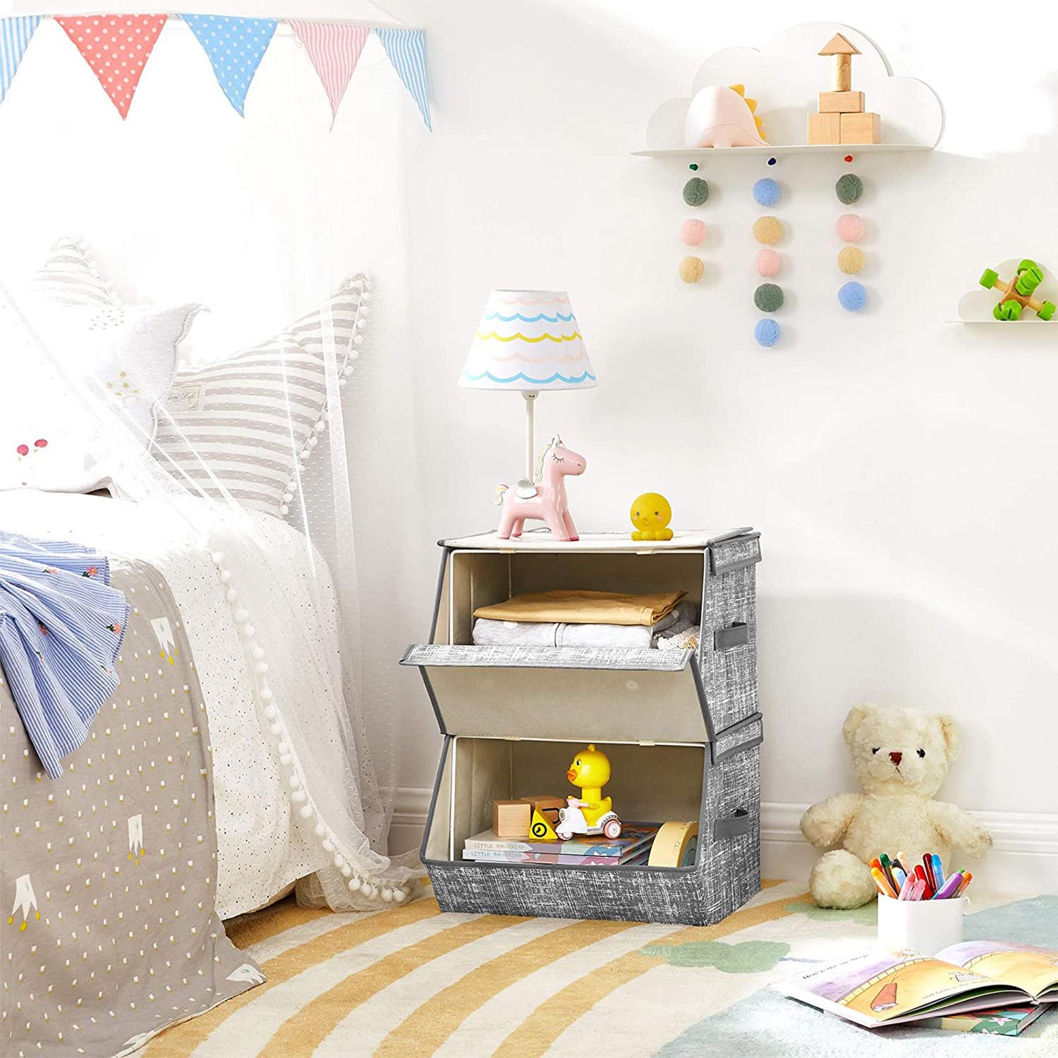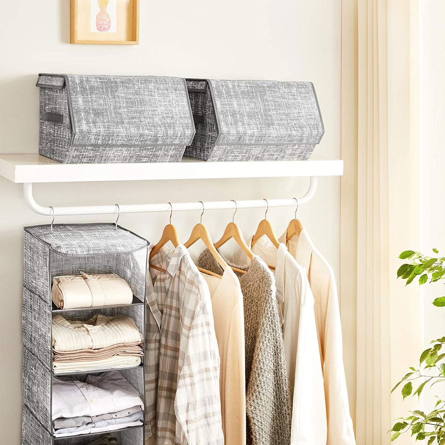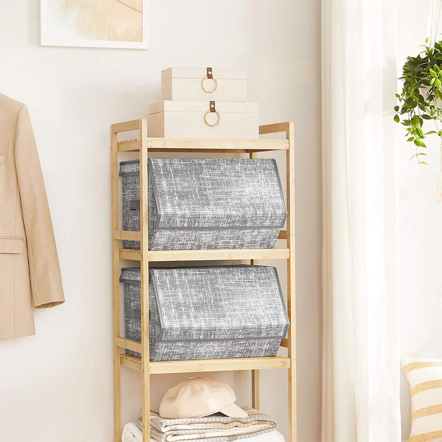 Disse 2 opbevaringskasser fra SONGMICS er en god hj?lp til at rydde op i alle de forskellige genstande, som der ikke lige er plads til: t?j, leget?j, fotoalbum, gamle b?ger og s? videre. F? mest muligt ud af pladsen. Stabel disse kasser for at udnytte den lodrette plads optimalt. Metalrammen og kvalitetskartonen sikrer stabilitet. Du beh?ver ikke bekymre dig om, at kasserne vakler. N?r kasserne ikke er i brug, kan du folde dem sammen og opbevare dem for at spare plads. Fordele ved disse opbevaringskasser: – I sovev?relset: Placer dem i skabet eller ved siden af sengen for at opbevare dit daglige t?j. – I stuen: Stil dem ved siden af sofaen eller under sofabordet for at opbevare b?ger og magasiner, som du ofte l?ser. – I entreen: Opbevar dine tasker, huer og lignende i dem. – I b?rnev?relset: Stil dem p? hylden for at rydde op i b?rnenes leget?j og t?j. Produktdetaljer: – Farve: Gr? – Materiale: Pap, fleece, metalstel – St?rrelse pr. kasse: 38 x 35 x 25 cm (B x D x H) – Samlet v?gt for de 2 kasser: 2 kg – Maks. statisk belastning pr. kasse: 10 kg Leveringsomfang: – 2 x opbevaringskasser SONGMICS Bem?rkninger: – Det kan v?re, at produktet har en let lugt, n?r det pakkes ud. I s? fald skal du placere det p? et godt ventileret sted. Lugten forsvinder efter kort tid. – Uds?t ikke produktet for direkte sollys eller h?j luftfugtighed i l?ngere tid. – Vask ikke produktet direkte med vand. Du skal t?rre det af med en fugtig klud for at fjerne snavs.