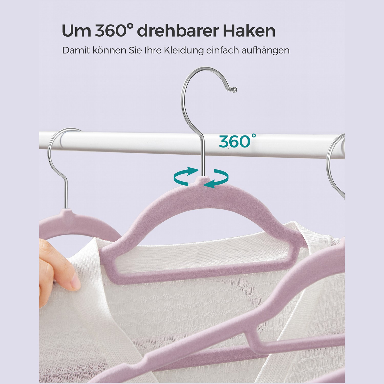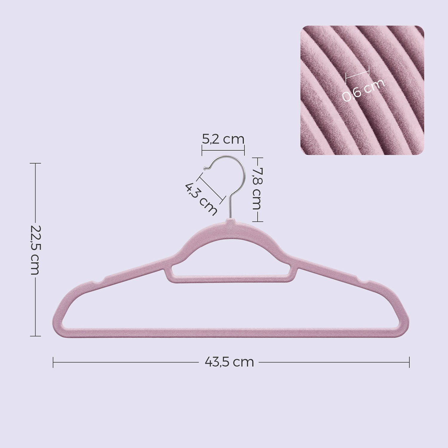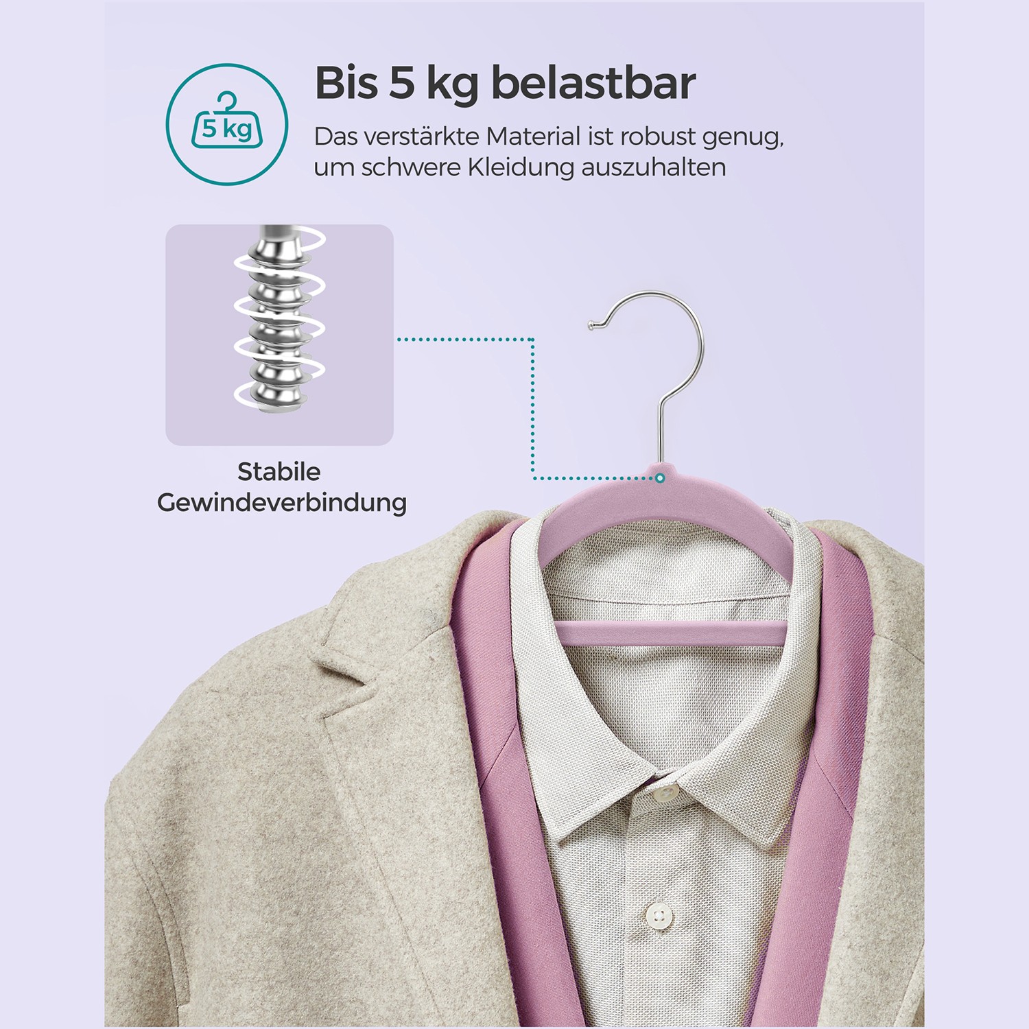 Produktdetaljer:Farve: Lys lilla Materiale: Fl?jl, ABS-plast, metalhage St?rrelse pr. b?jle: 43,5 x 0,6 x 22,5 cm (L x B x H) V?gt af 20 b?jler: 1,6 kg Maks. statisk belastning pr. b?jle: 5 kg Leveringsomfang: 20 x b?jler SONGMICS Bem?rkninger:H?ng ikke v?dt t?j p? b?jlerne. H?ng ikke for tunge bekl?dningsgenstande p? b?jlerne. Brug ikke disse b?jler i en t?rretumbler.