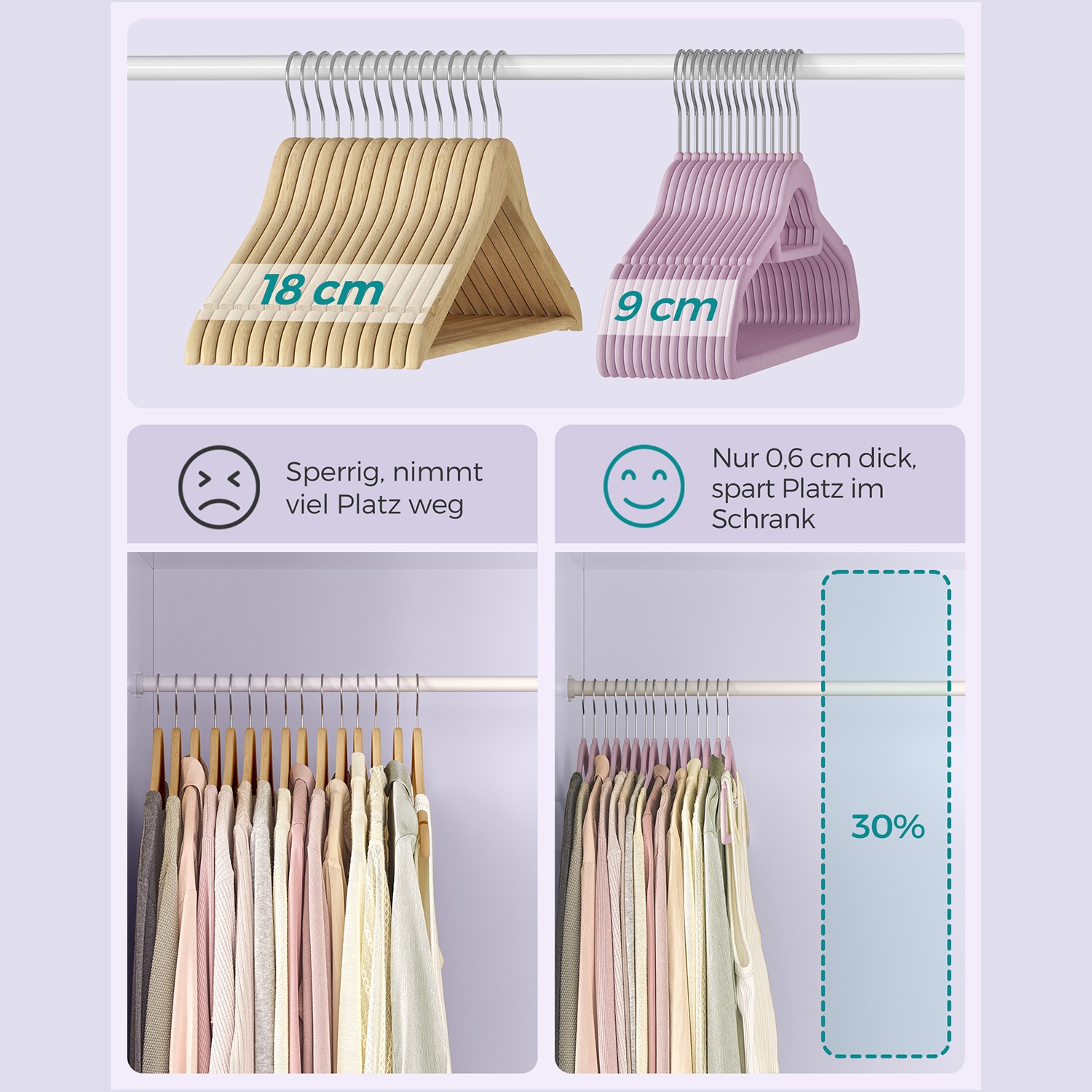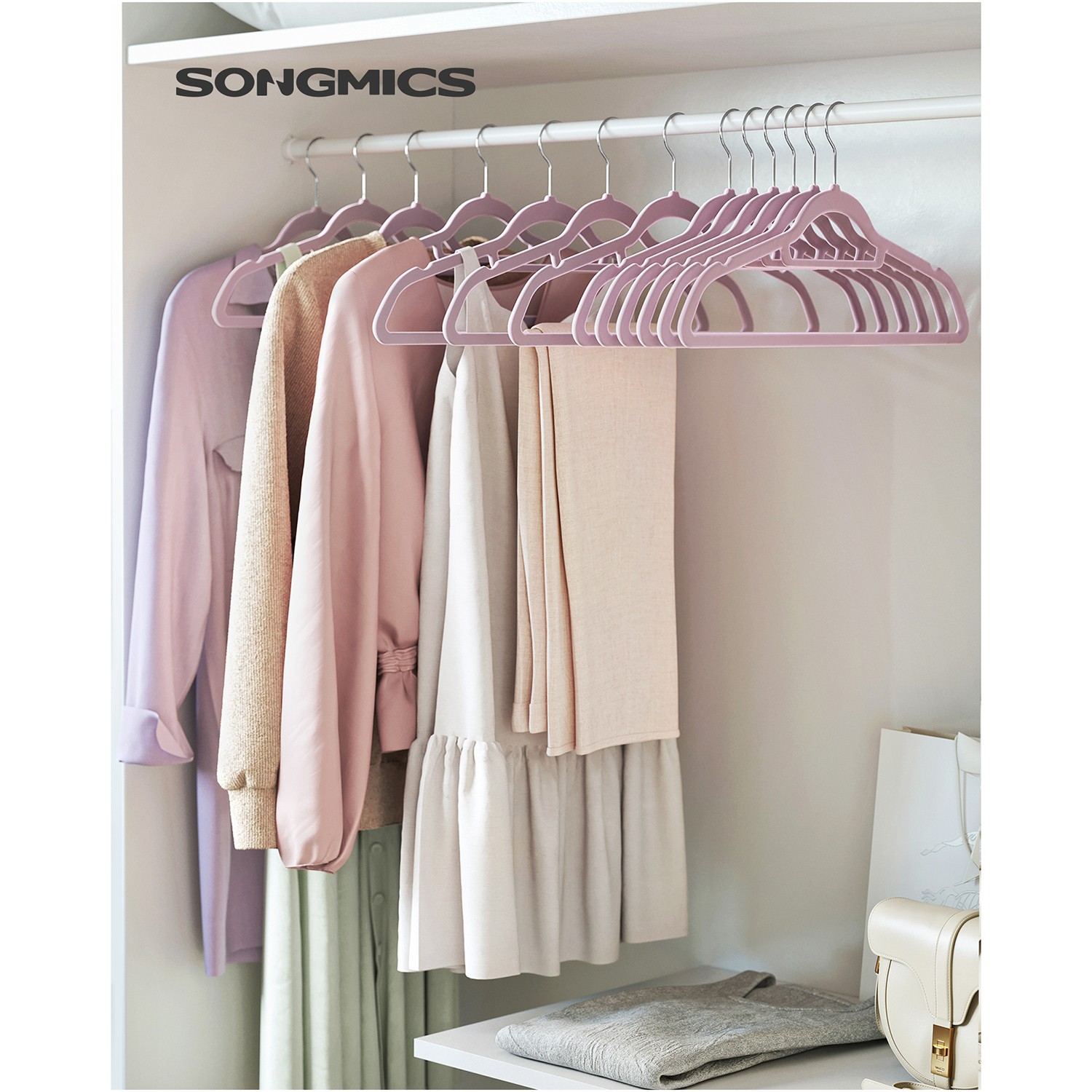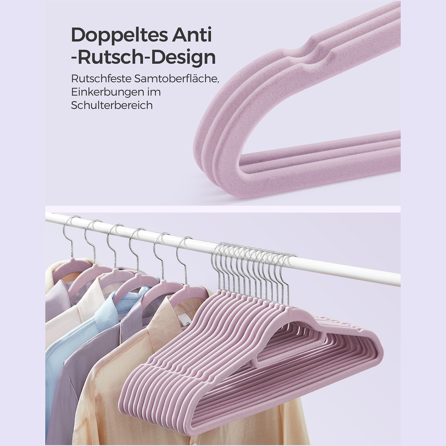 Produktdetaljer:Farve: Lys lilla Materiale: Fl?jl, ABS-plast, metalhage St?rrelse pr. b?jle: 43,5 x 0,6 x 22,5 cm (L x B x H) V?gt af 20 b?jler: 1,6 kg Maks. statisk belastning pr. b?jle: 5 kg Leveringsomfang: 20 x b?jler SONGMICS Bem?rkninger:H?ng ikke v?dt t?j p? b?jlerne. H?ng ikke for tunge bekl?dningsgenstande p? b?jlerne. Brug ikke disse b?jler i en t?rretumbler.