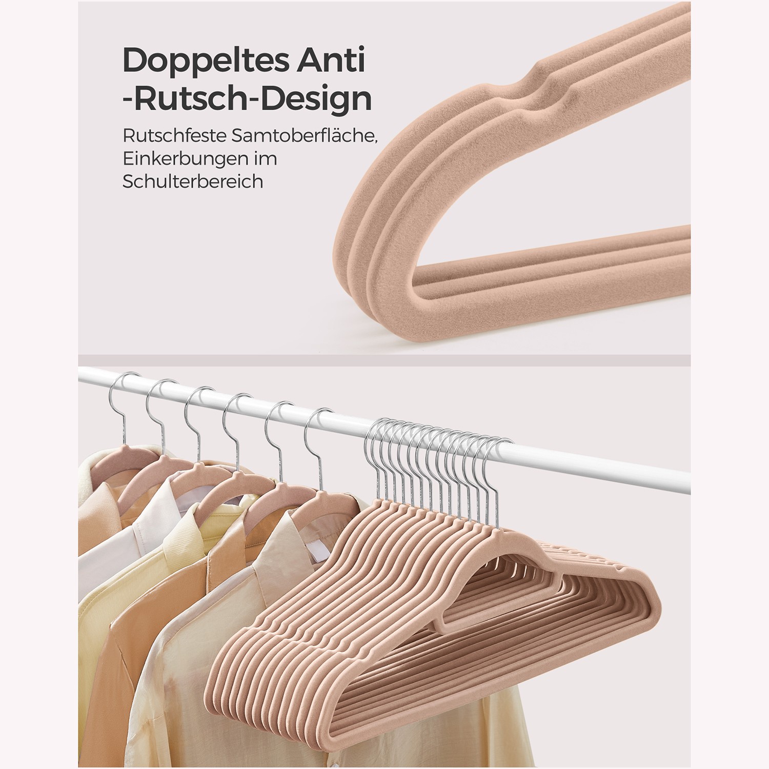 Produktdetaljer:Farve: Lys brun Materiale: Fl?jl, ABS-plast, metal kroge St?rrelse pr. b?jle: 43,5 x 0,6 x 22,5 cm (L x B x H) V?gt af 20 b?jler: 1,6 kg Maks. statisk belastning pr. b?jle: 5 kg Leveringsomfang: 20 x b?jler SONGMICS Bem?rkninger:H?ng ikke v?dt t?j p? b?jlerne. H?ng ikke for tunge bekl?dningsgenstande p? b?jlerne. Brug ikke disse b?jler i en t?rretumbler.