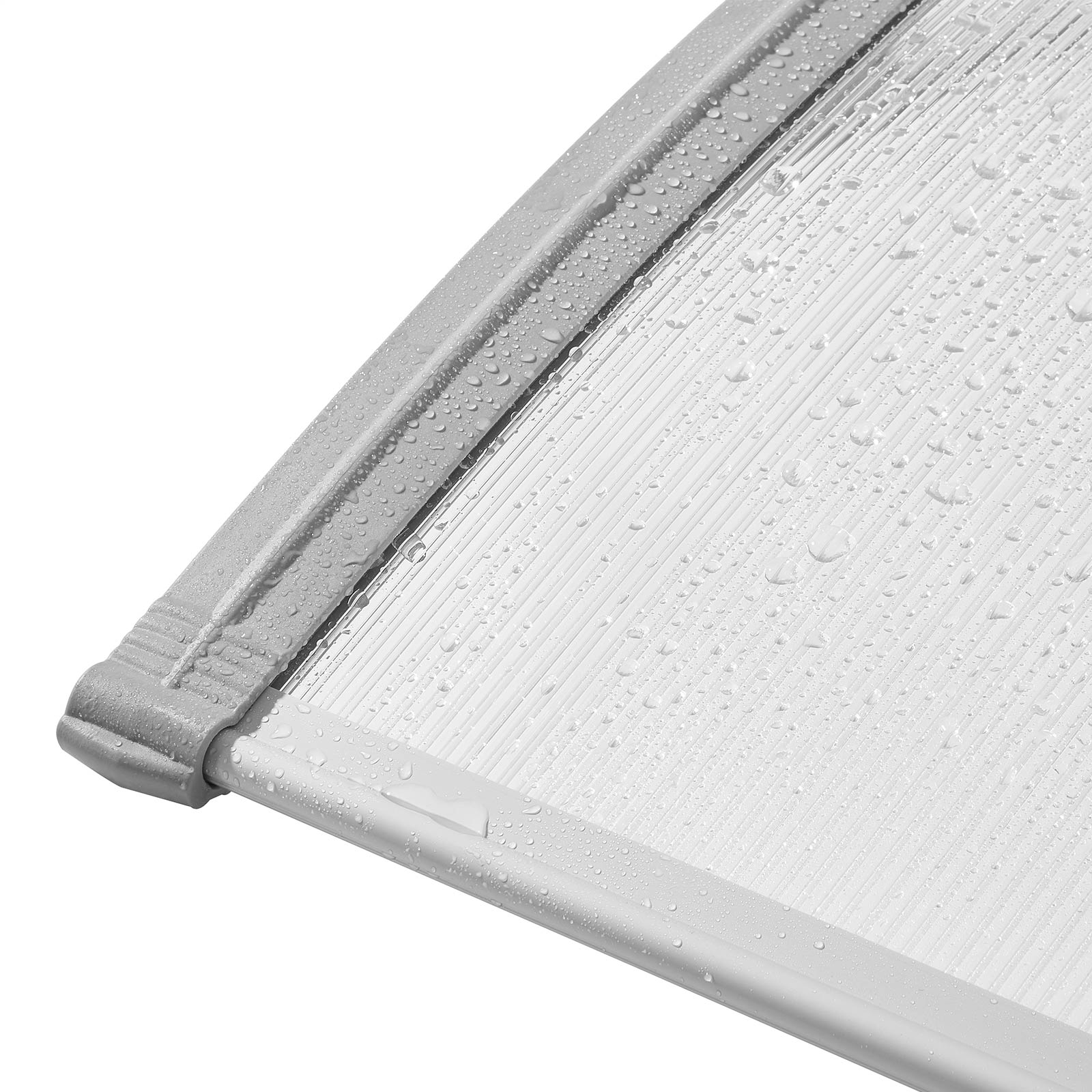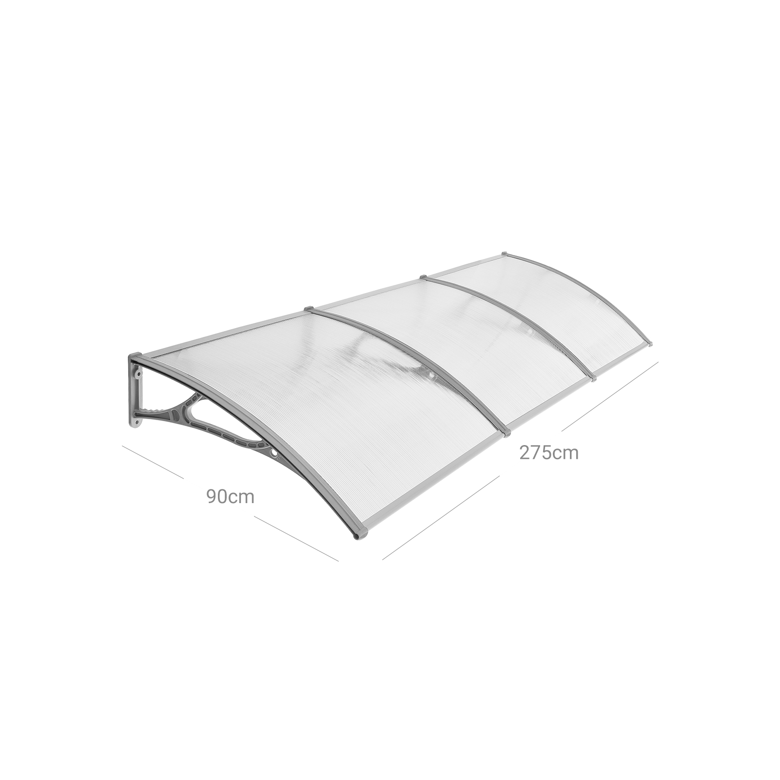 Med denne SONGMICS-d?rmarkise beh?ver du ikke l?ngere st? i regnen. Markisen er lavet af 5 mm stift polycarbonat. Den er st?rk og holdbar og giver en fremragende transmission af naturligt lys uden for meget regnst?j. Den har en solid og stabil struktur, der forst?rker styrken og bedre modst?r vejret. Denne markise er nem at samle og reng?re, bare t?r den af med en klud. Med sin udvidelige struktur kan du tage flere af dem og samle dem sammen. Denne d?rmarkise er et ideelt valg til d?re, vinduer, terrasser og meget mere… Specifikationer: – Farve: Transparent, gr? – Materiale: Polycarbonatmarkise, PPO-plastbeslag, aluminiumsfor- og bagkanter – Produktst?rrelse: 275 x 90 x 30 cm (L x B x H) – Paneltykkelse: 5 mm – Produktv?gt: 8,5 kg Pakkens indhold: – 1 x s?t baldakin (3 paneler, 4 beslag, 6 aluminiumskanter) – 1 x monteringss?t – 1 x vejledning (EN, DE, FR, IT, ES) SONGMICS Bem?rkninger: – Den forreste kant er 5 cm lavere end bunden af beslaget. Bem?rk, at hullerne ikke m? bores for lavt, s? d?ren kan svinge op. – Beslagene skal monteres i vandret position. – For at undg? vandl?kage anbefales det at t?tne samlingen, hvor baldakinen m?der v?ggen bagtil, med silikoneforsegling (medf?lger ikke). – Reng?r f?rst den overflade, hvor baldakinen skal monteres. – Skruer og bolte medf?lger til montering af produktet p? solide beton- eller cementv?gge. I betragtning af v?ggenes forskelligartethed skal du f?rst anskaffe de passende skruer og ankre i en isenkr?mmer.