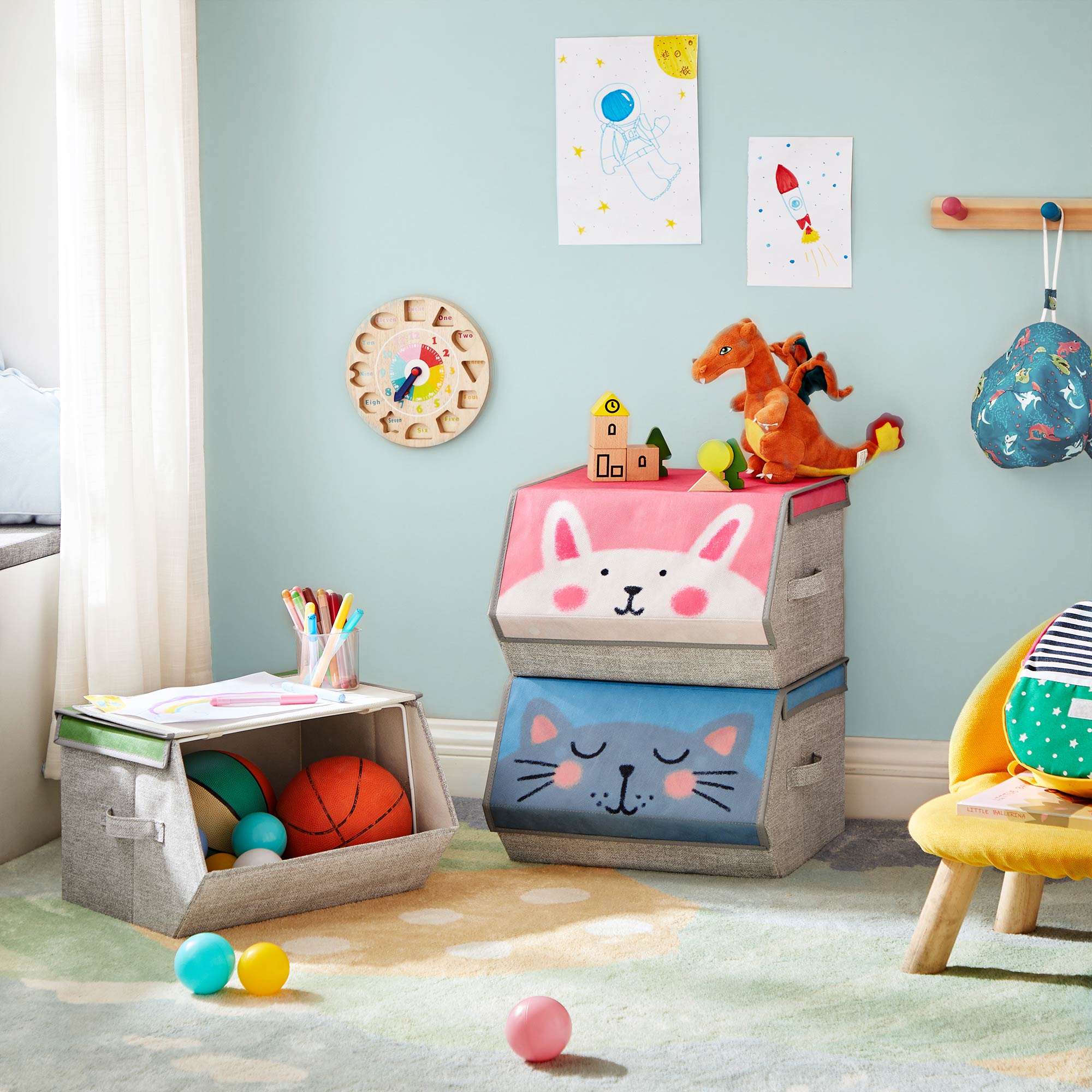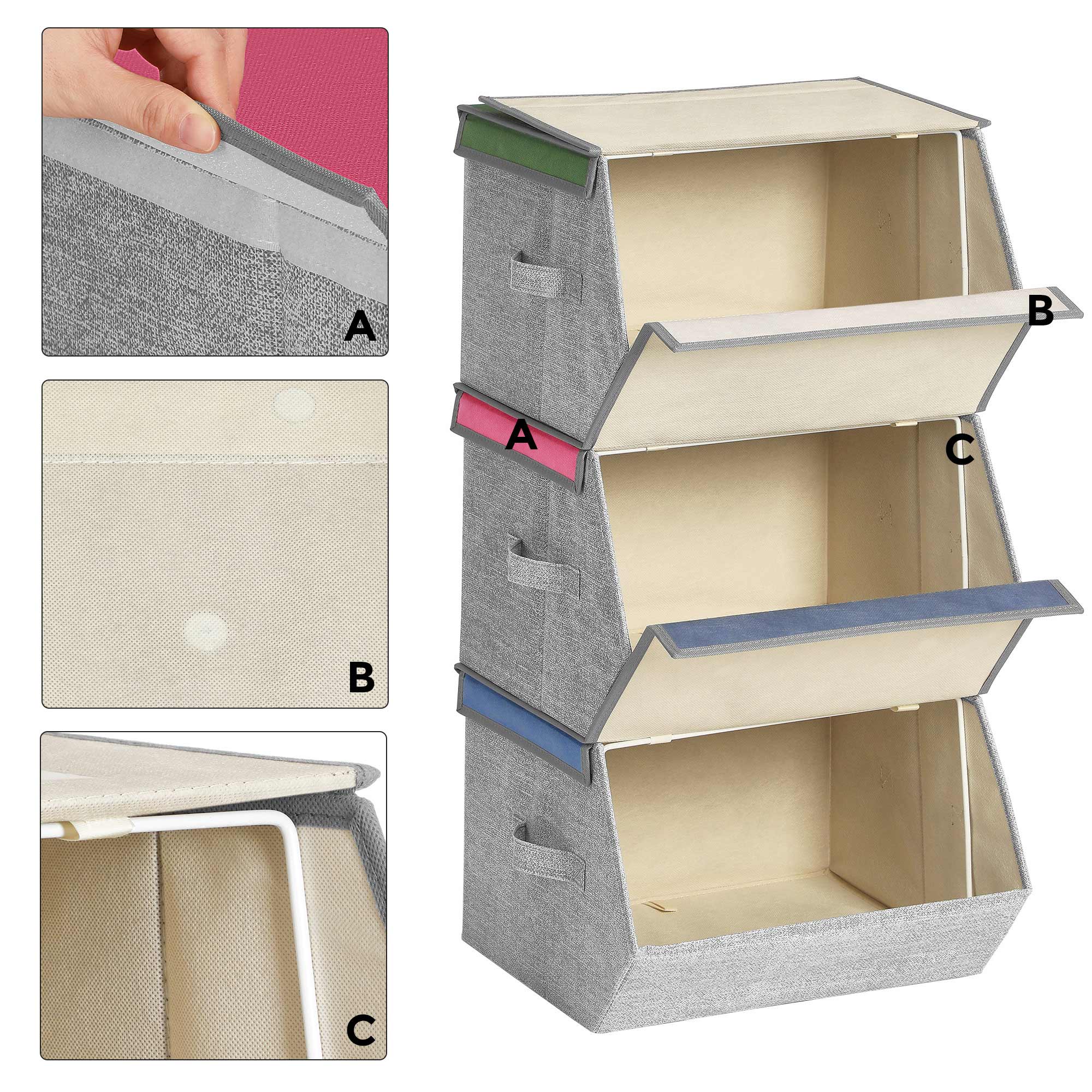 Velkommen i zoologisk have! Den venlige l?ve, det s?de killing og den nuttede kanin inviterer dine sm? p? en rejse ind i deres fantastiske verden. Hvad venter du p?? Dine b?rn vil opleve vidunderlige eventyr sammen med dyrene! Og samtidig bliver de opmuntret til at rydde deres leget?j op selv. Giv mere, tag mindre Disse 3 kasser fylder kun 38 x 35 cm, n?r de stables, men giver dine sm? masser af plads til at lege. Metalrammen og den h?je kvalitet af pap sikrer en lang levetid. Vil du tr?ne dit barns h?ndv?rksm?ssige f?rdigheder? Opfordr det til selv at folde kasserne sammen, n?r de ikke er i brug. Produktdetaljer: – Farve: Rosa, bl?, gr?n og gr? – Materiale: Pap, fleece, metalramme – St?rrelse pr. kasse: 38 x 35 x 25 cm (L x B x H) – V?gt pr. kasse: 0,3 kg – Maks. statisk belastning pr. kasse: 2 kg – Maks. statisk belastning ovenp? pr. kasse: 5 kg Leveringsomfang:- 3 x opbevaringsboks SONGMICS Bem?rkninger: – Vask ikke produktet direkte med vand. – Overskrid ikke produktets maksimale belastningsevne.